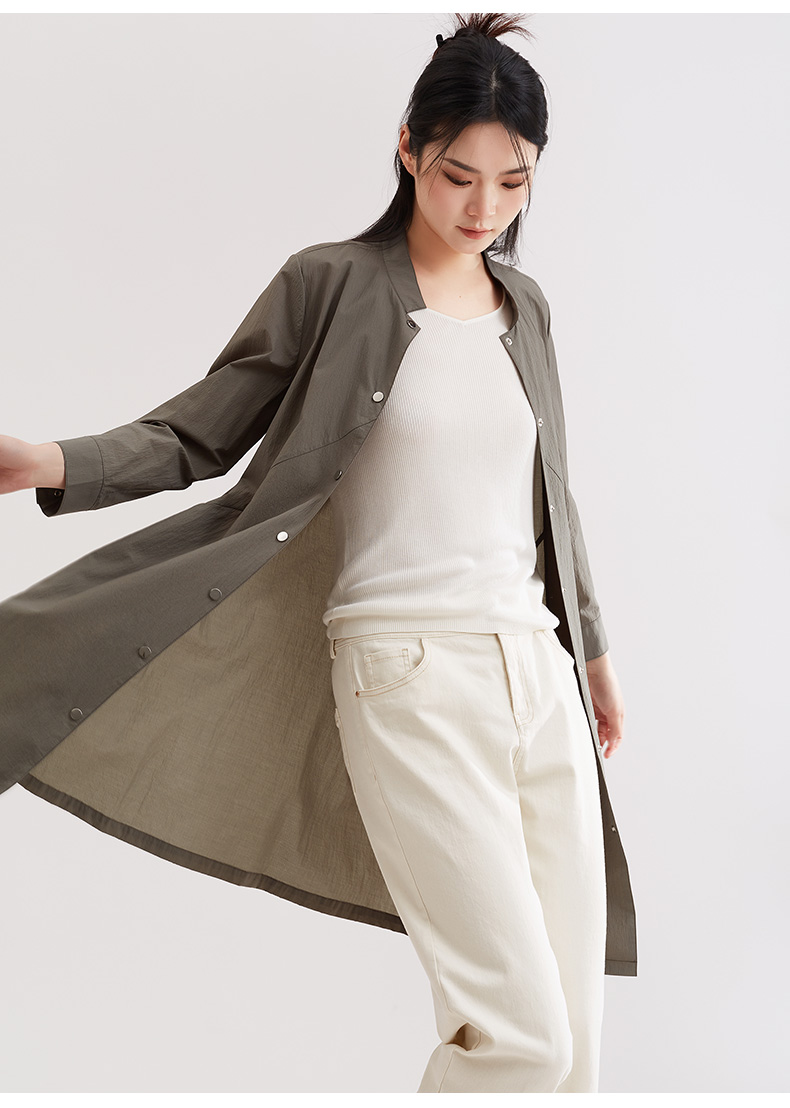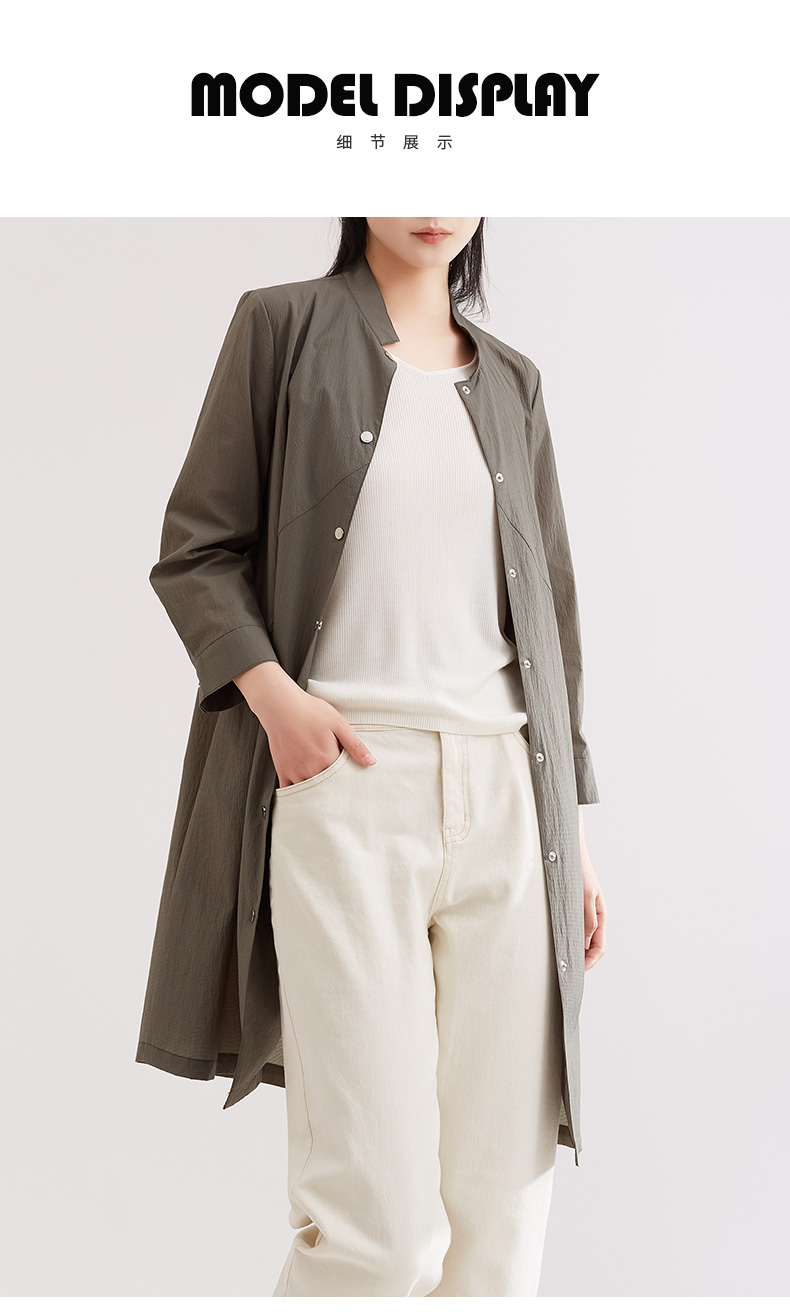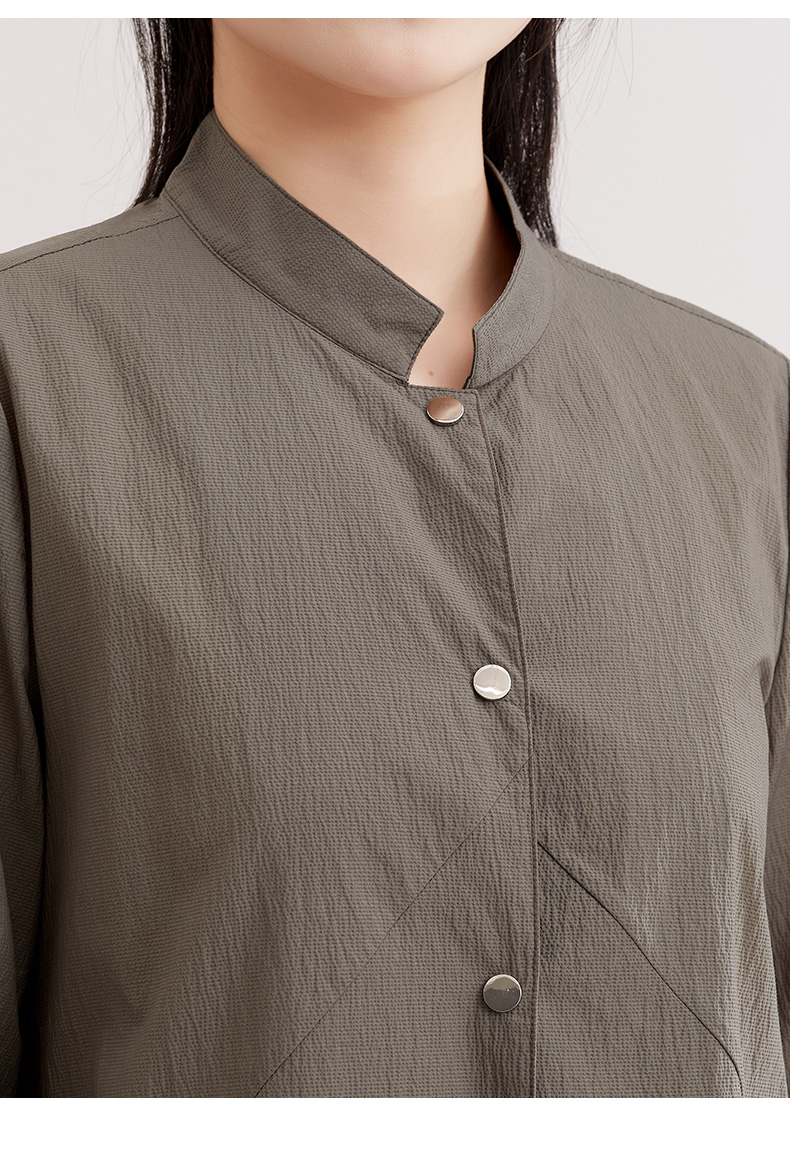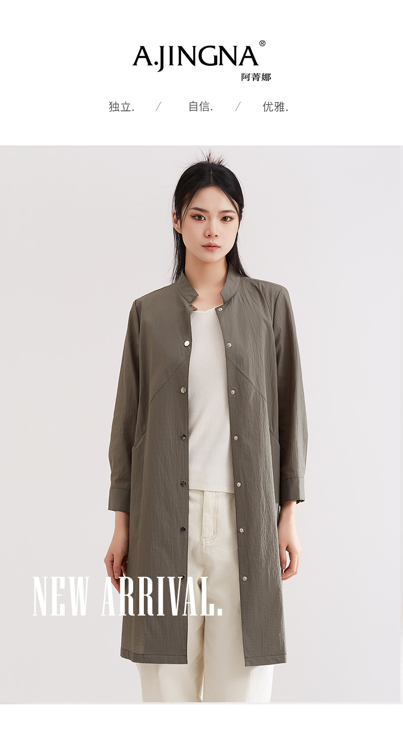 【积分兑换】阿菁娜经典藏蓝色双排染色贝壳扣H型薄款醋酸真丝外套A27X107032