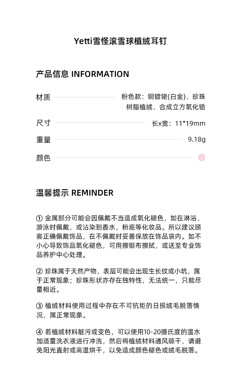 [捡漏价]lost in echo2023秋冬新品Yetti滚雪球珍珠植绒⽿钉气质精致耳饰