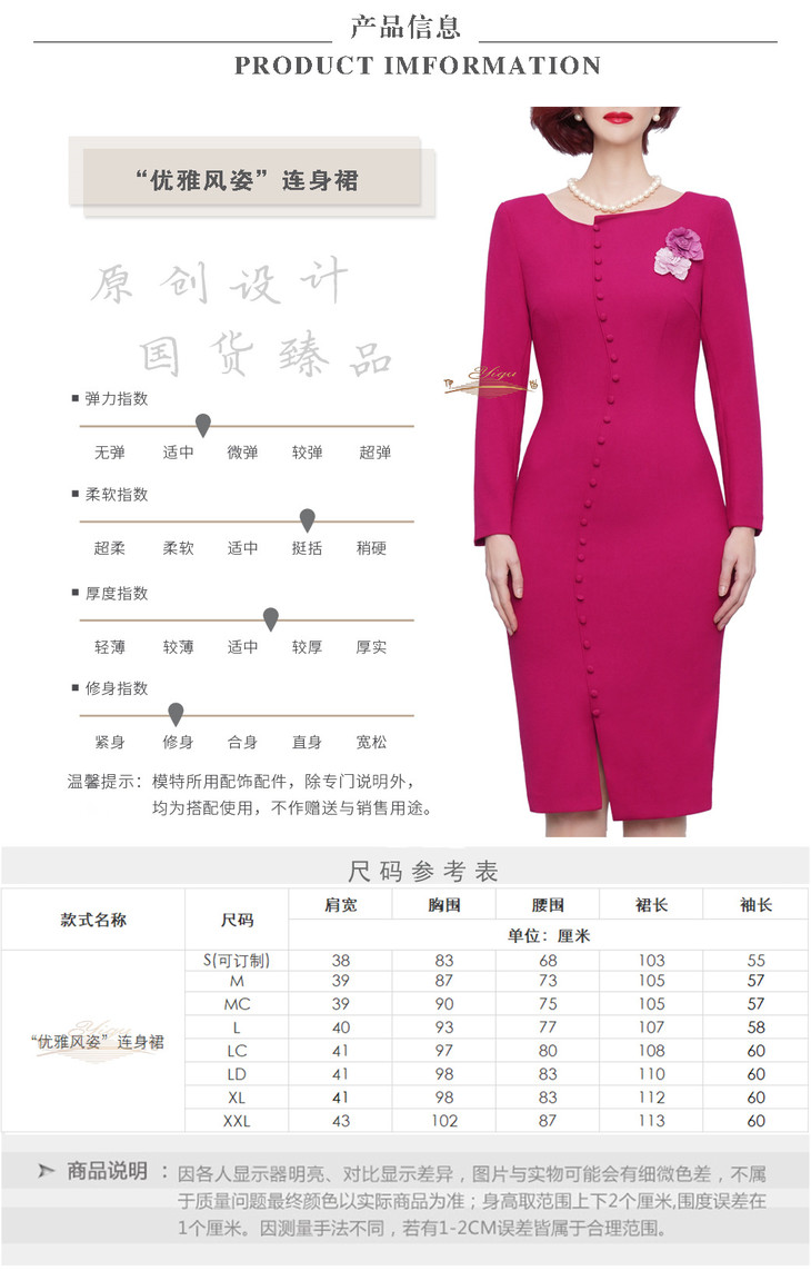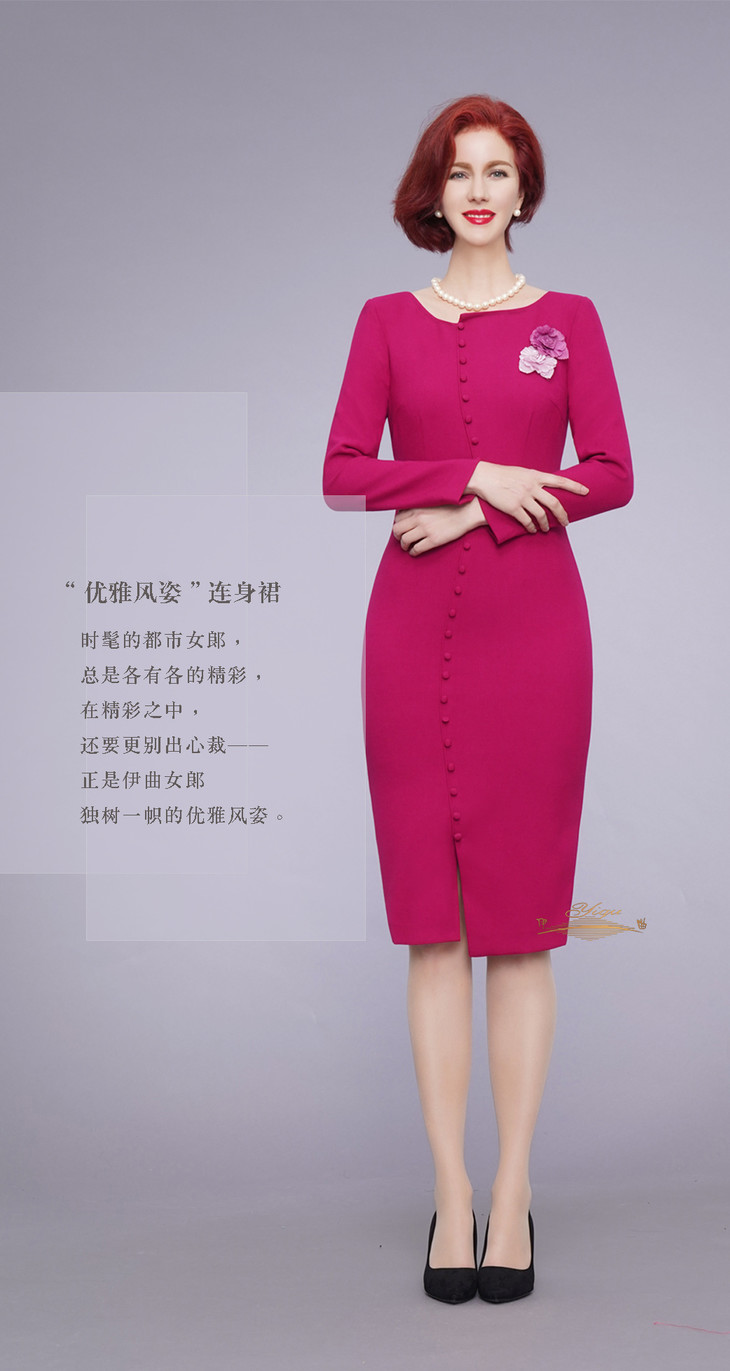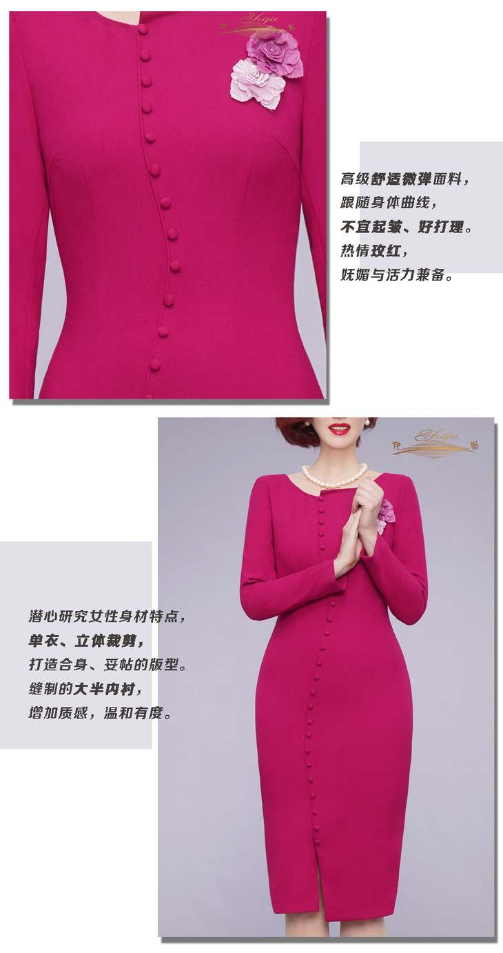 【特惠】YIQU|“优雅风姿”连身裙(玫红)PT