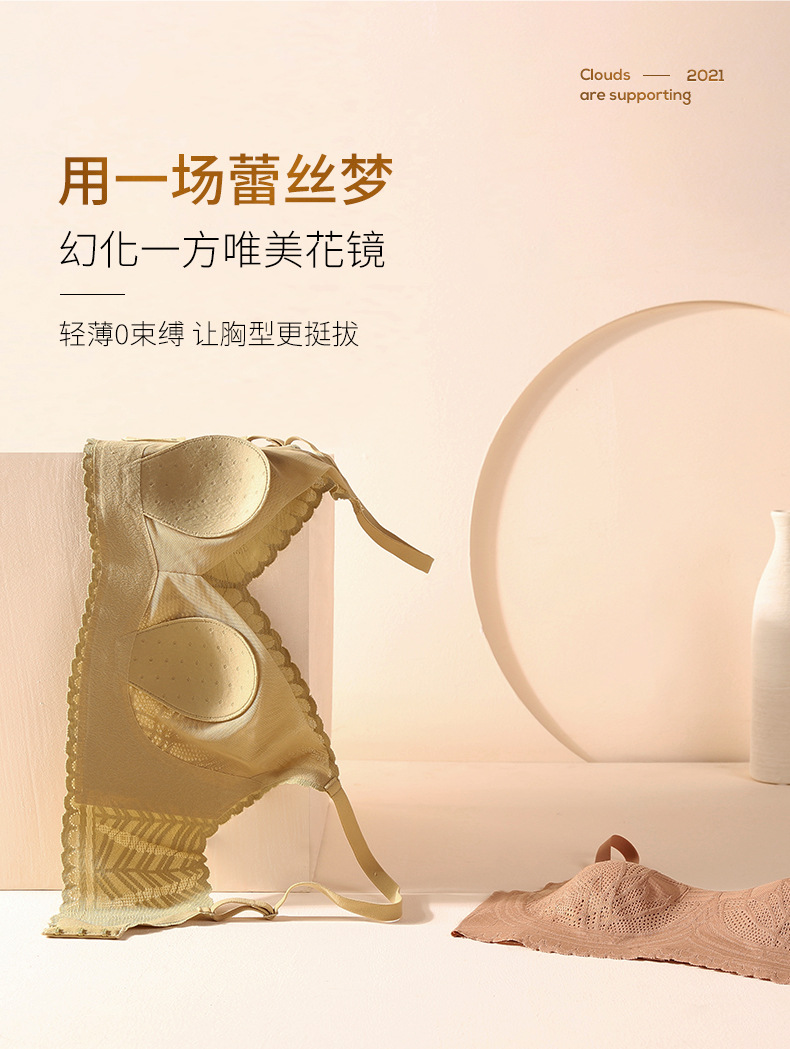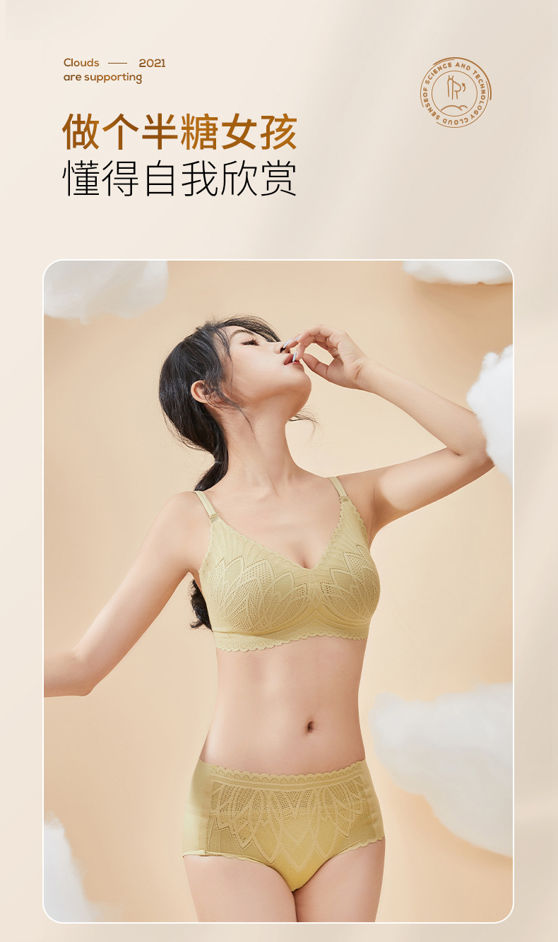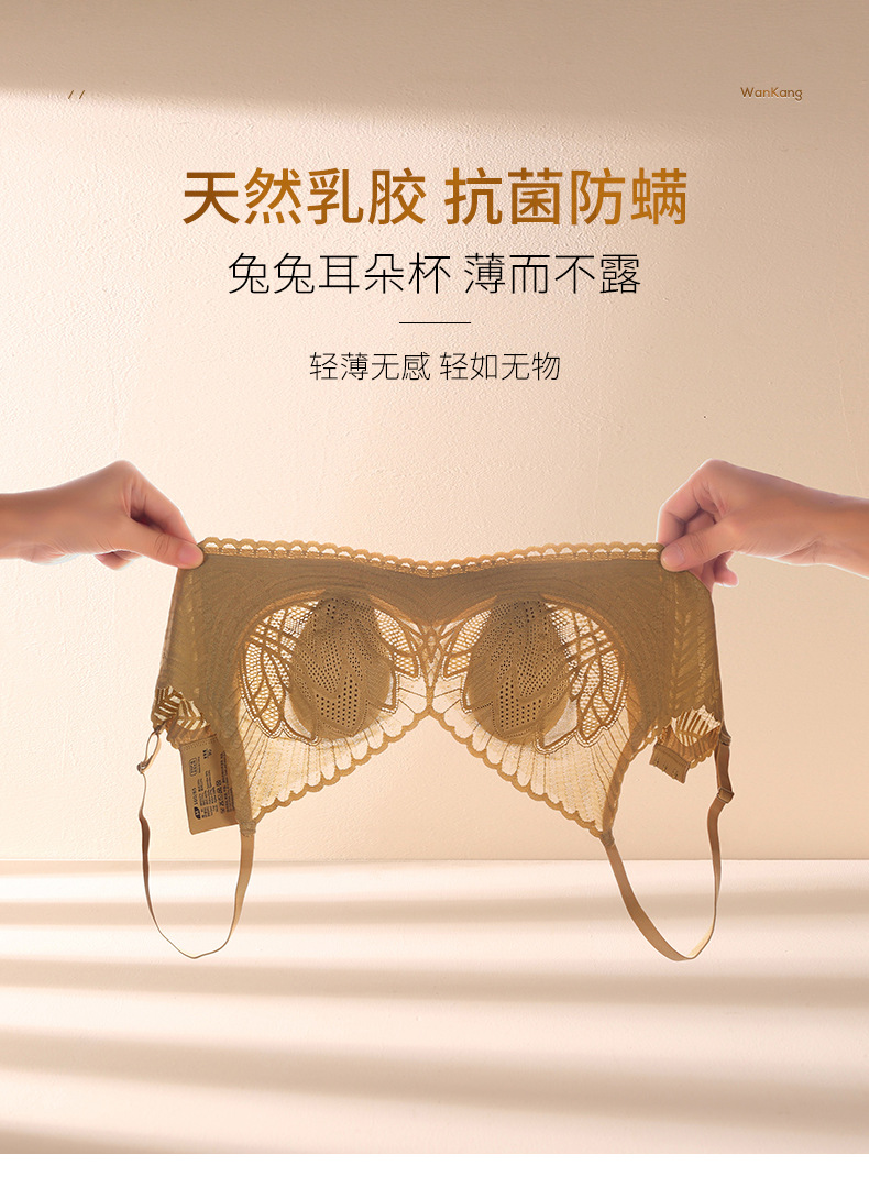 春夏轻奢性感透气蕾丝兔耳杯内衣 乳胶防螨抑菌杯无痕透气内衣