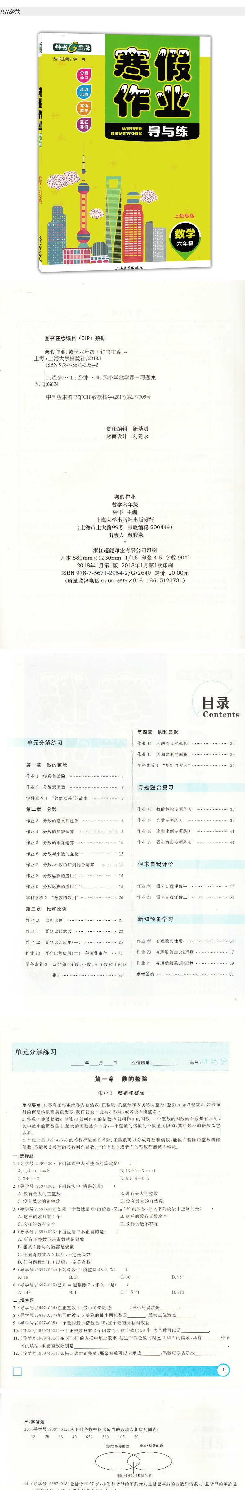 钟书金牌 寒假作业 导与练 数学 六年级/6年级上下册 上海专版 上海大学出版社 上海初中生寒假作业 六年级数学