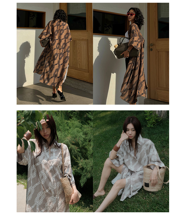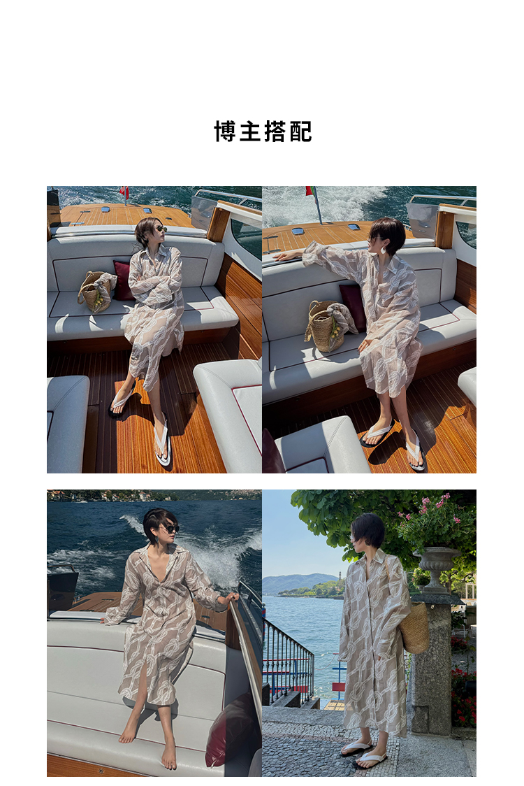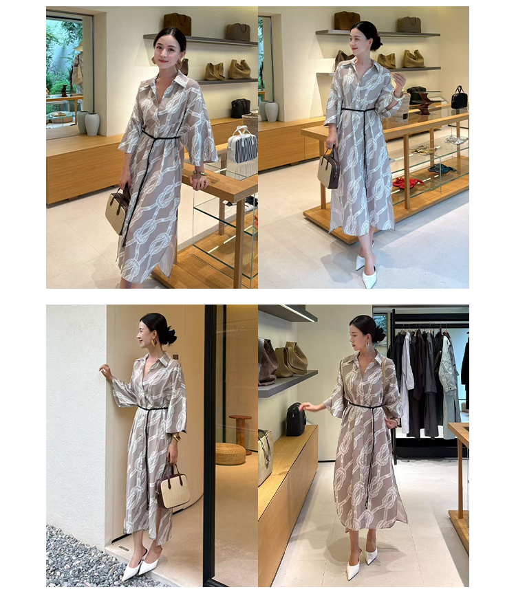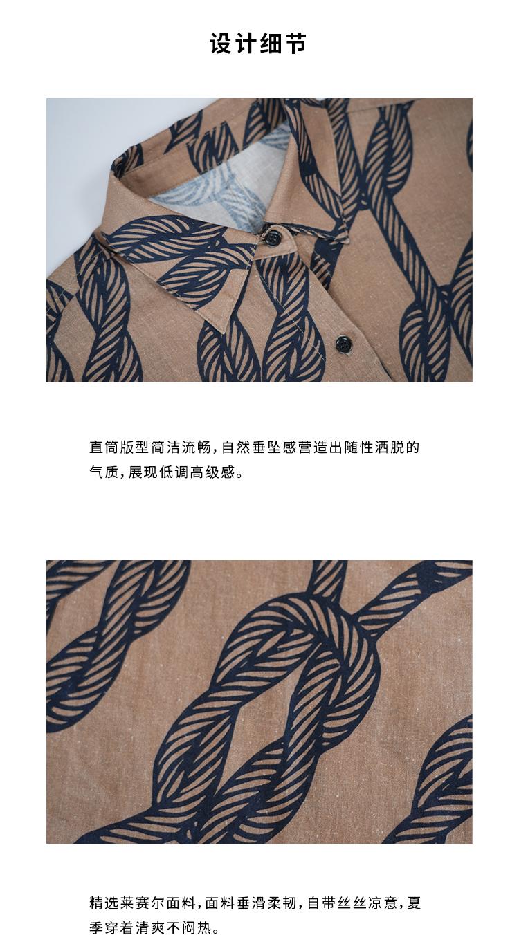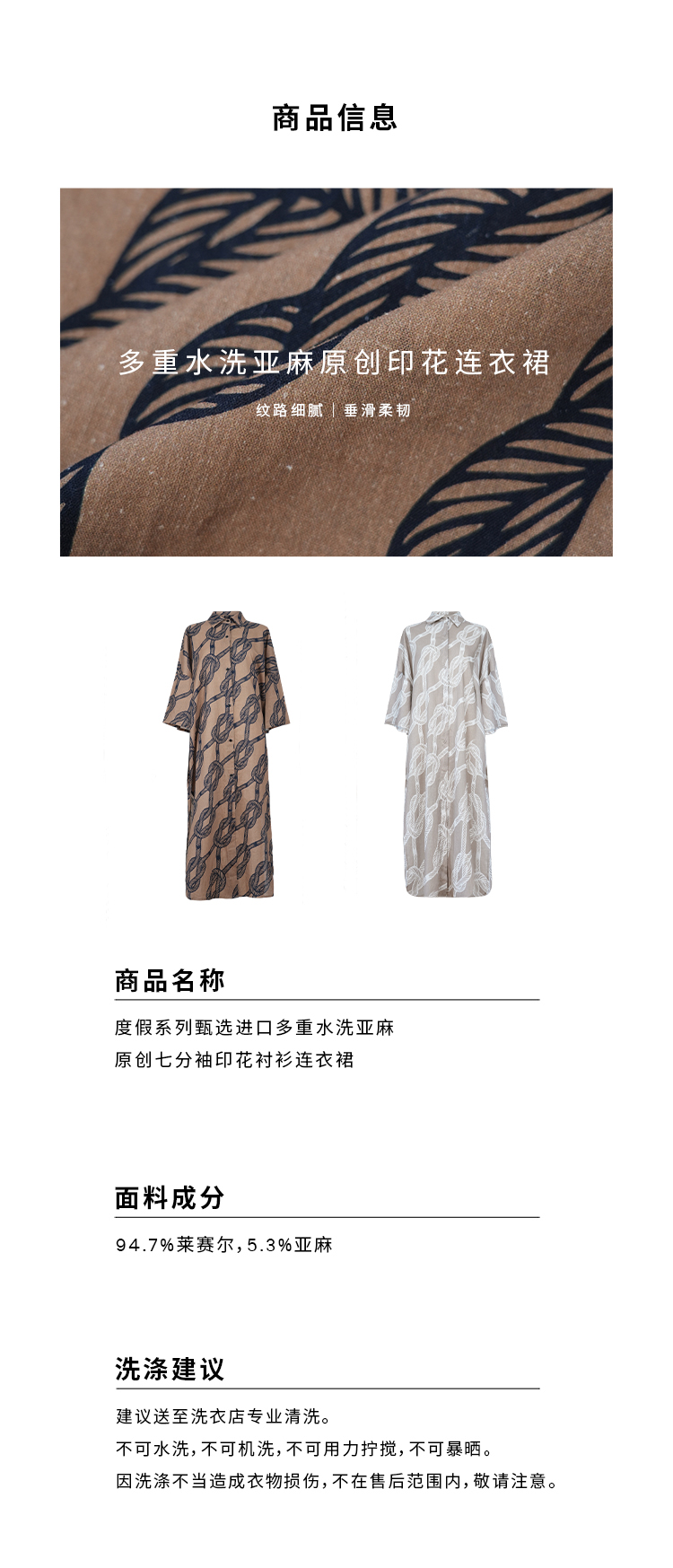 HIDEMI度假系列甄选进口多重水洗亚麻小众原创印花七分袖衬衫连衣裙