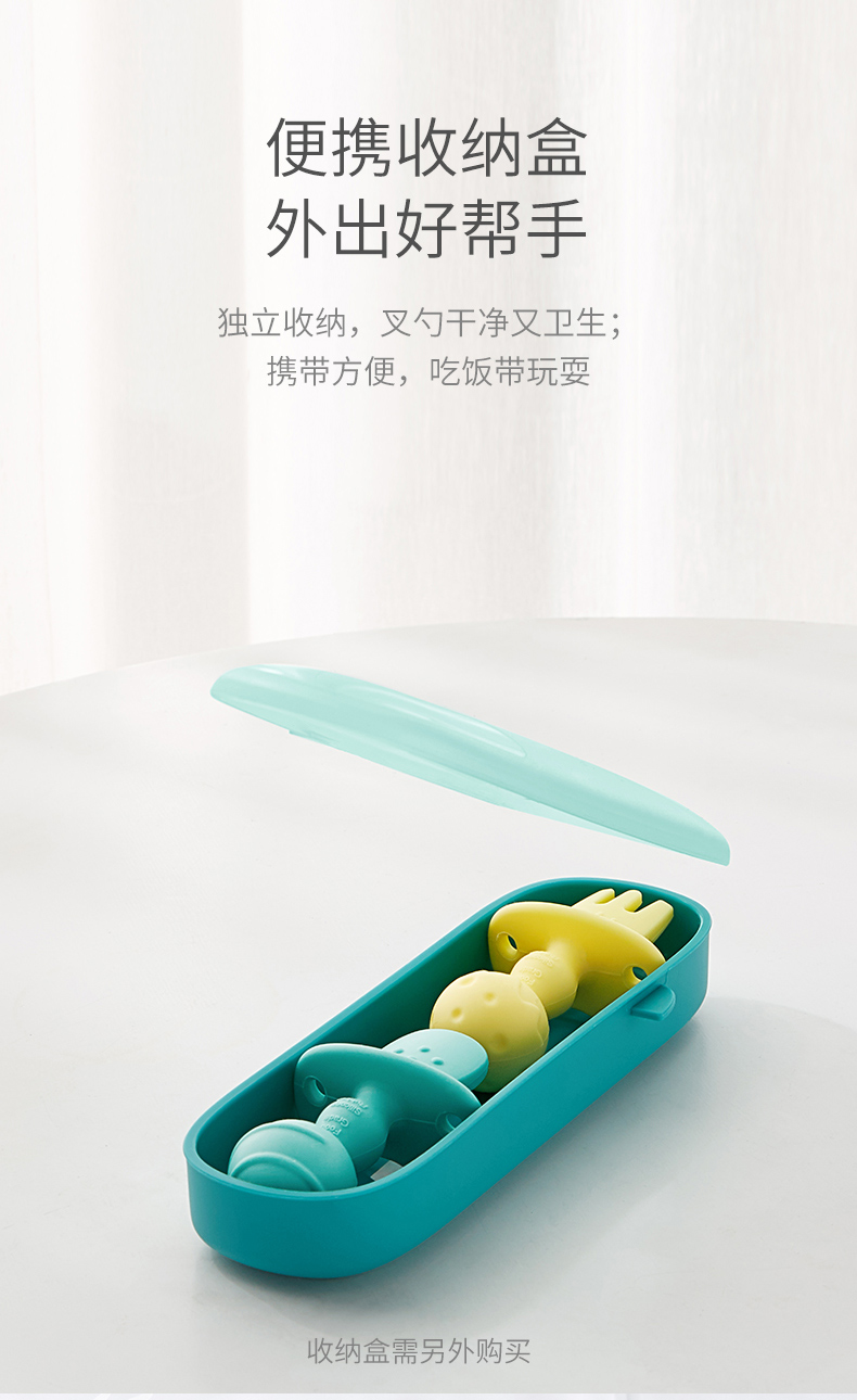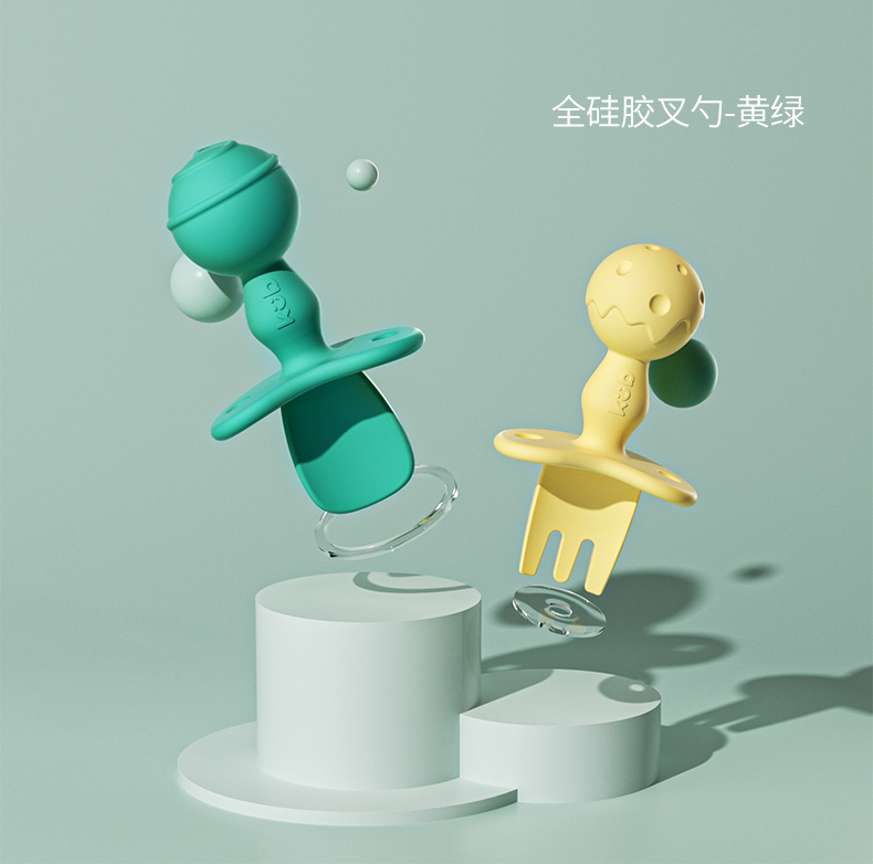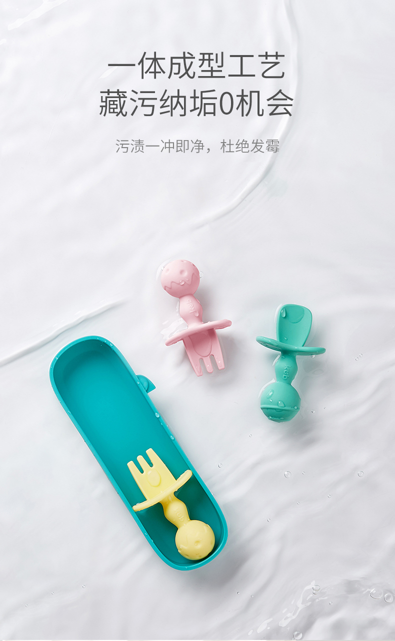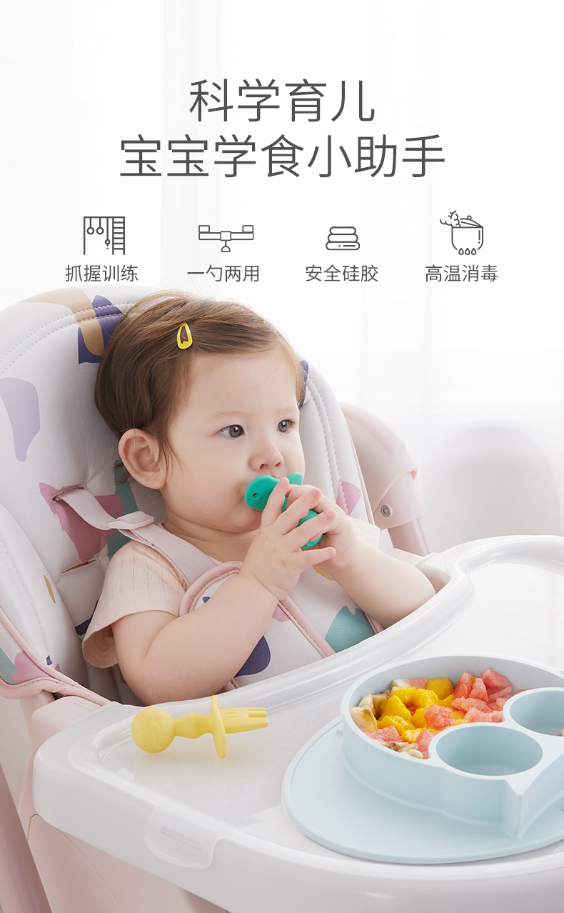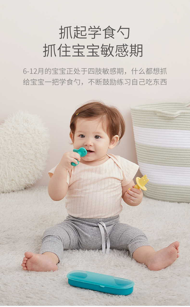 可优比硅胶短柄勺子小宝宝学食训练叉勺套装婴儿童吃饭软叉勺餐具
