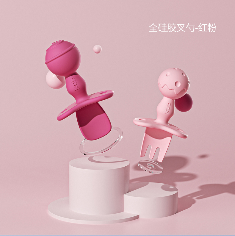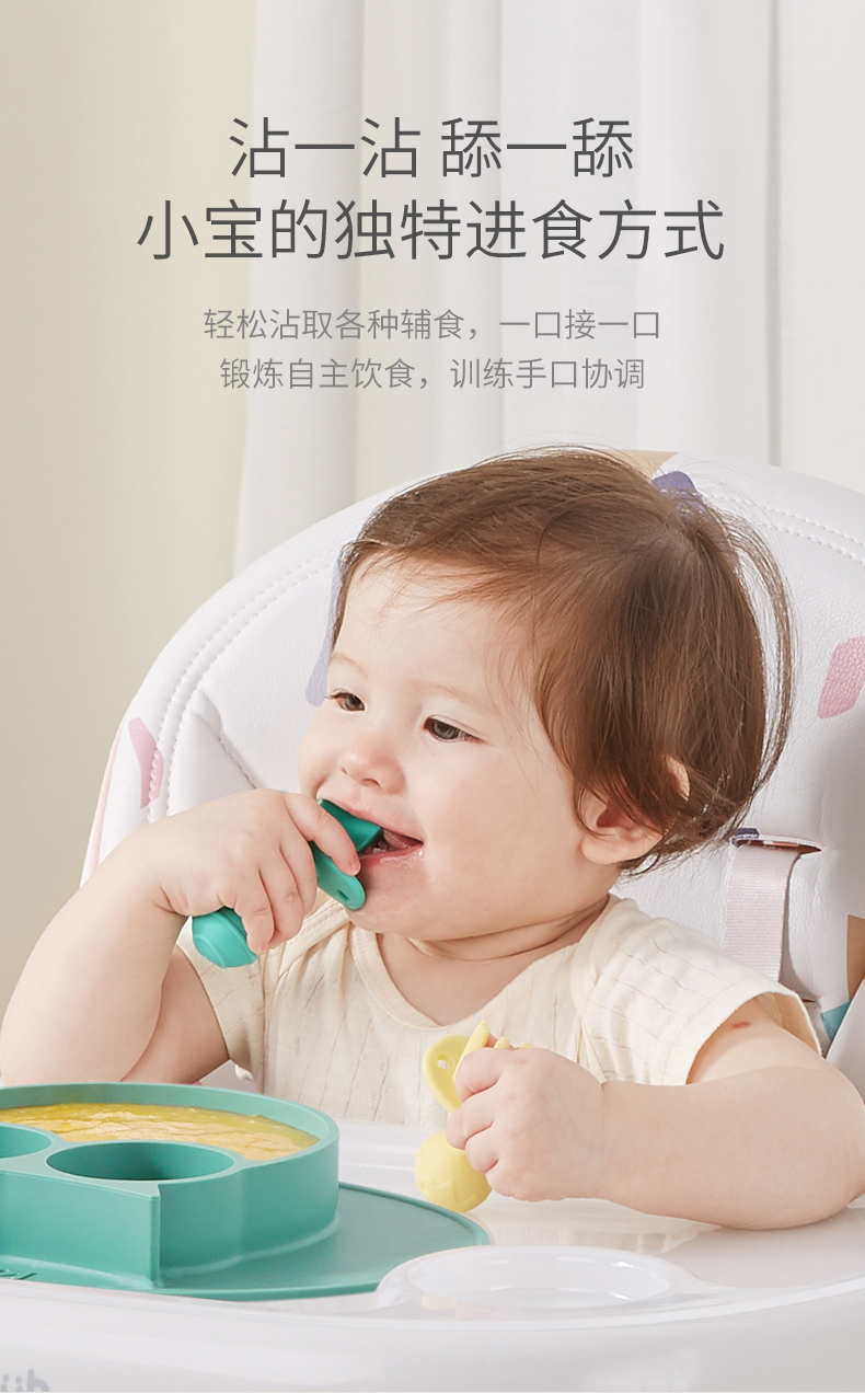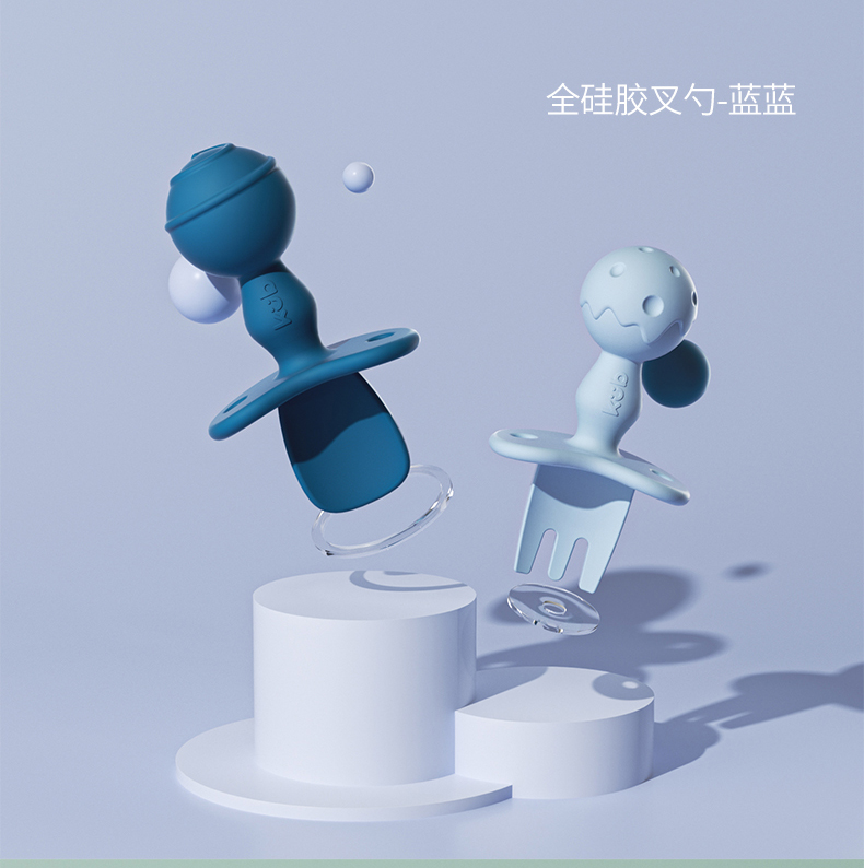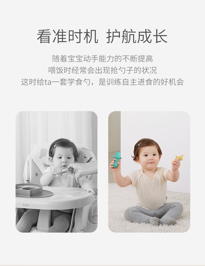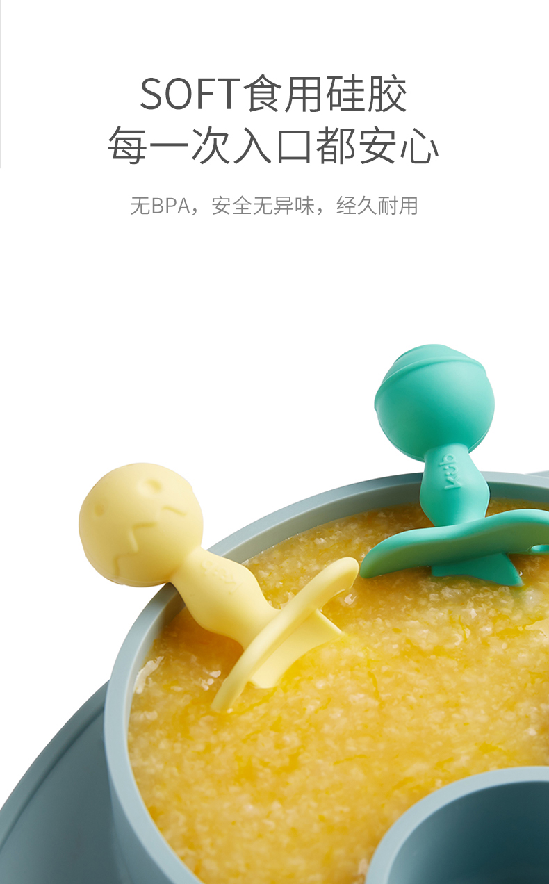 可优比硅胶短柄勺子小宝宝学食训练叉勺套装婴儿童吃饭软叉勺餐具