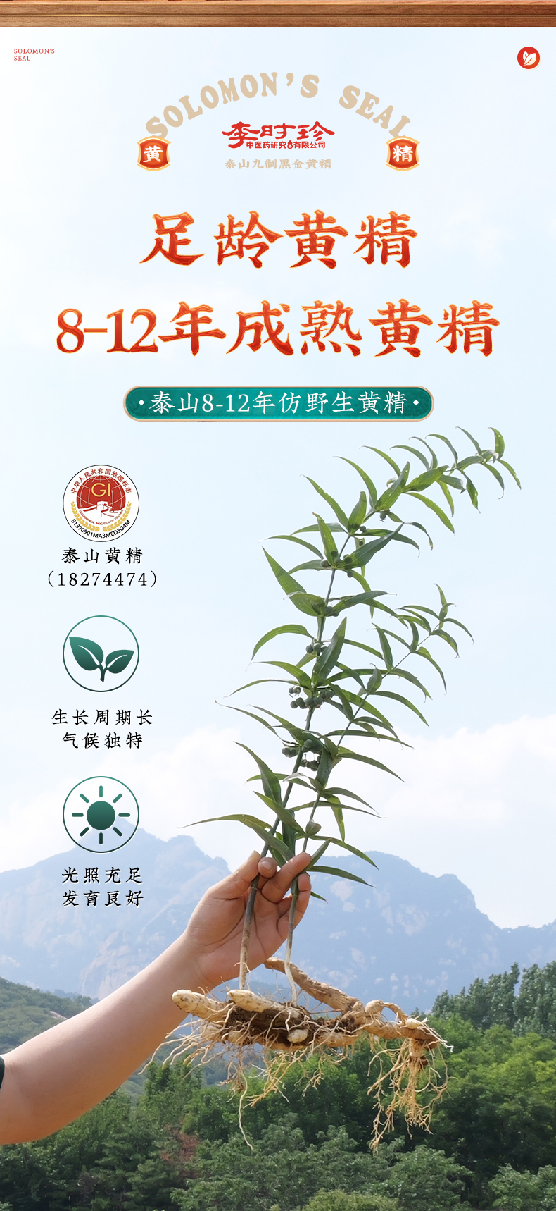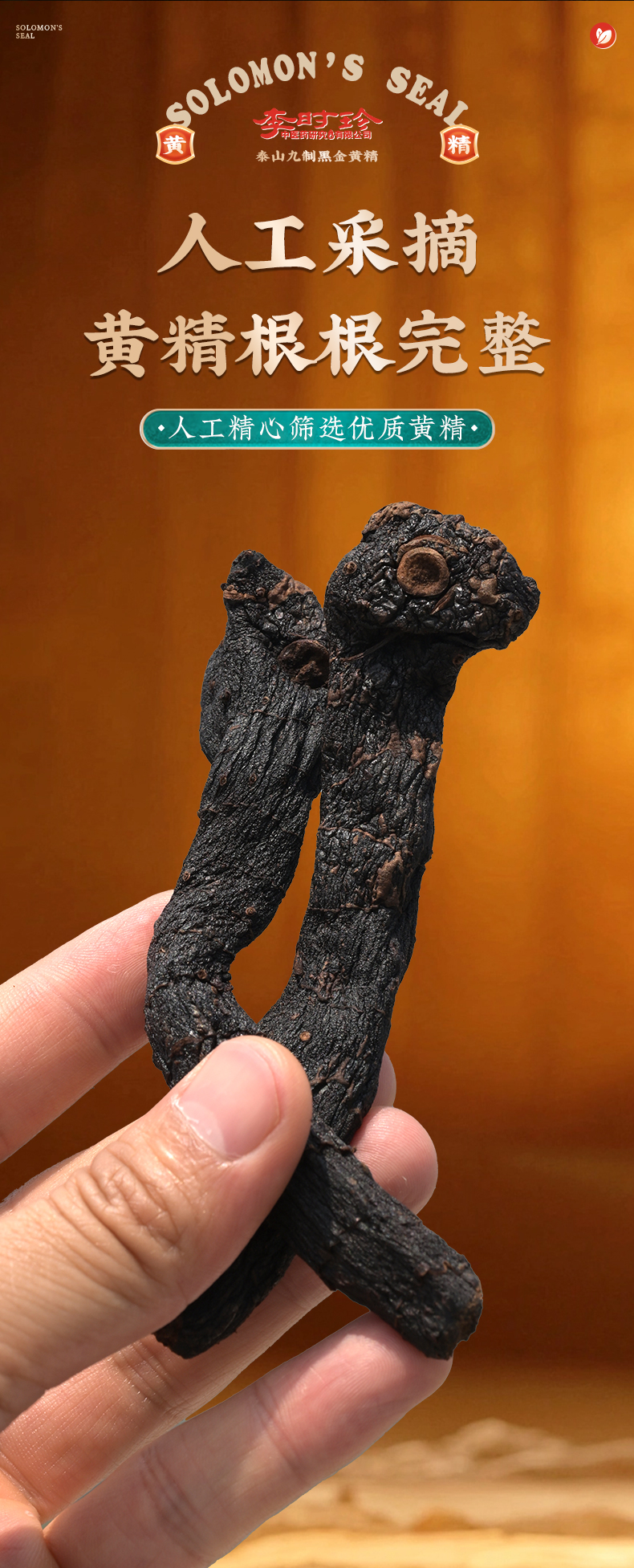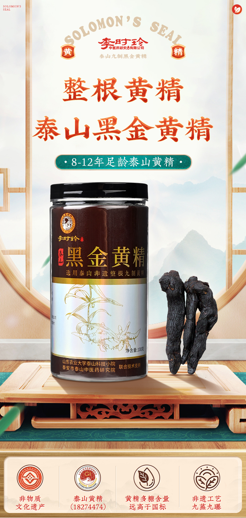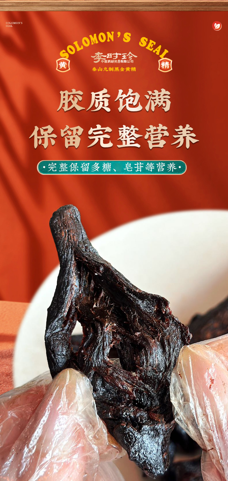 【买2送1,买3送2】李时珍·泰山黑金黄精 8-12年的足龄黄精 九蒸九晒非遗工艺制作 富含黄精多糖、皂苷类成分、生物碱、黄酮 密封包装 锁鲜保效 开袋即食 100g(16根)/罐