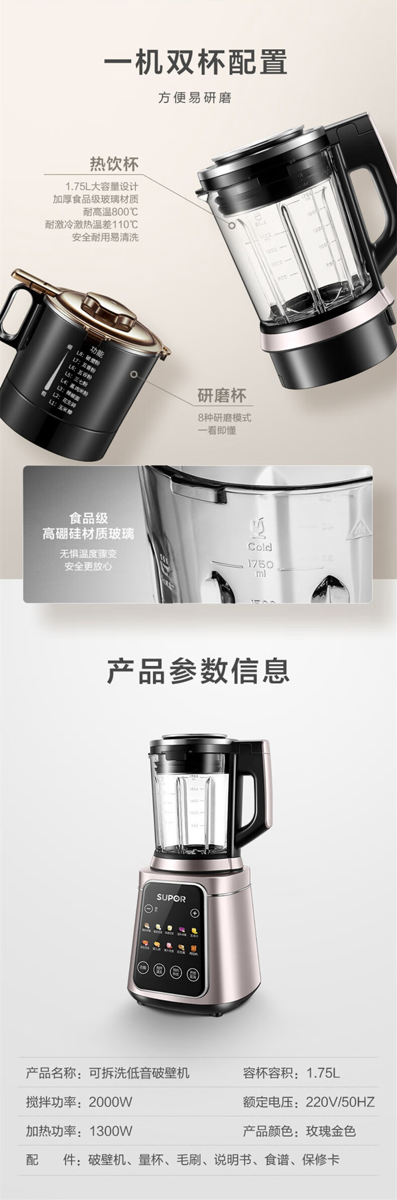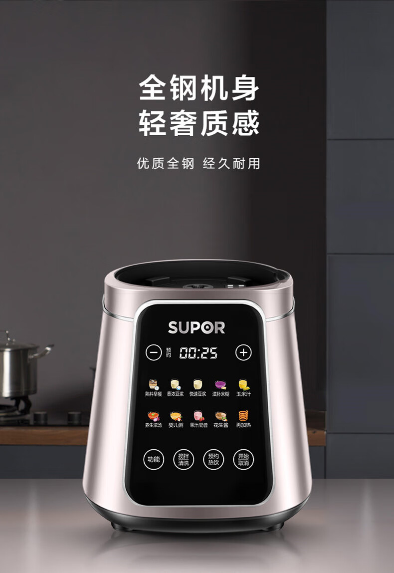 苏泊尔(SUPOR)拆洗破壁机 料理机磨粉榨汁豆浆机绞肉果汁辅食机 快拆好洗轻音全钢机身智能预约一机双杯SP39S