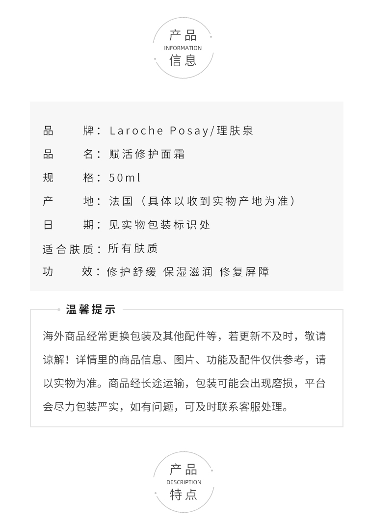 理肤泉赋活修护面霜 光电面霜50ml 赋活修护提拉紧致面霜饱满肌肤【CDF】
