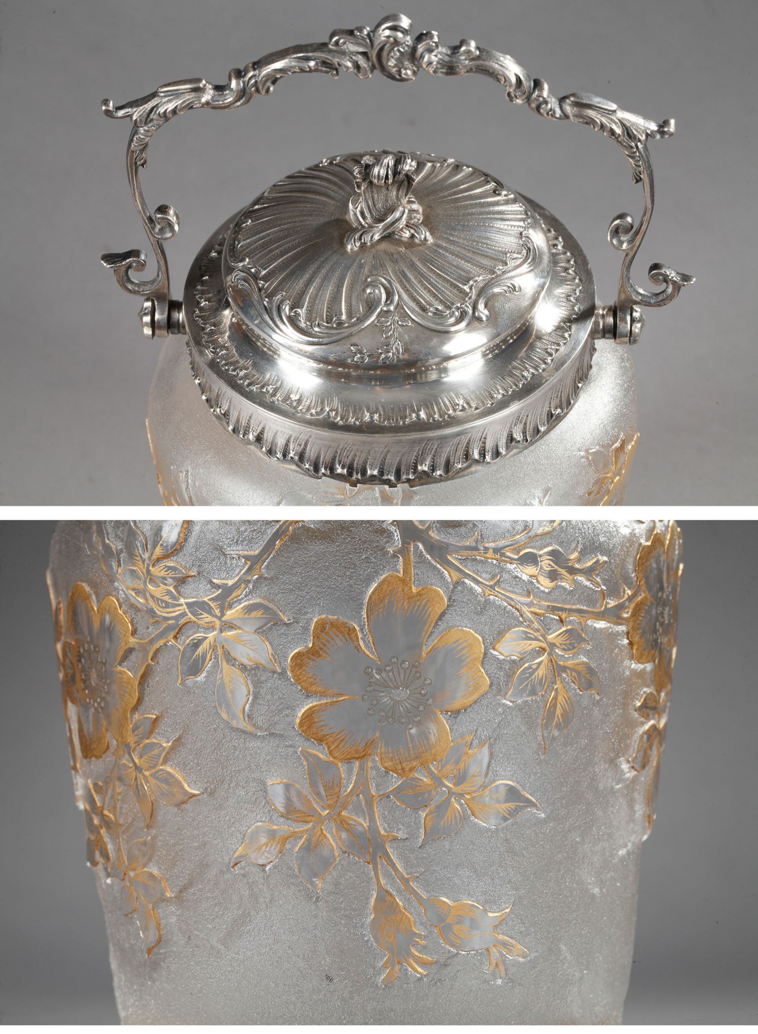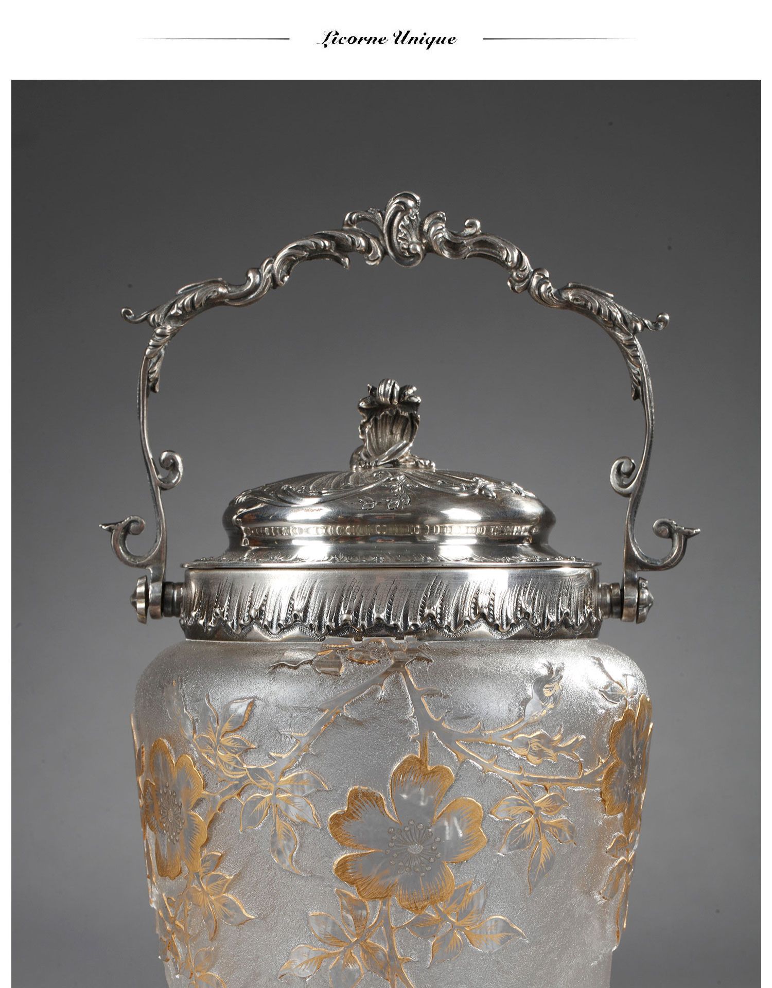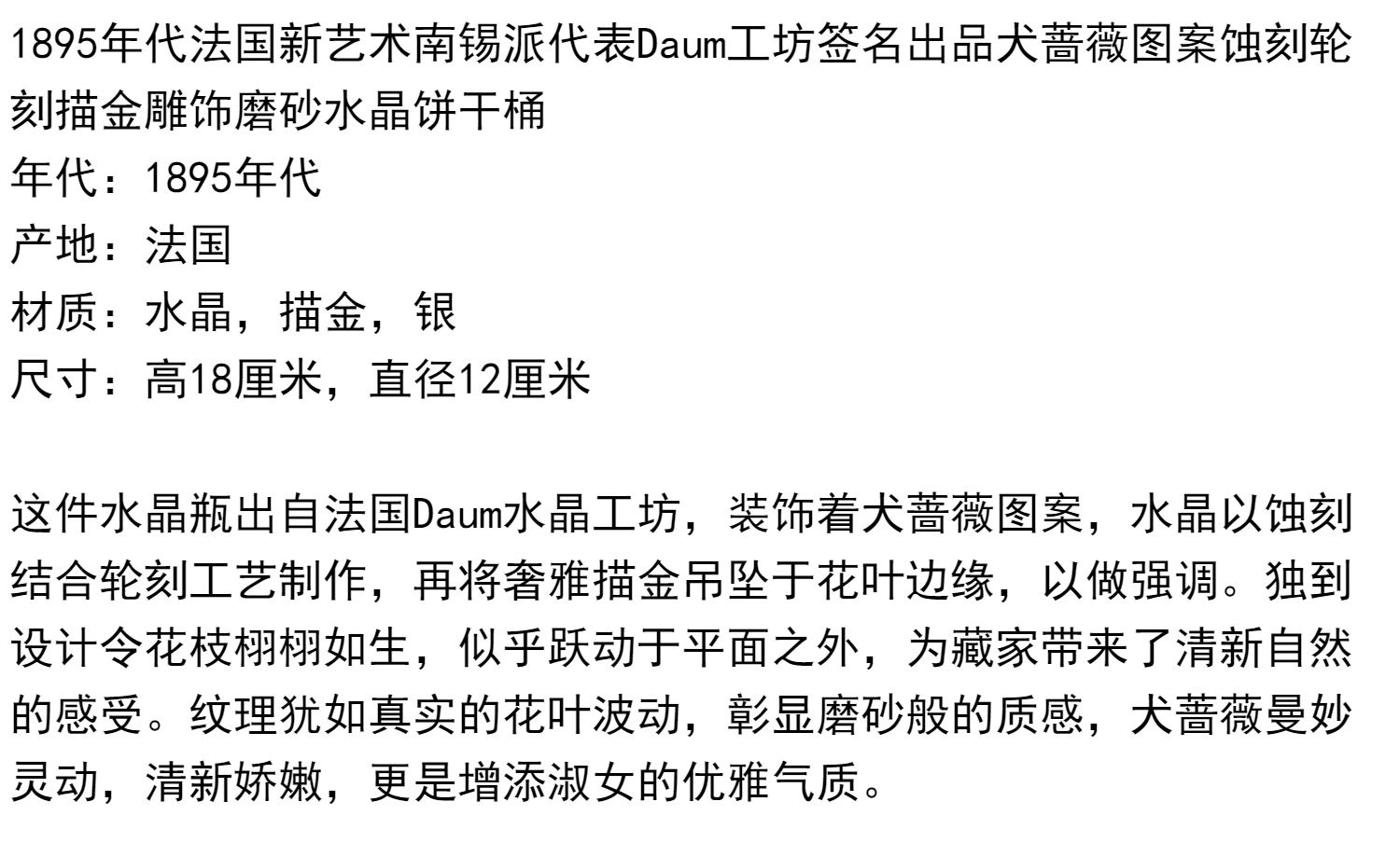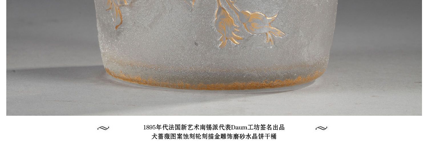 独角鹿西洋古董南锡派签名犬蔷薇蚀刻轮刻描金雕饰磨砂水晶饼干桶