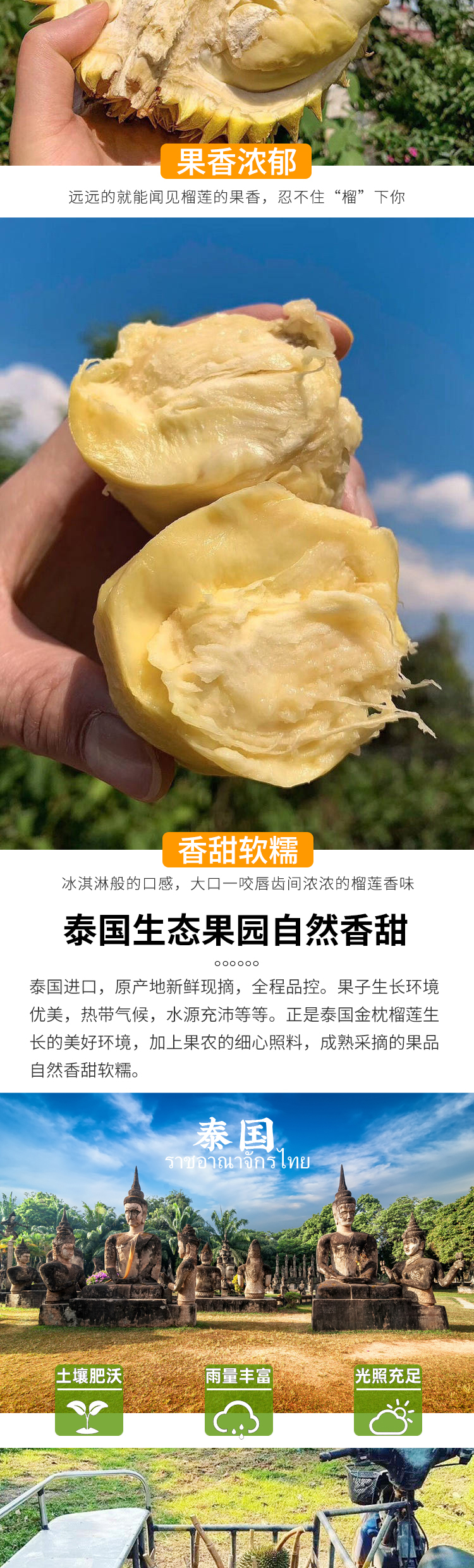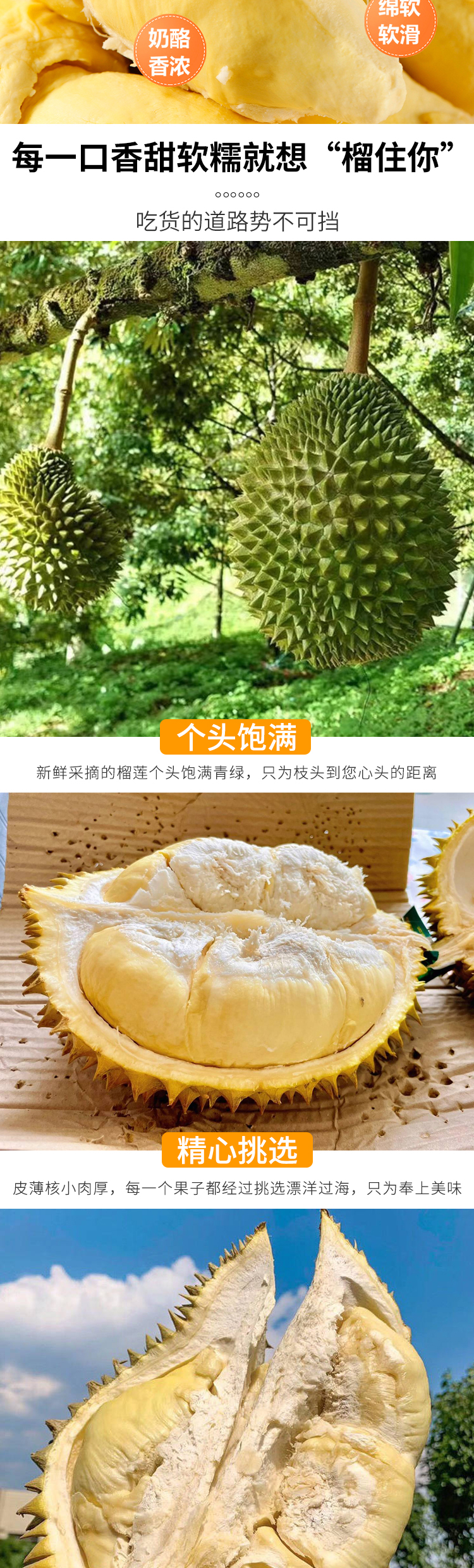 泰国金枕榴莲 冰淇淋口感 个头饱满 香甜软糯 果肉肥厚 肉质金黄 丝滑口感 一口就上瘾