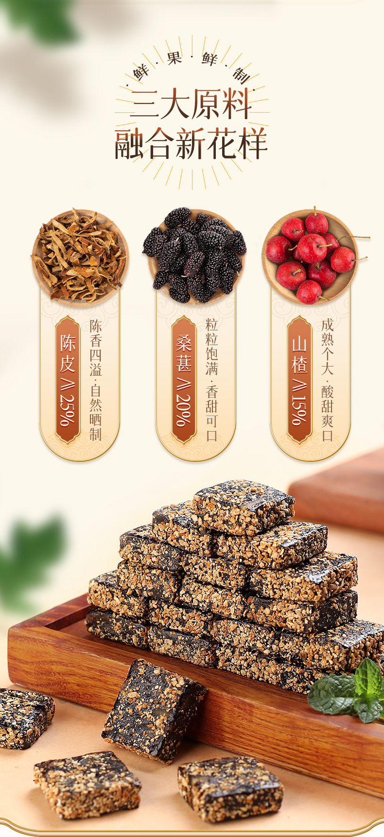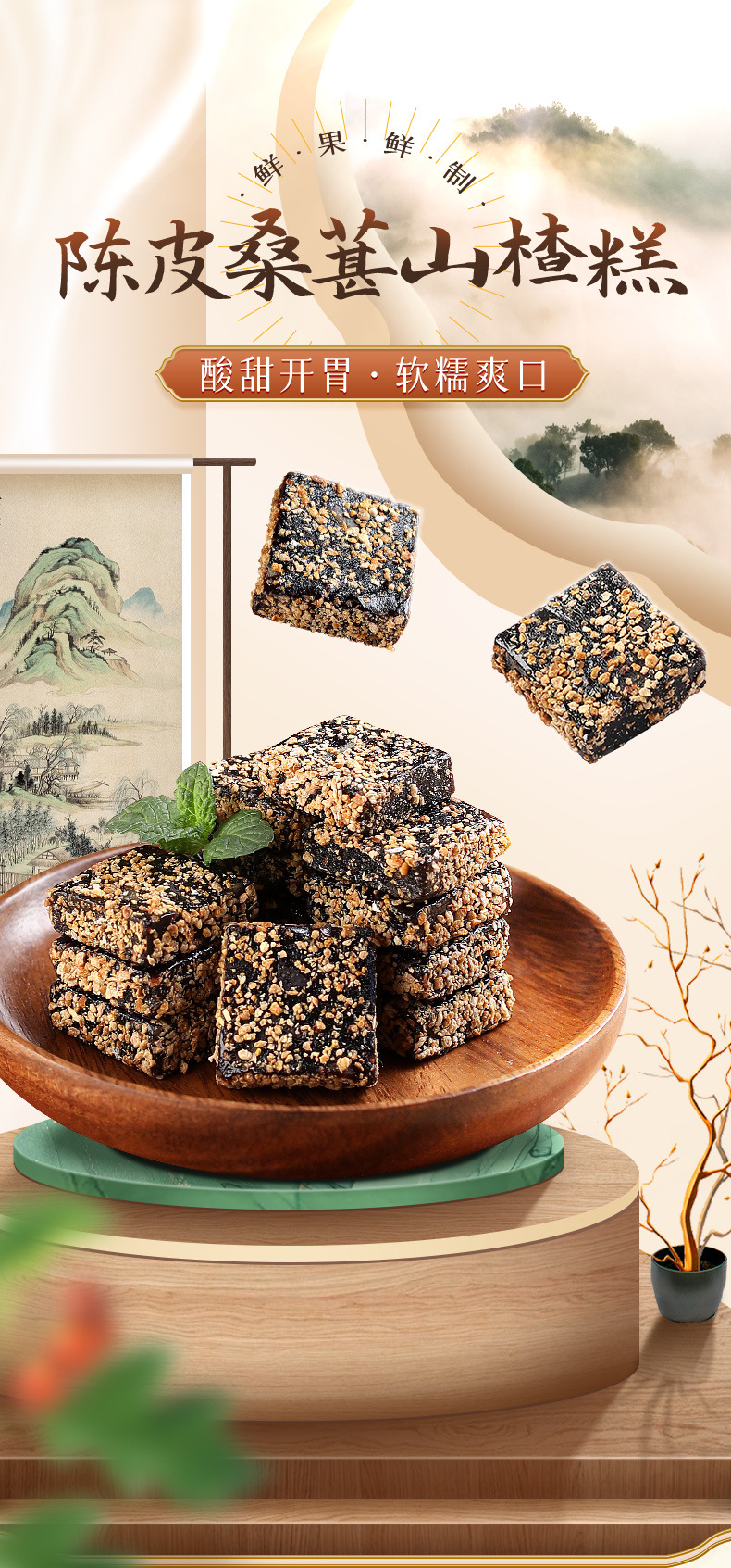 【第二袋半价!陈皮桑葚山楂糕】软糯爽口,陈香四溢粒粒饱满,香甜软糯,老式点心果脯食品网红代餐小零食-觅食坊健康