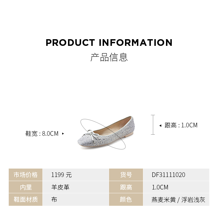 D:FUSE/迪芙斯秋季新品平底单鞋小方头芭蕾舞鞋DF31111020