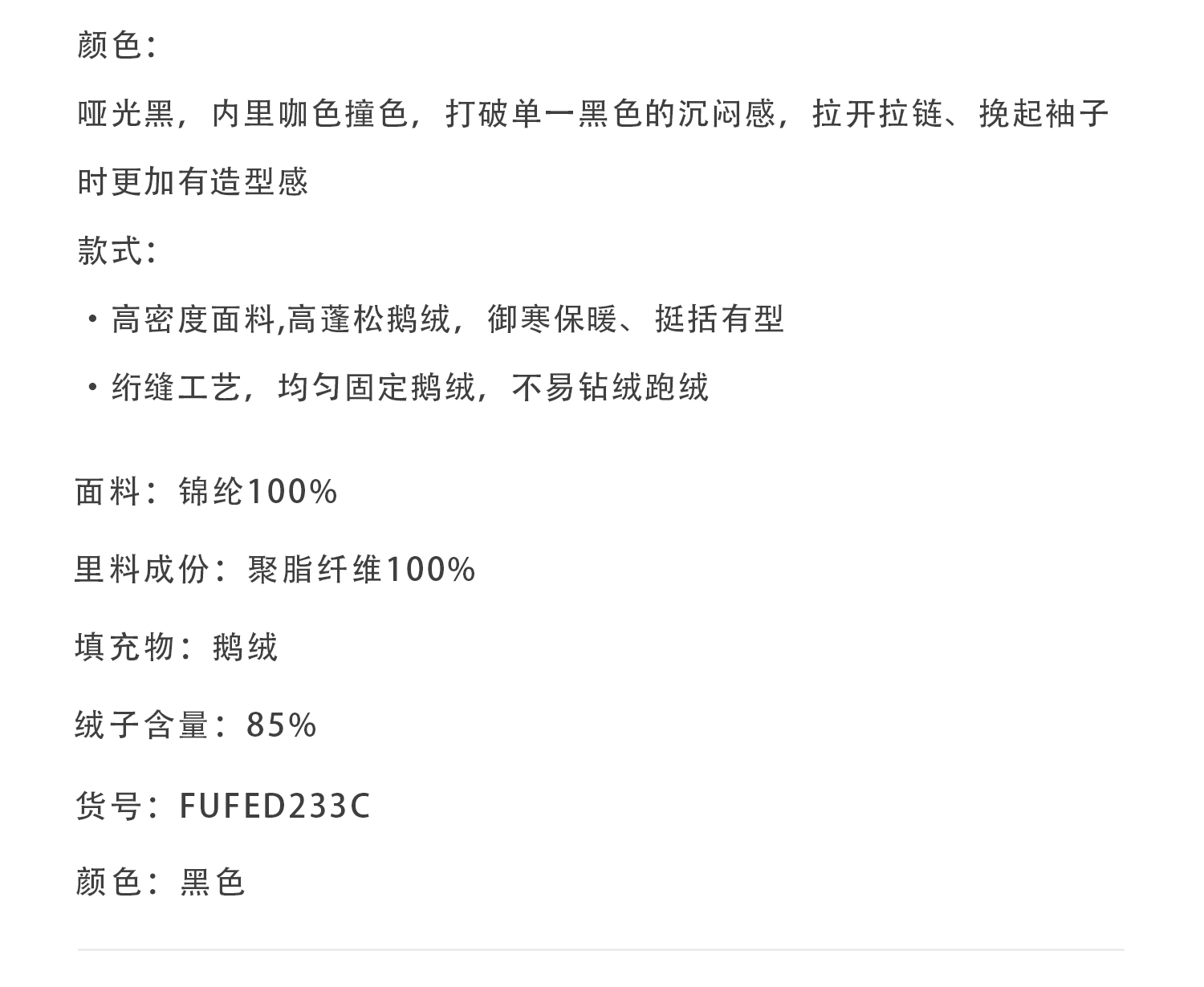callisto哑光黑高蓬松鹅绒羽绒服
