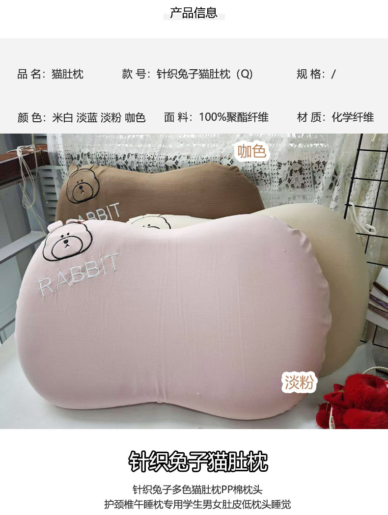 针织兔子猫肚护颈椎午睡枕专用学生男女肚皮低枕头睡觉枕猫肚枕-纪念日百货门店同款168194793