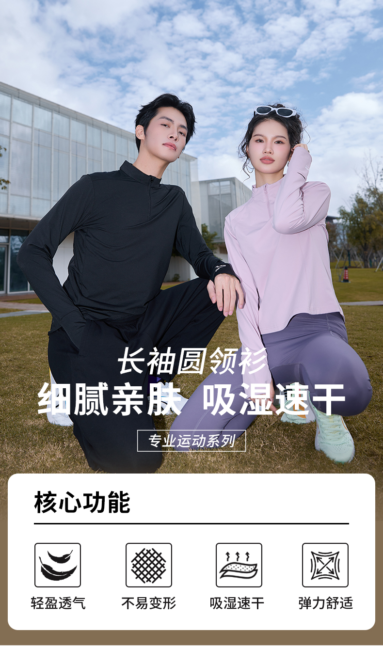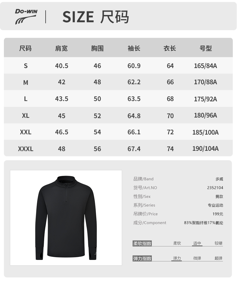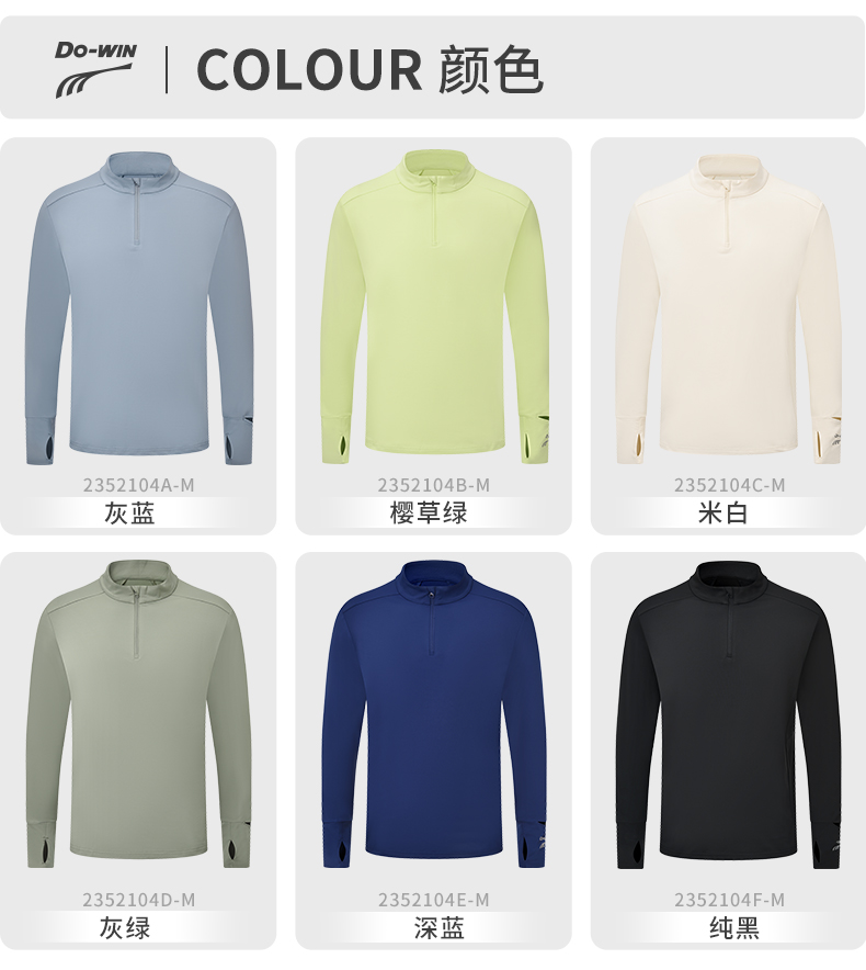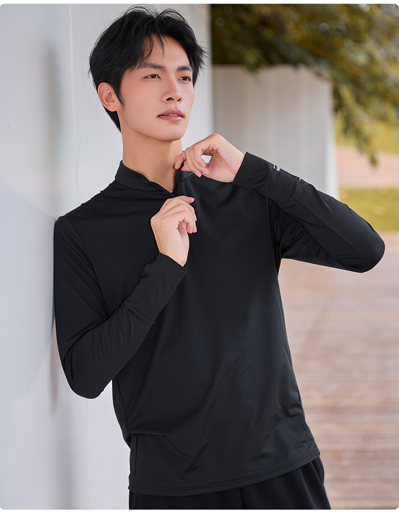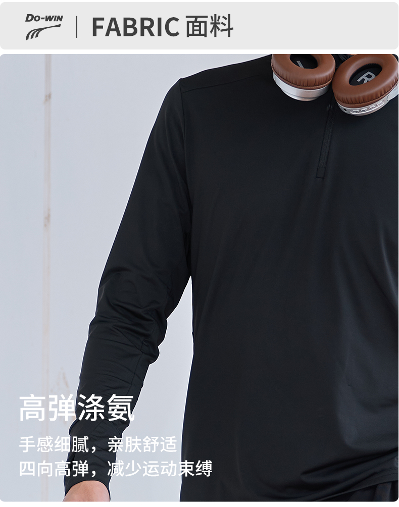 多威圆领衫男新款半开领上衣专业速干弹力运动装2352104