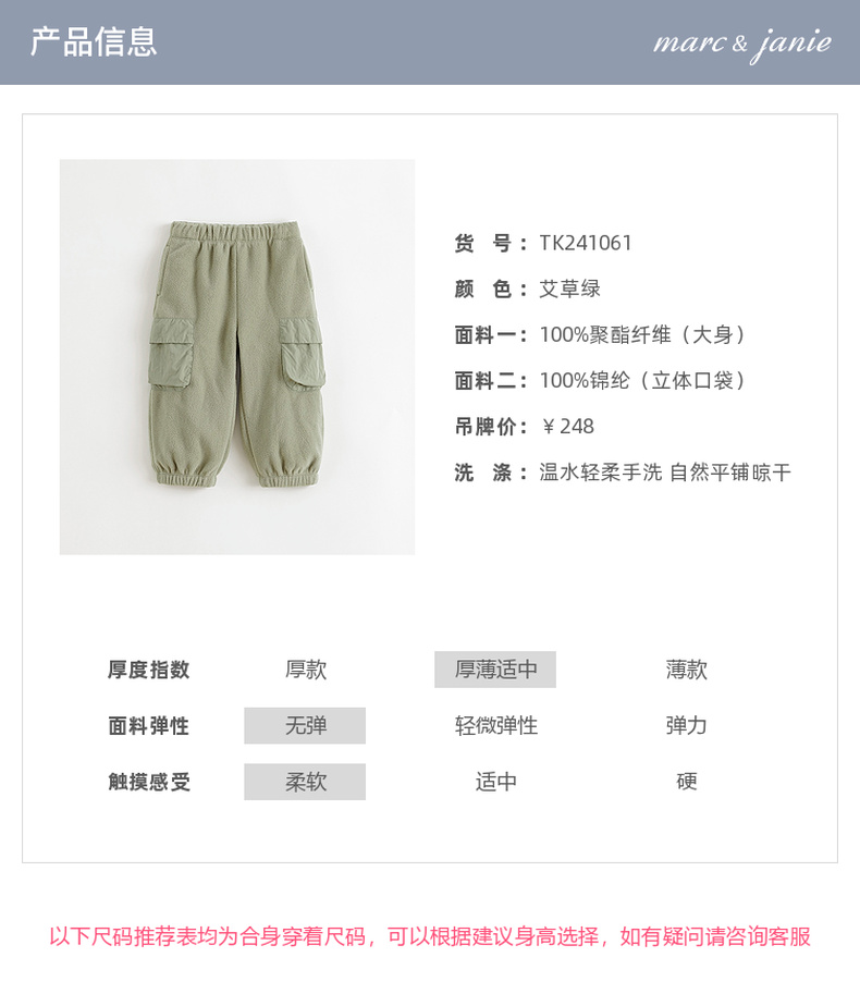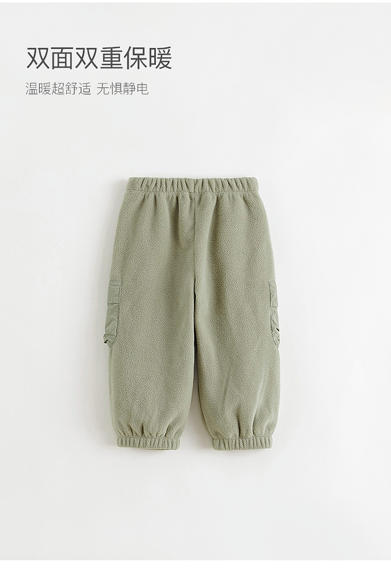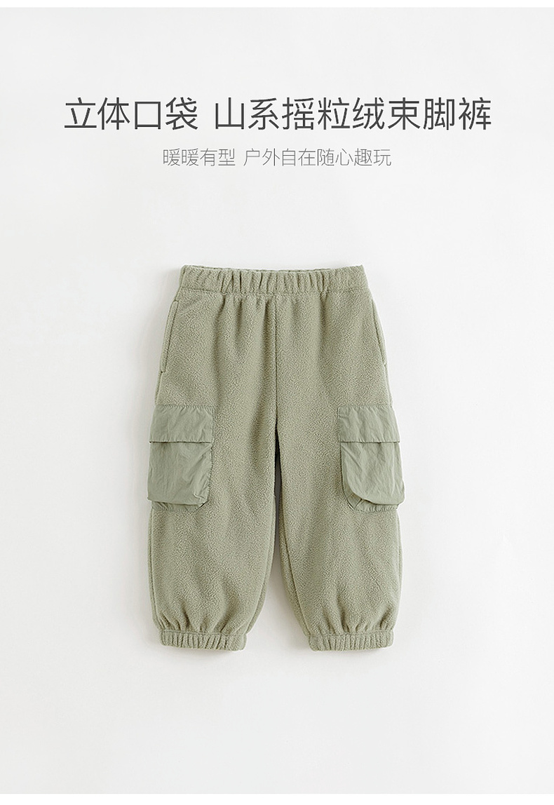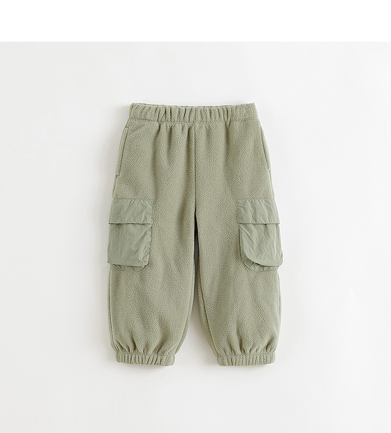 马克珍妮男童山系立体口袋摇粒绒束脚裤2024年秋冬新款241061