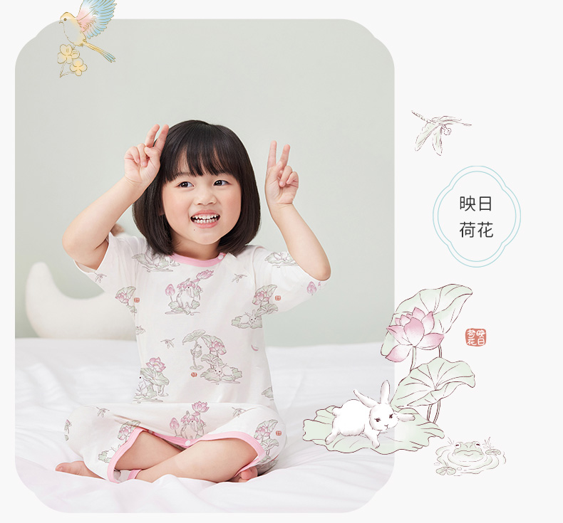 儿童款i-baby&奈娃家族夏季圆领全棉运动短袖套装