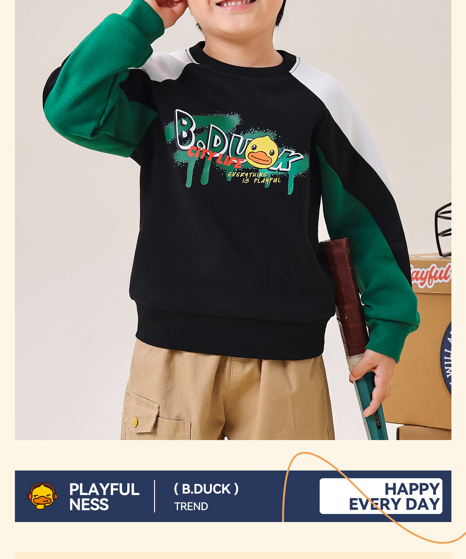 B.Duck小黄鸭童装春秋圆领卫衣110-160 BF3608070