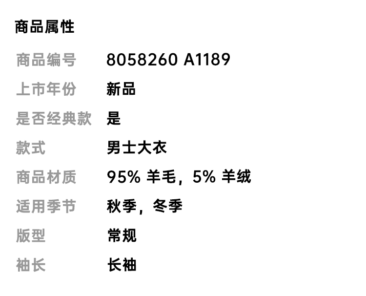 BURBERRY 巴宝莉 男士羊毛羊绒精裁大衣 黑色 8058260 A1189