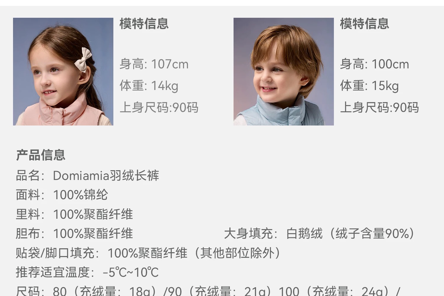 Domiamia 男女宝宝羽绒长裤 秋冬款户外鹅绒保暖加厚工装裤