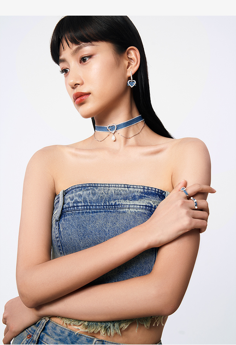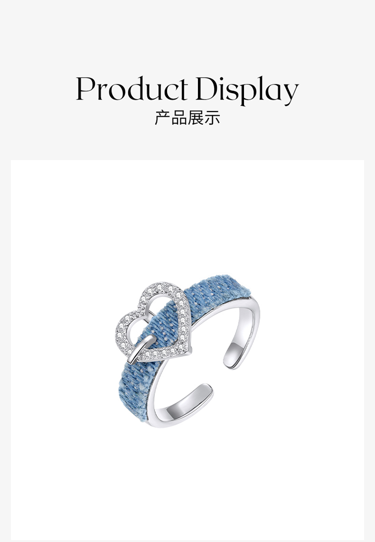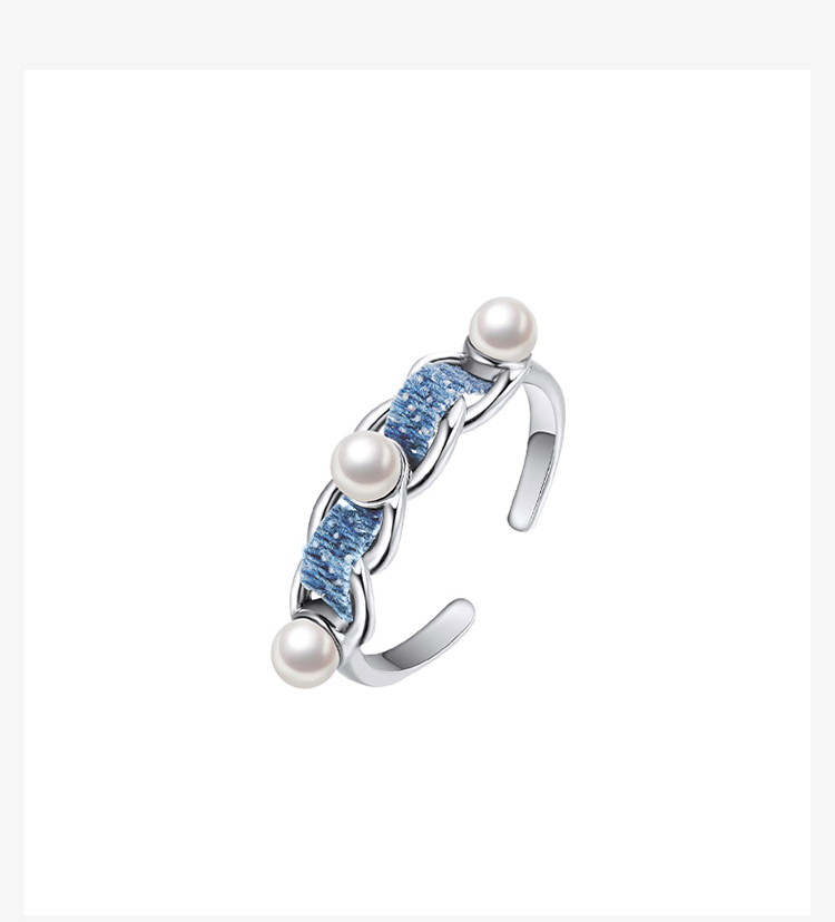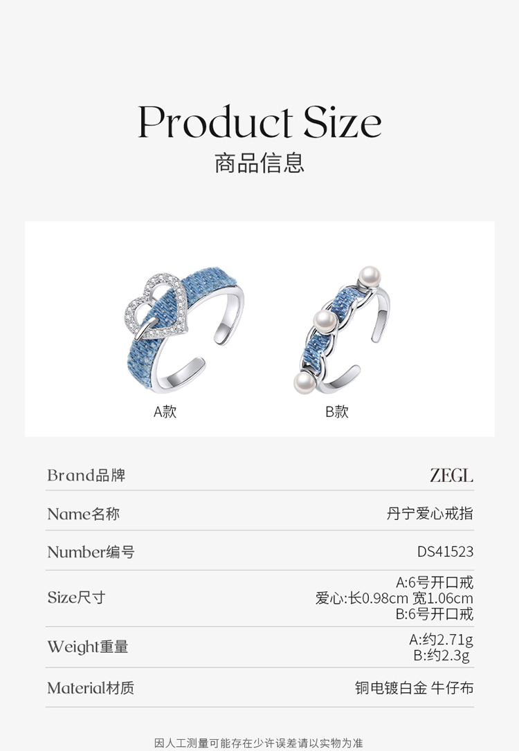 ZEGL设计师丹宁系列牛仔风爱心人造珍珠戒指女小众设计开口食指戒