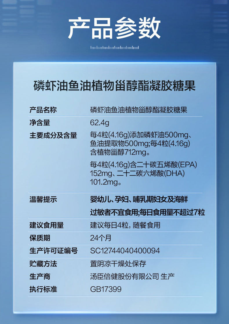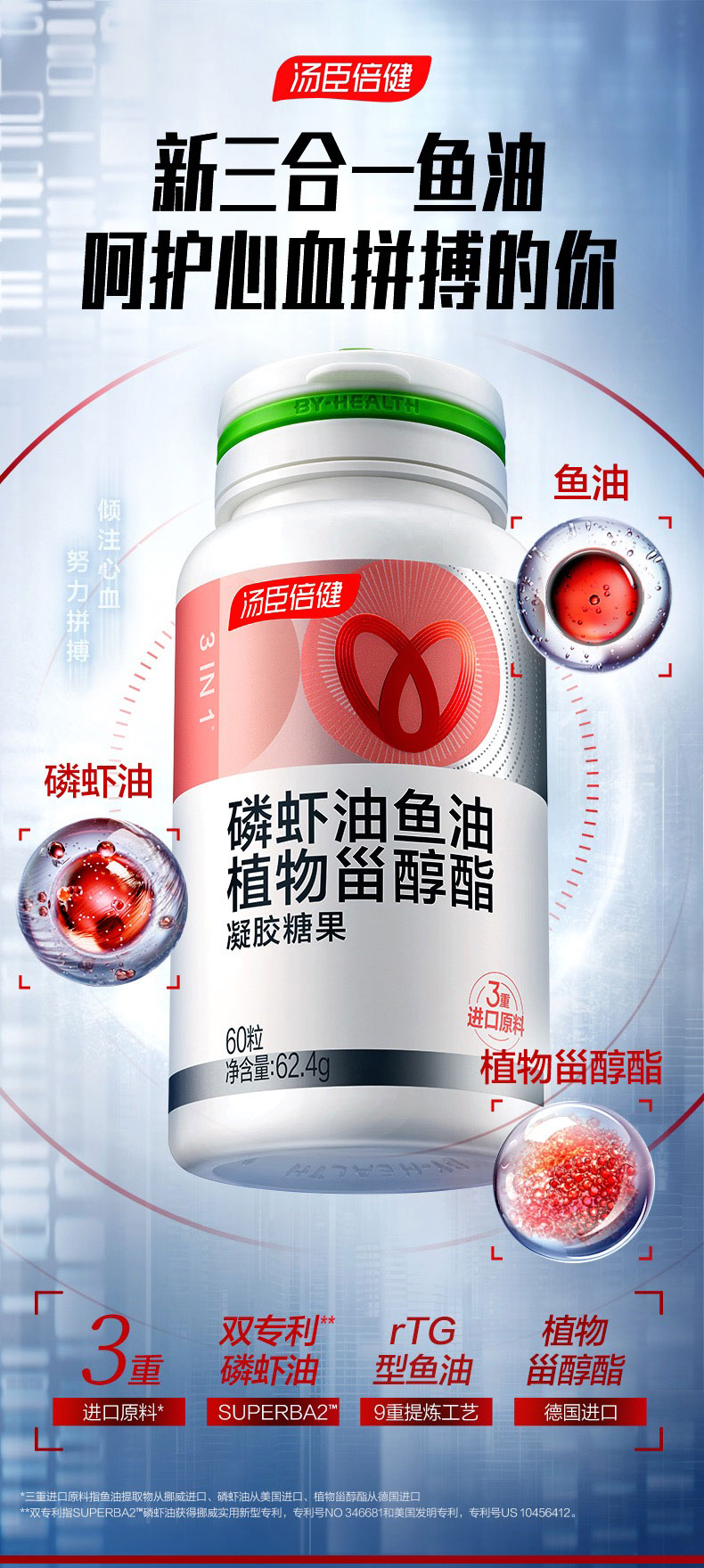 【重磅新品】汤臣倍健磷虾油鱼油植物甾醇酯凝胶糖60粒