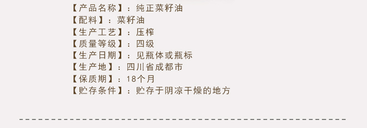 仙餐 纯正菜籽油5L 四川风味 非转基因 物理压榨 食用油