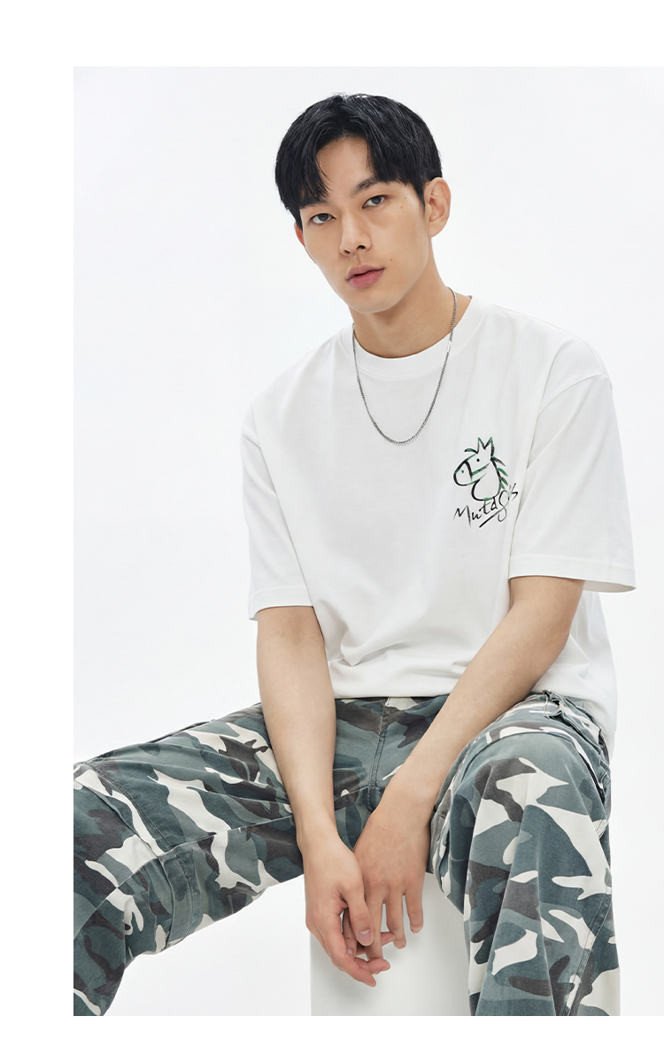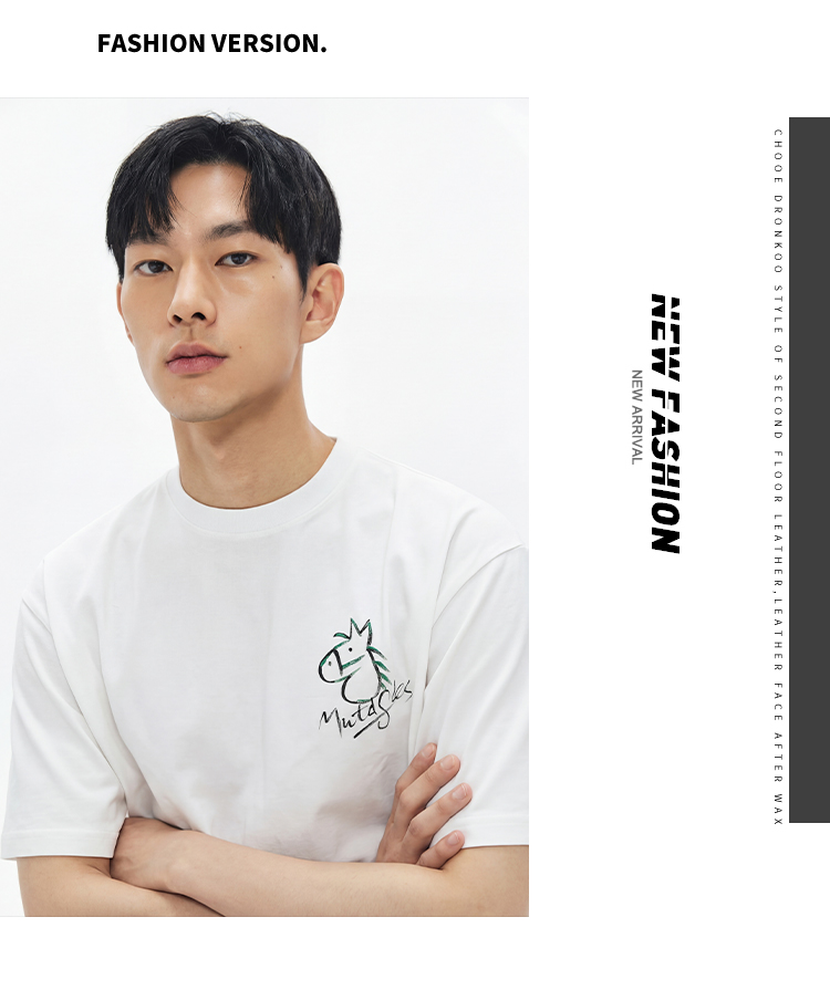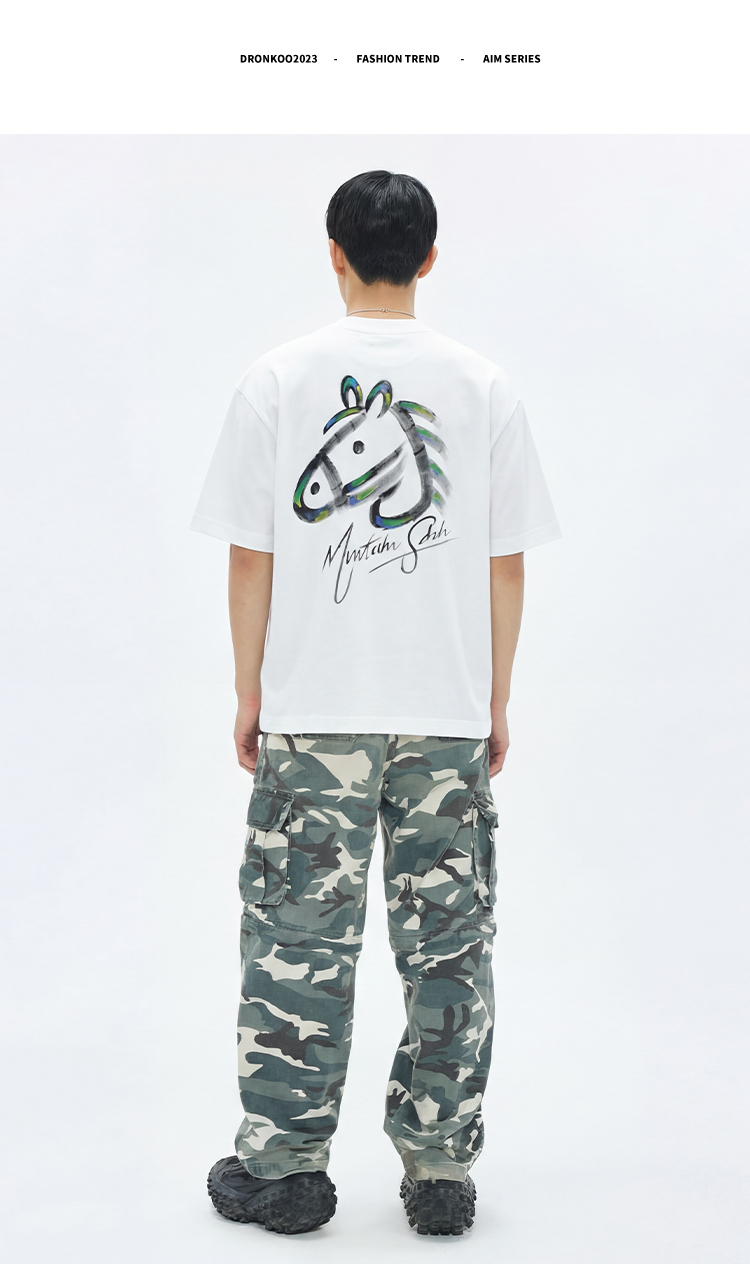 DRONKOO 2026 圆领左胸后幅手绘彩色马微阔短袖T恤