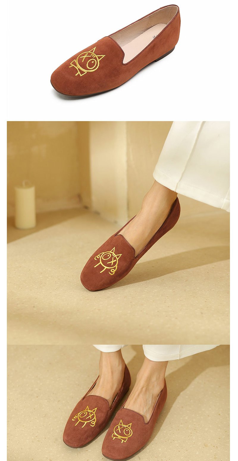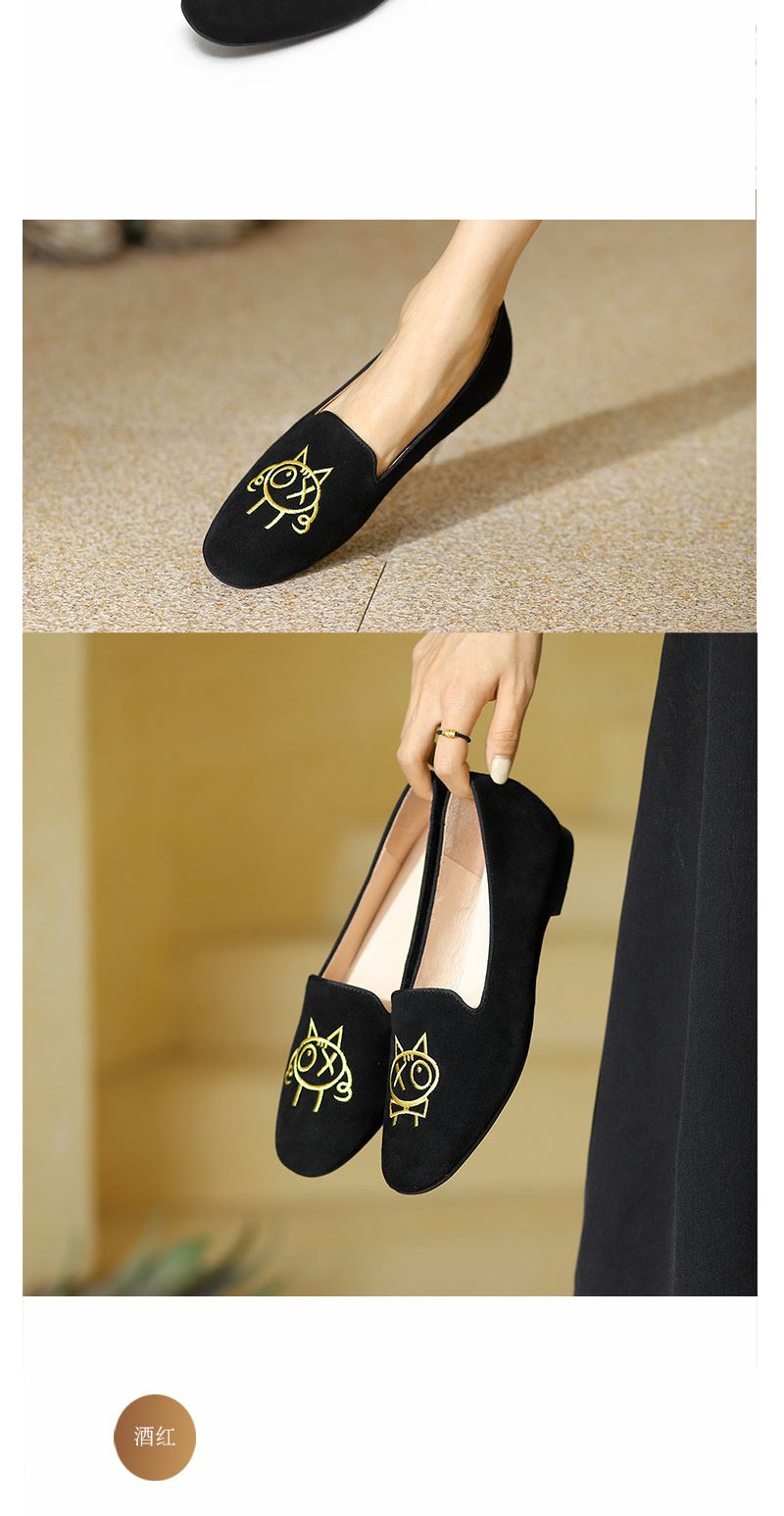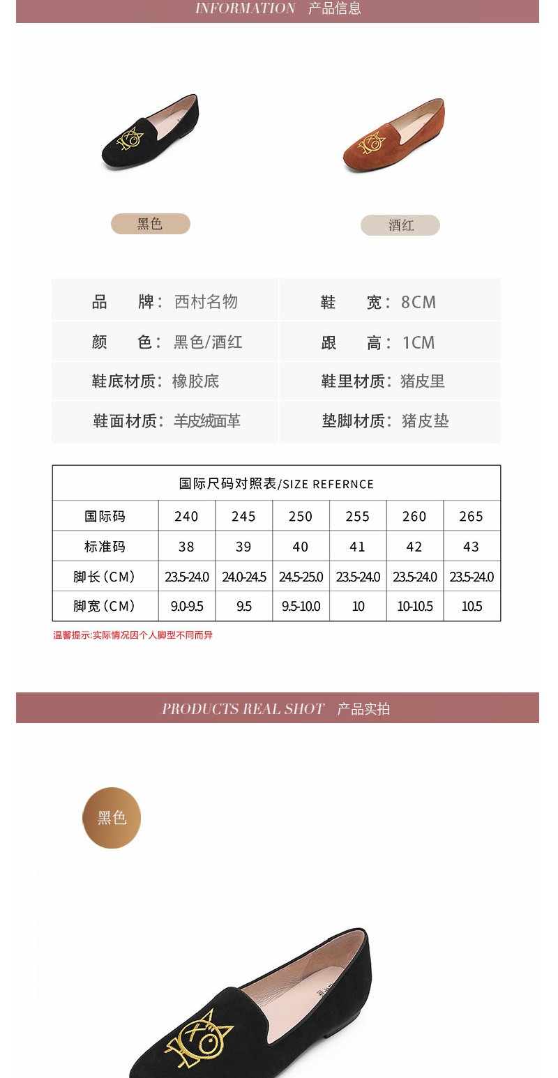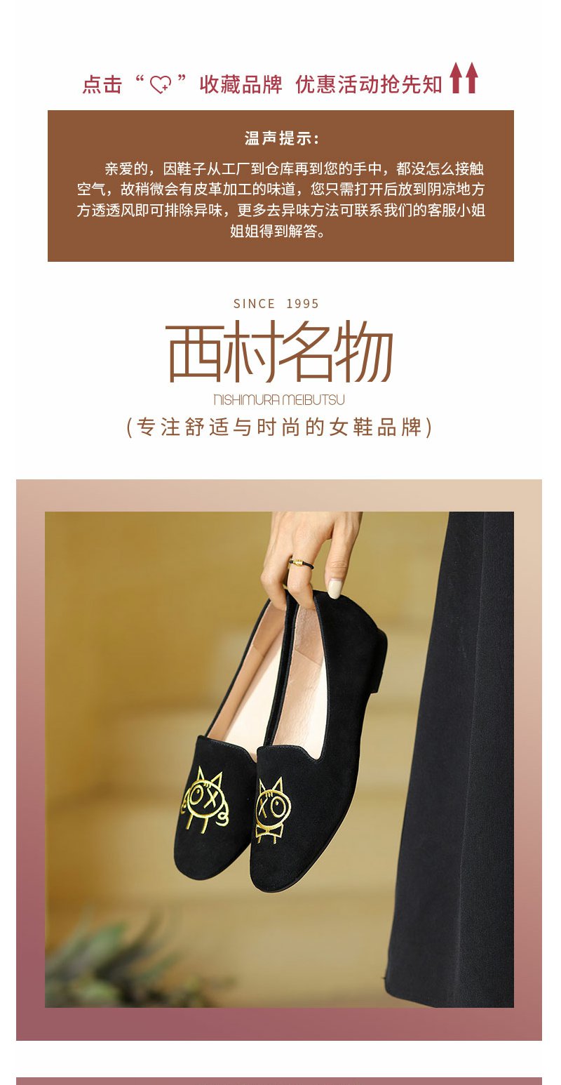 西村名物秋新款刺绣卡通玩趣定制女单鞋平底鞋豆豆鞋一脚蹬奶奶鞋T23AE36818