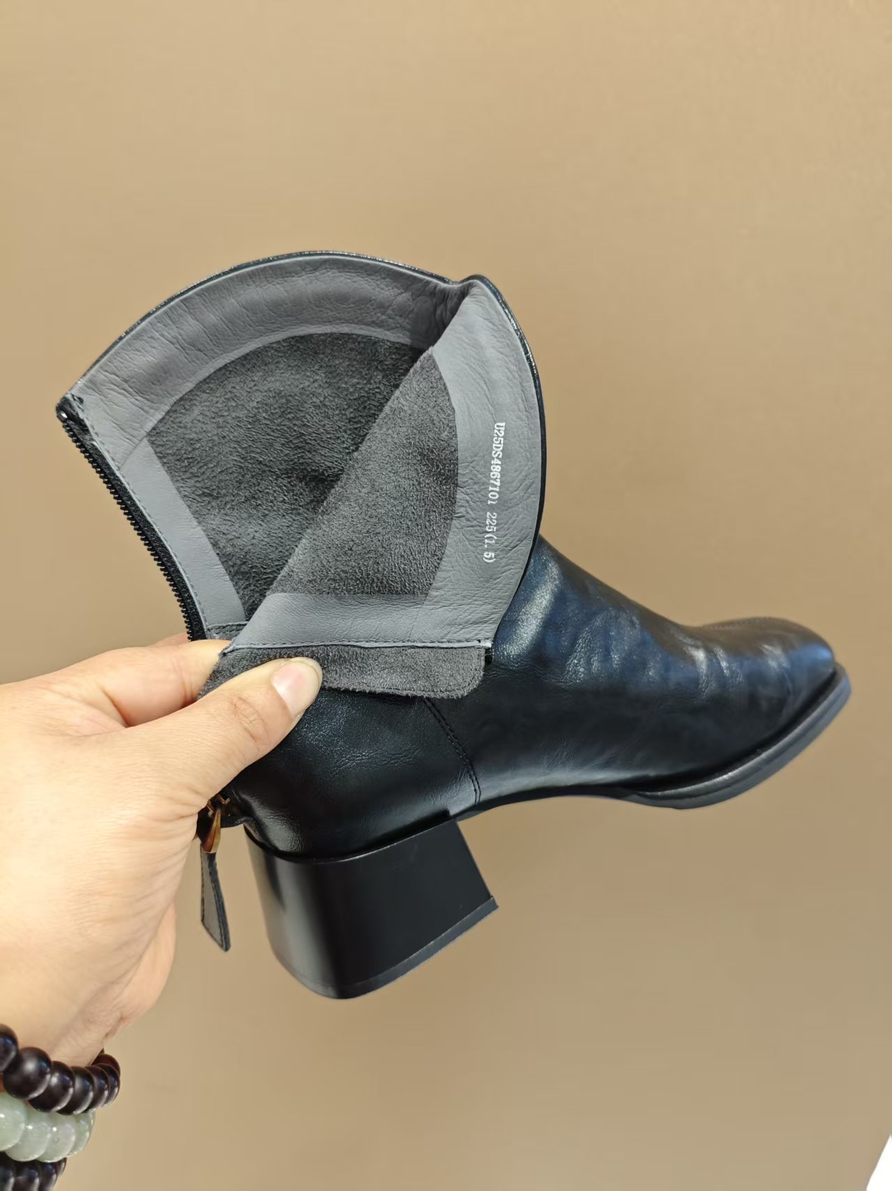 西村名物2025年冬季新款舒适中跟毛绒内里时装靴切尔西靴X25DS48671