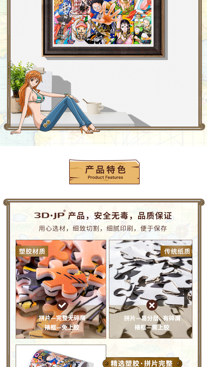 【折扣商品 不退不换】1000片 平面拼图 塑料拼图 H2481 航海王 ONE PIECE