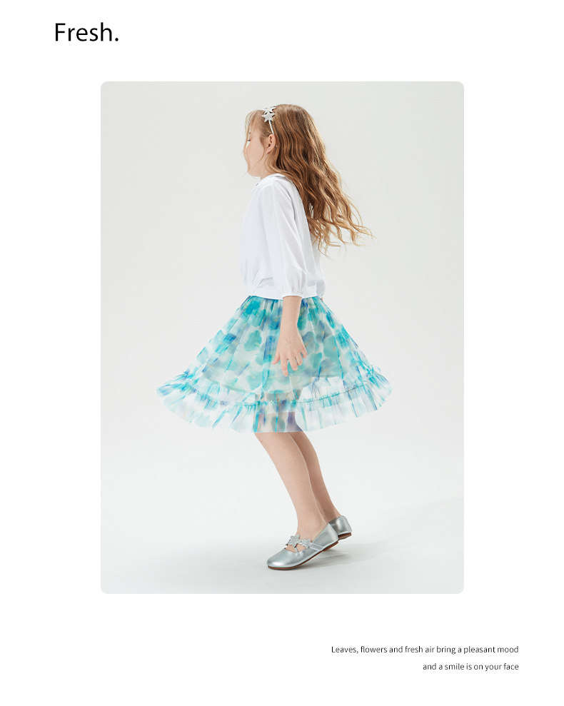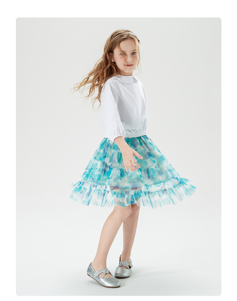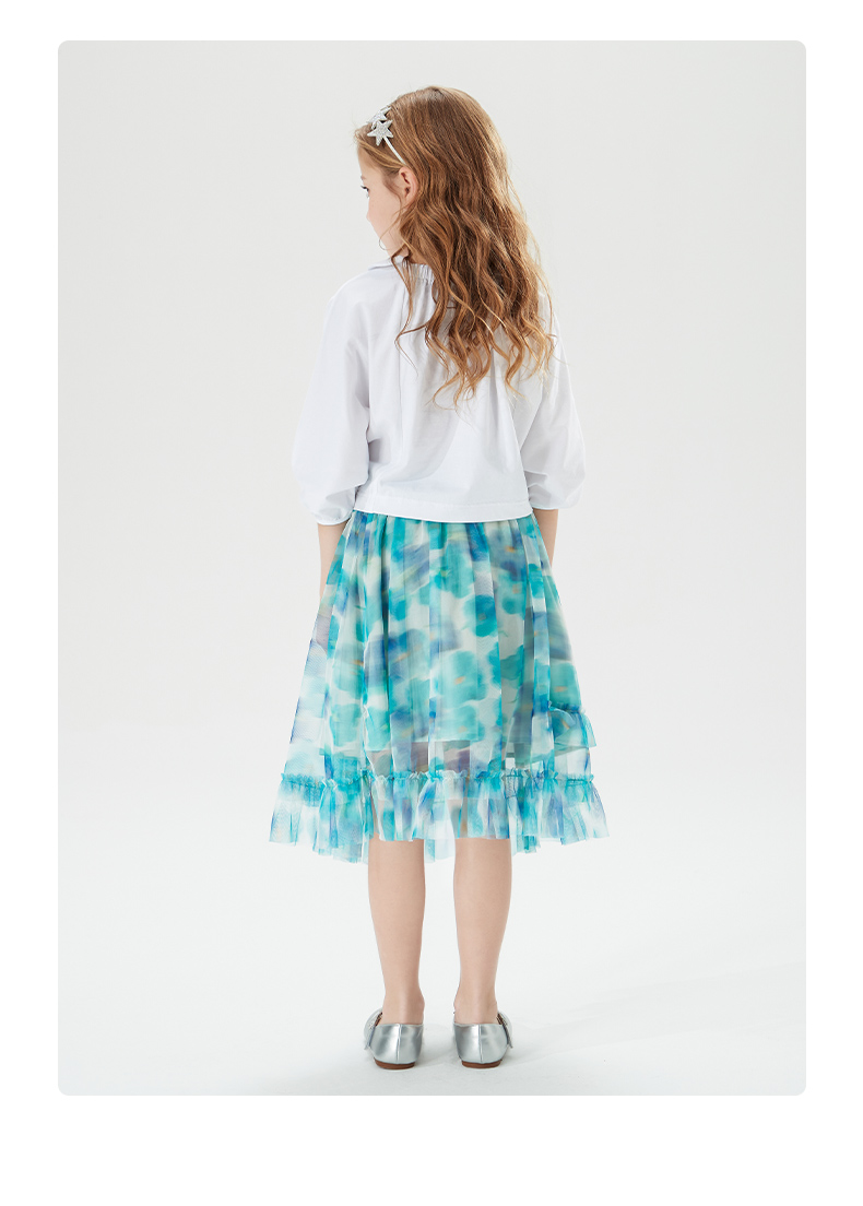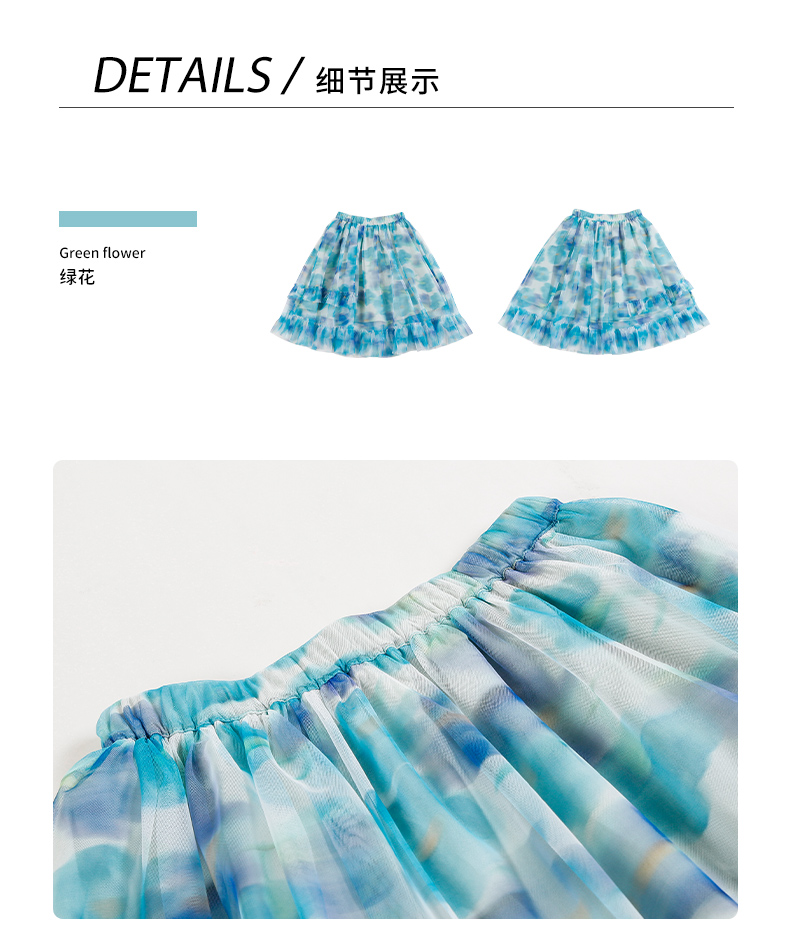 mettekids儿童裙子童装女童夏季碎花裙网纱洋气公主中大童半身裙