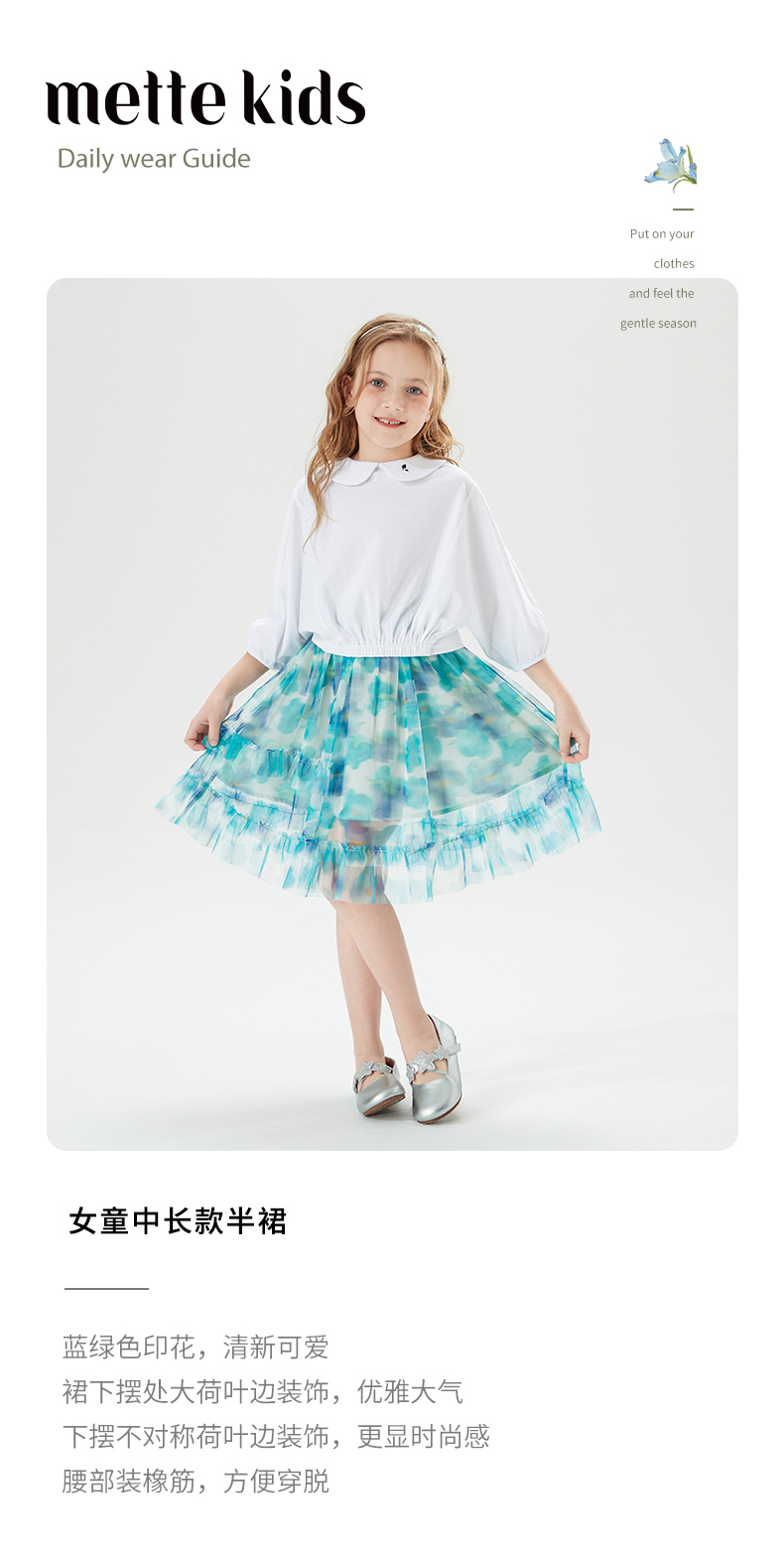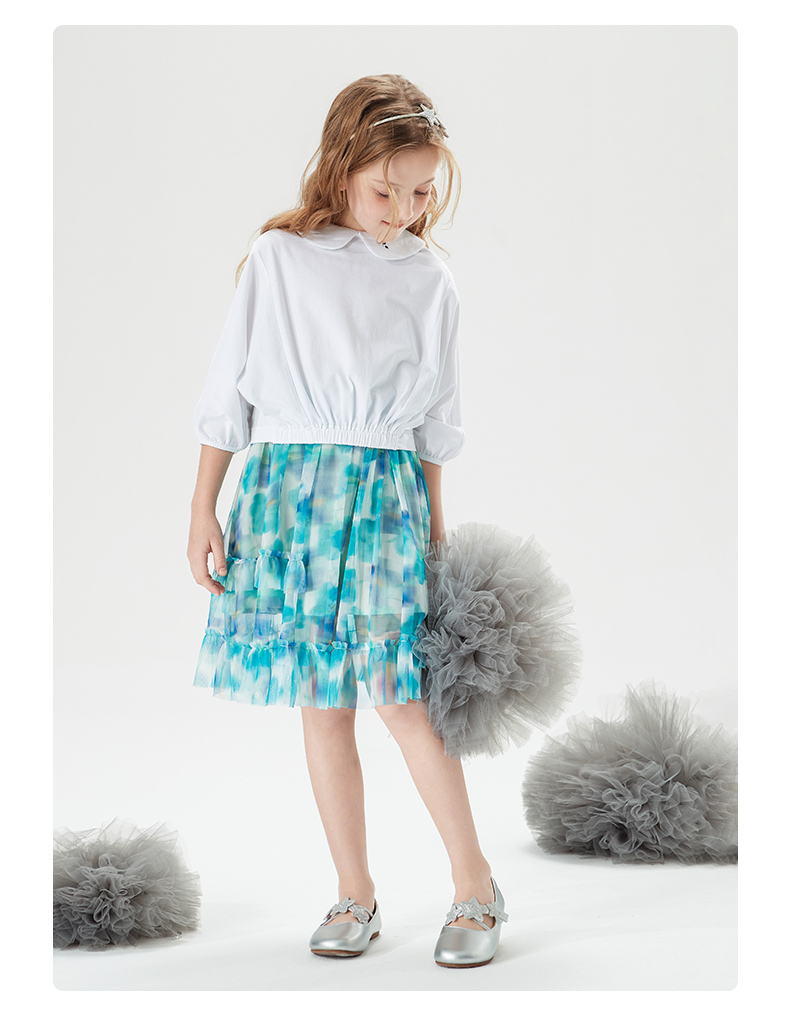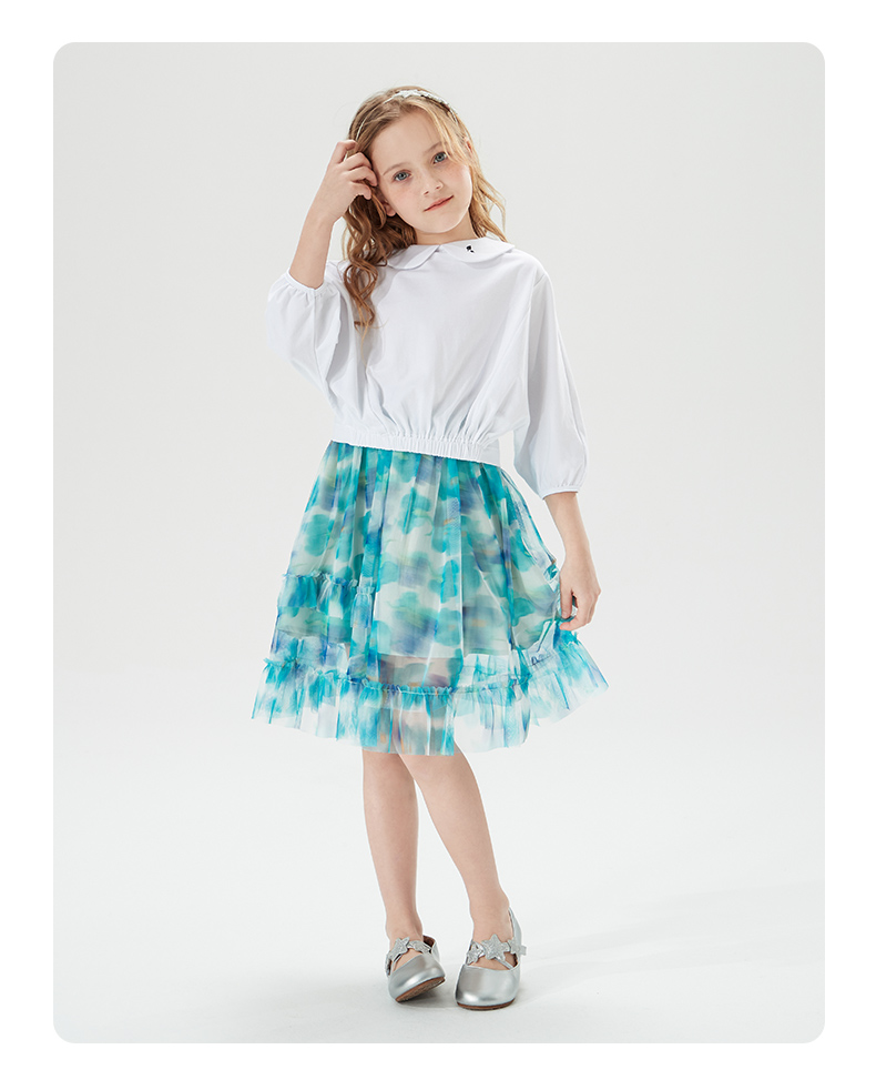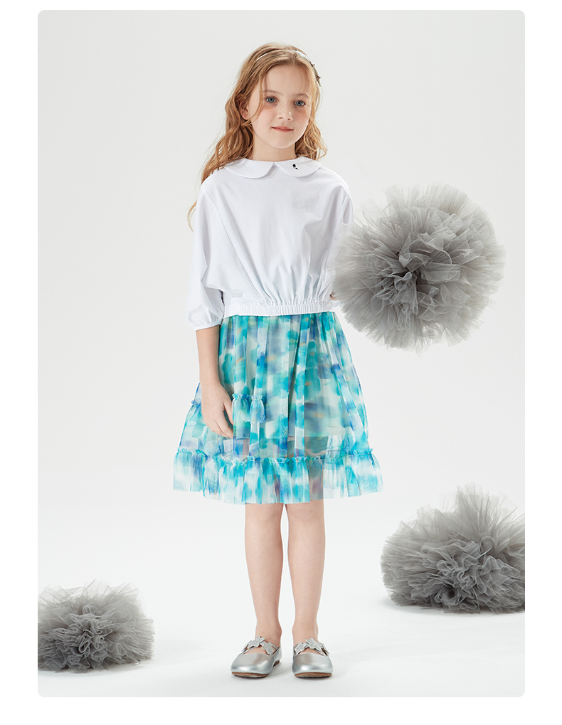 mettekids儿童裙子童装女童夏季碎花裙网纱洋气公主中大童半身裙