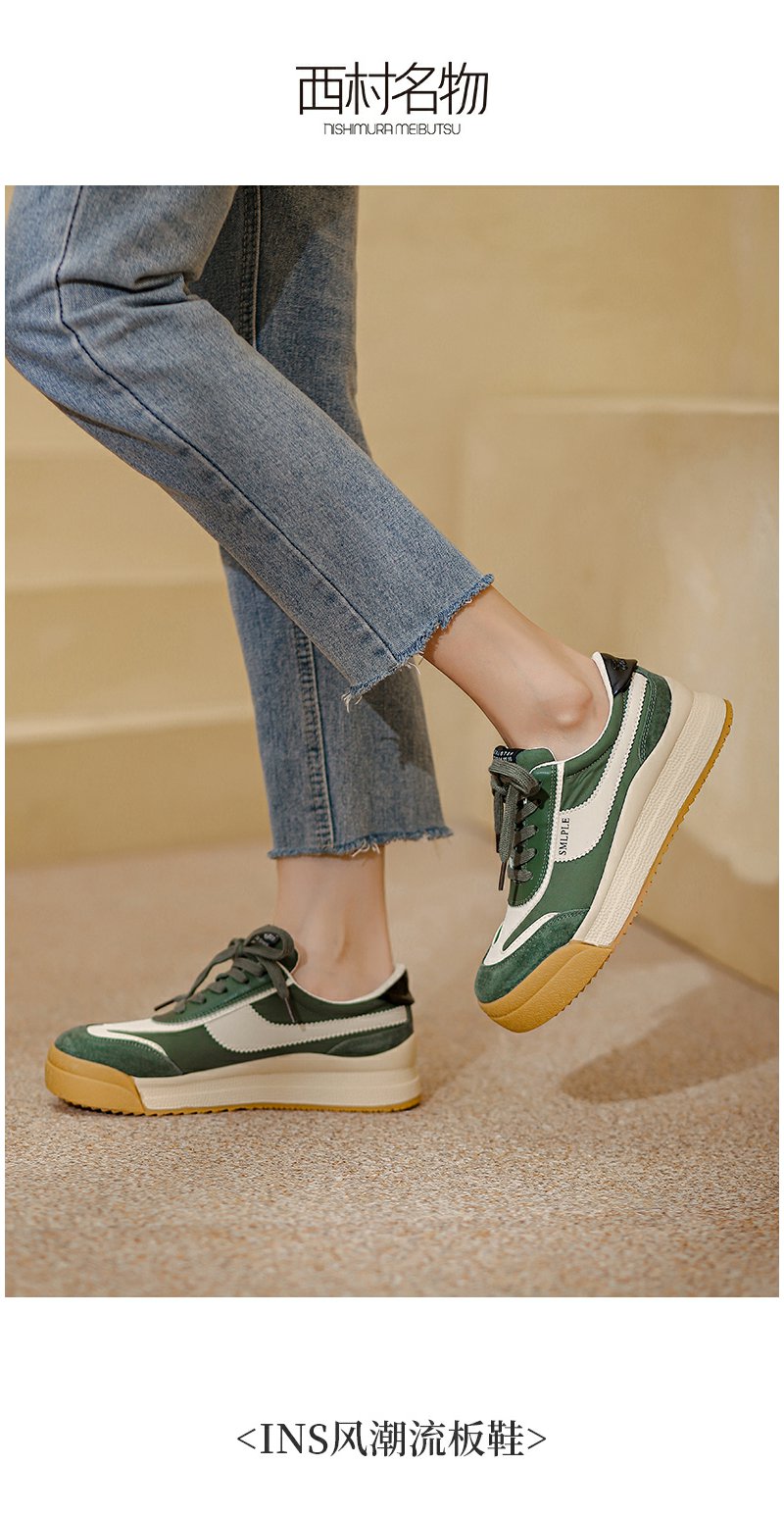 西村名物2022春季新款拼色老爹鞋潮流复古厚底运动休闲鞋女X22AM16831