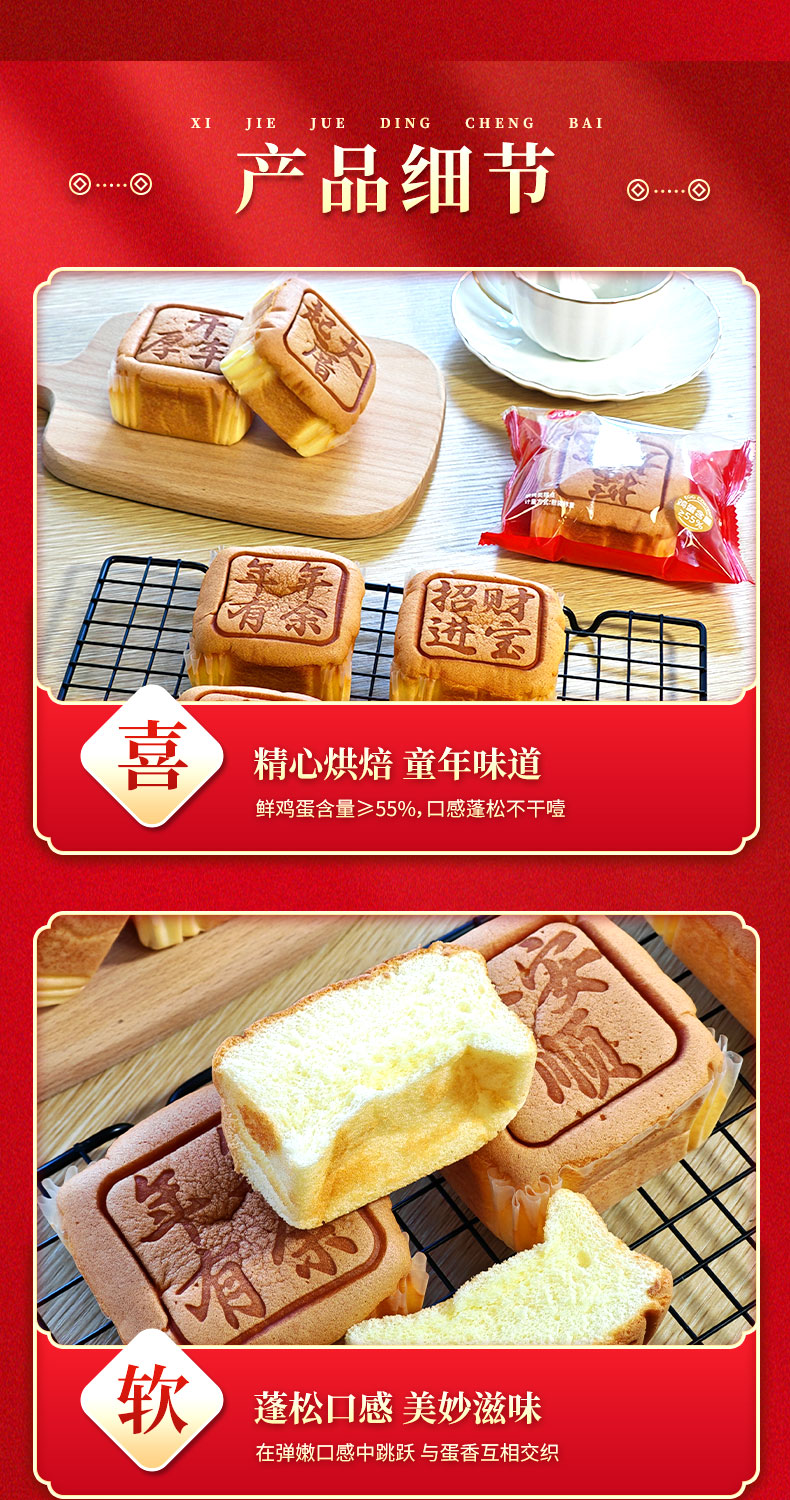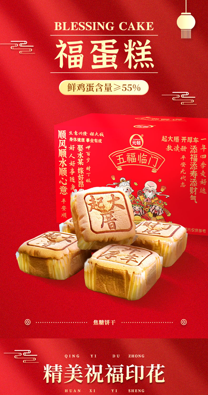 元顿五福临门福蛋糕(888g/箱 17-18个 鲜鸡蛋含量≥55%)生产日期: 3月25日