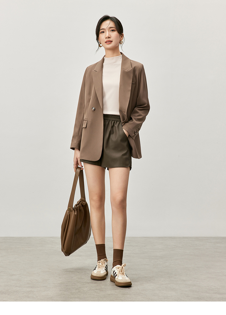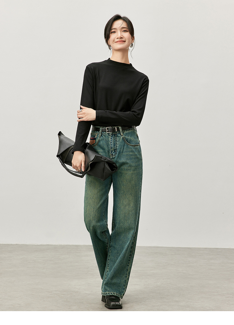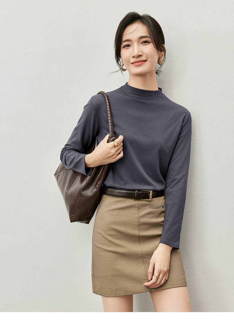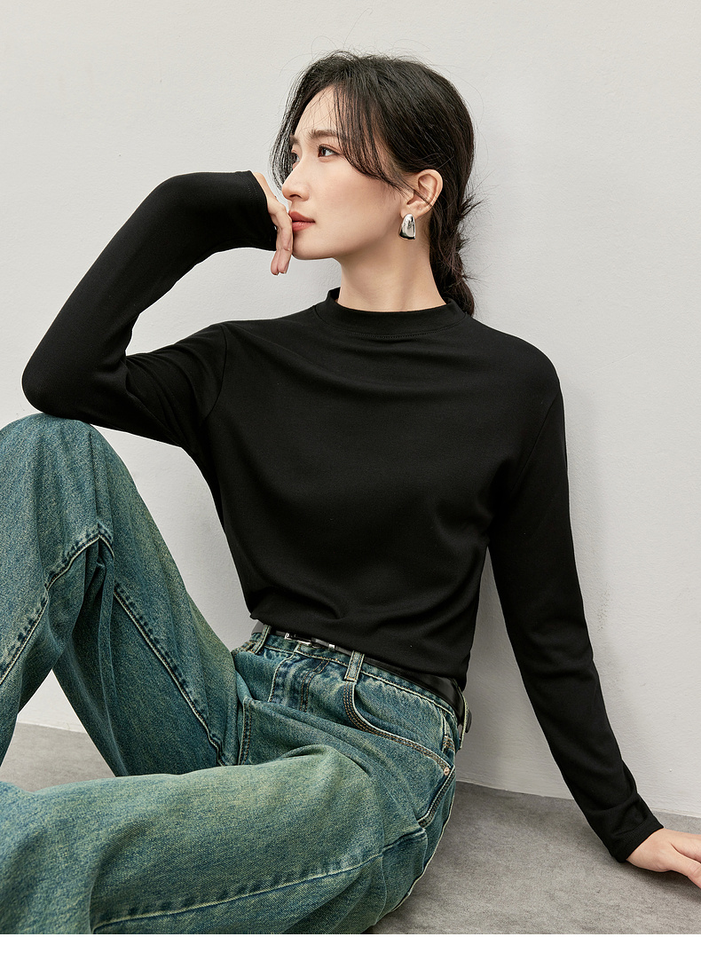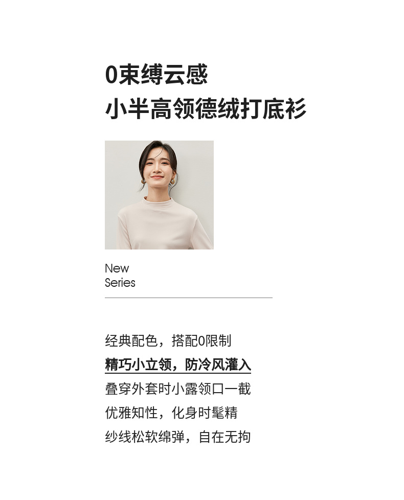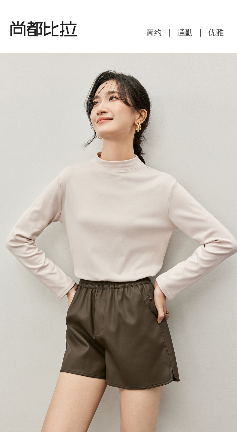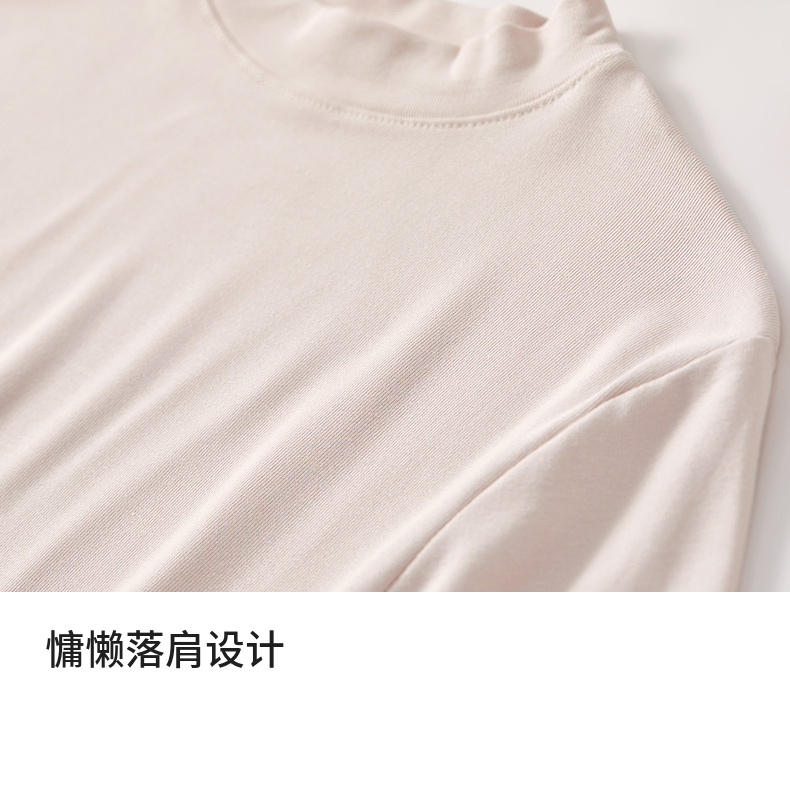 【内购】简约休闲净色打底衫落肩立领德绒保暖针织弹力上衣-W44S57121