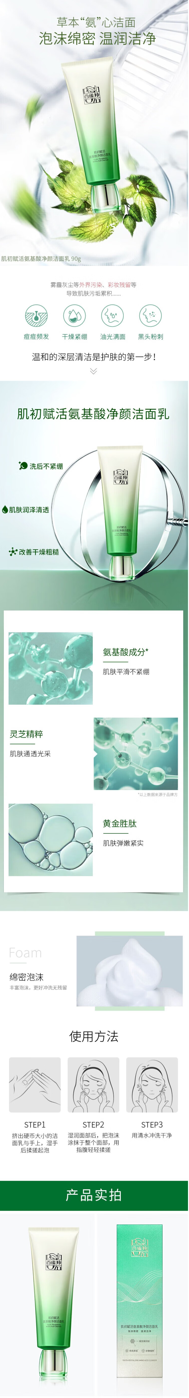 百雀羚肌初赋活氨基酸净颜洁面乳90g-5212