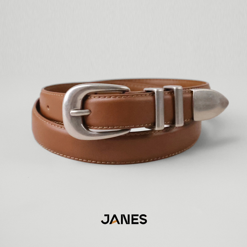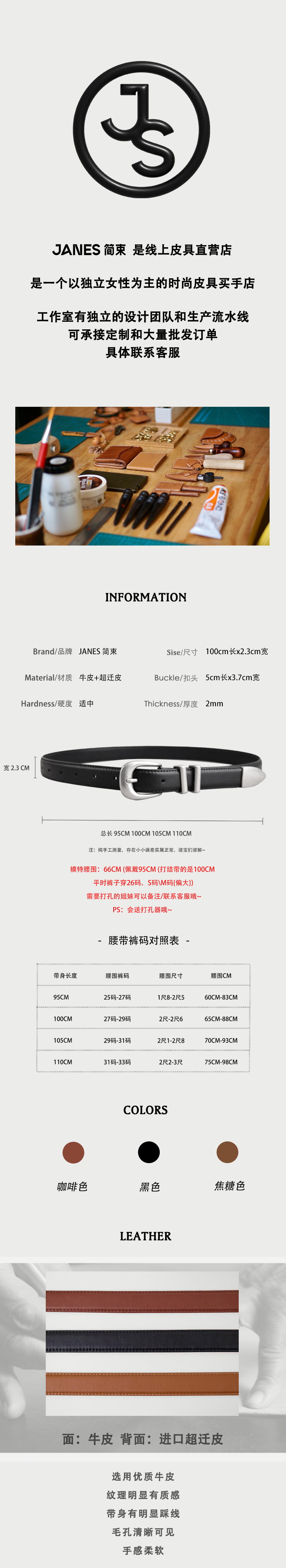 JANES简束[巴恩风】]做旧银扣复古牛皮腰带女牛仔裤百搭真皮皮带女