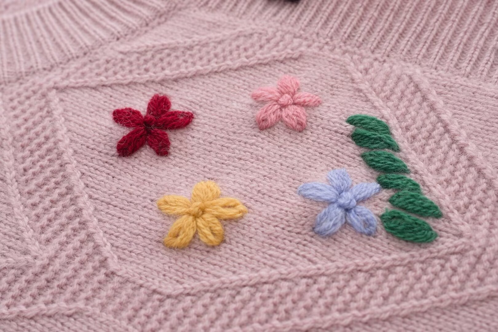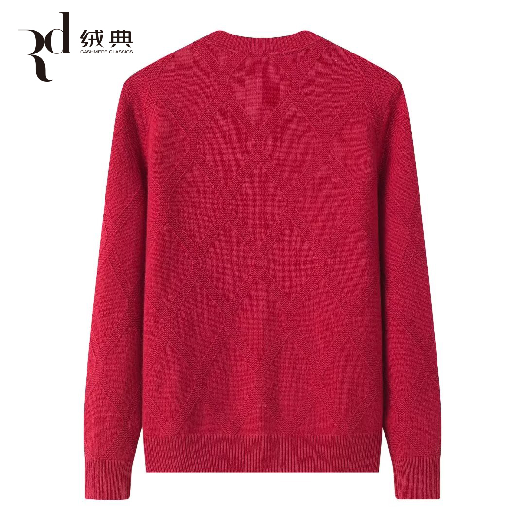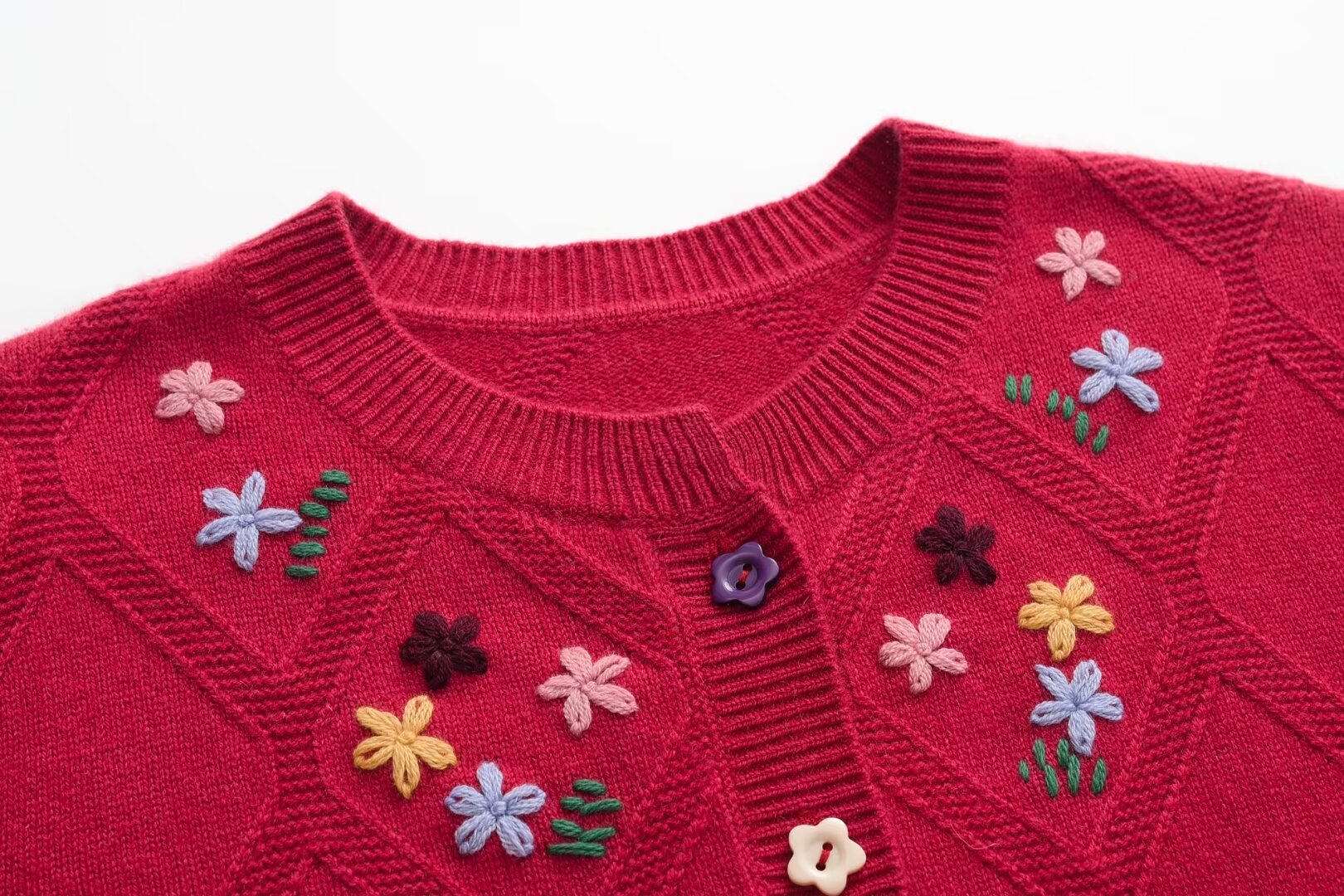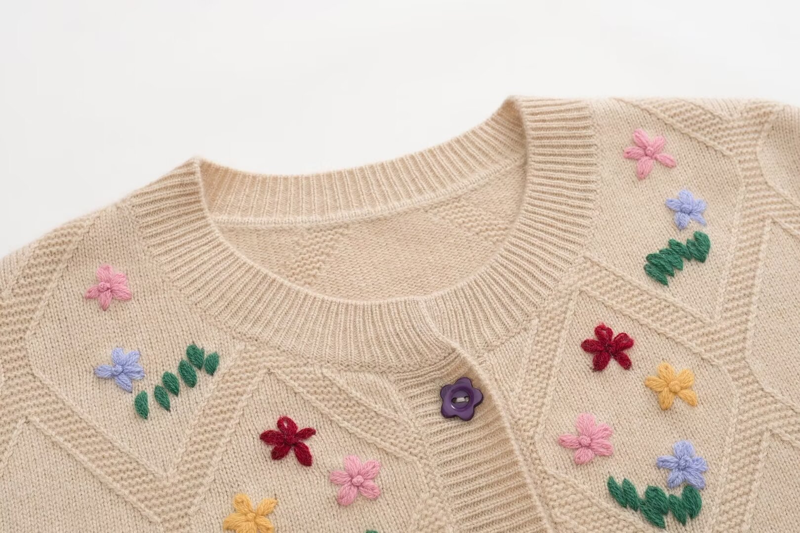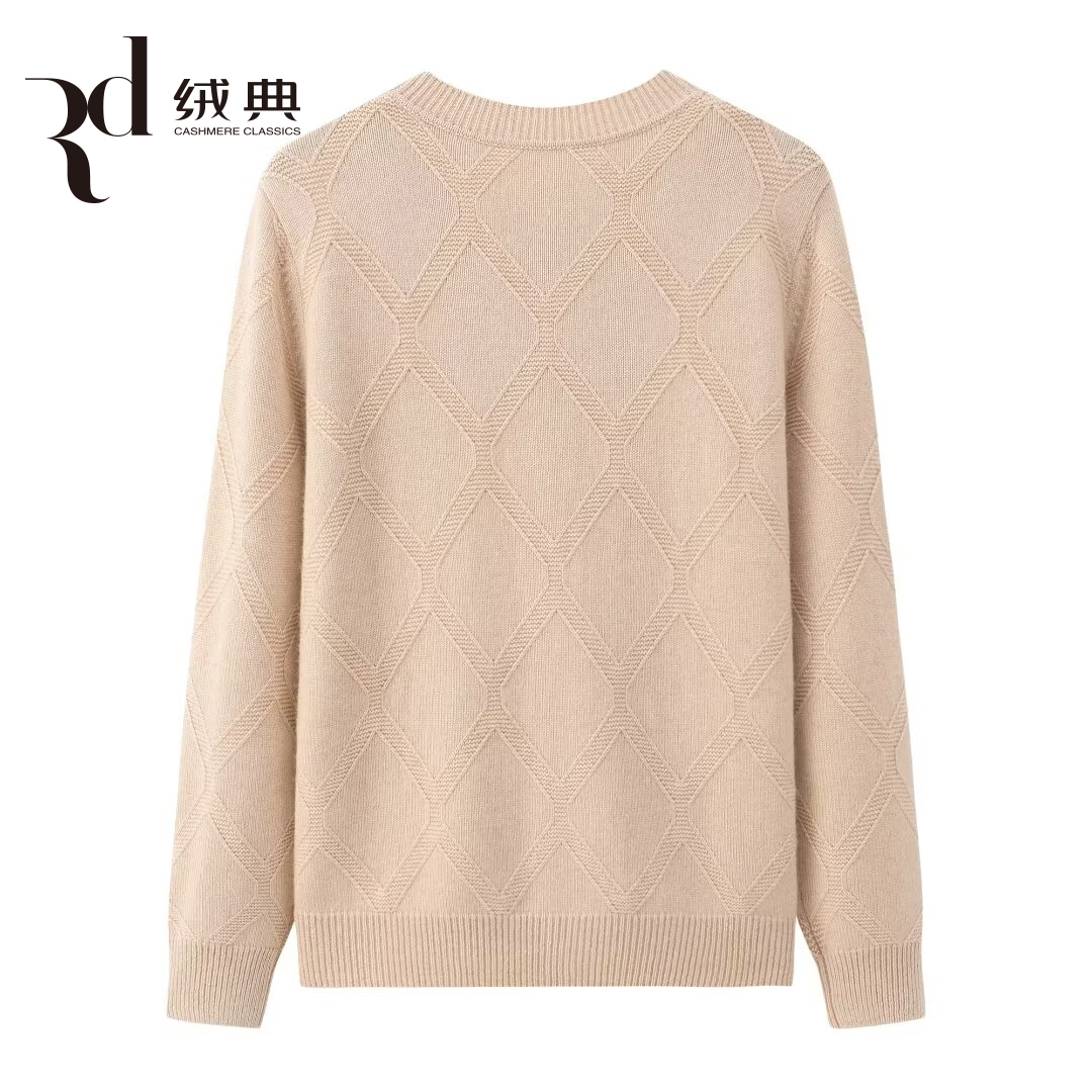 绒典圆领加厚翻花绣花女开衫