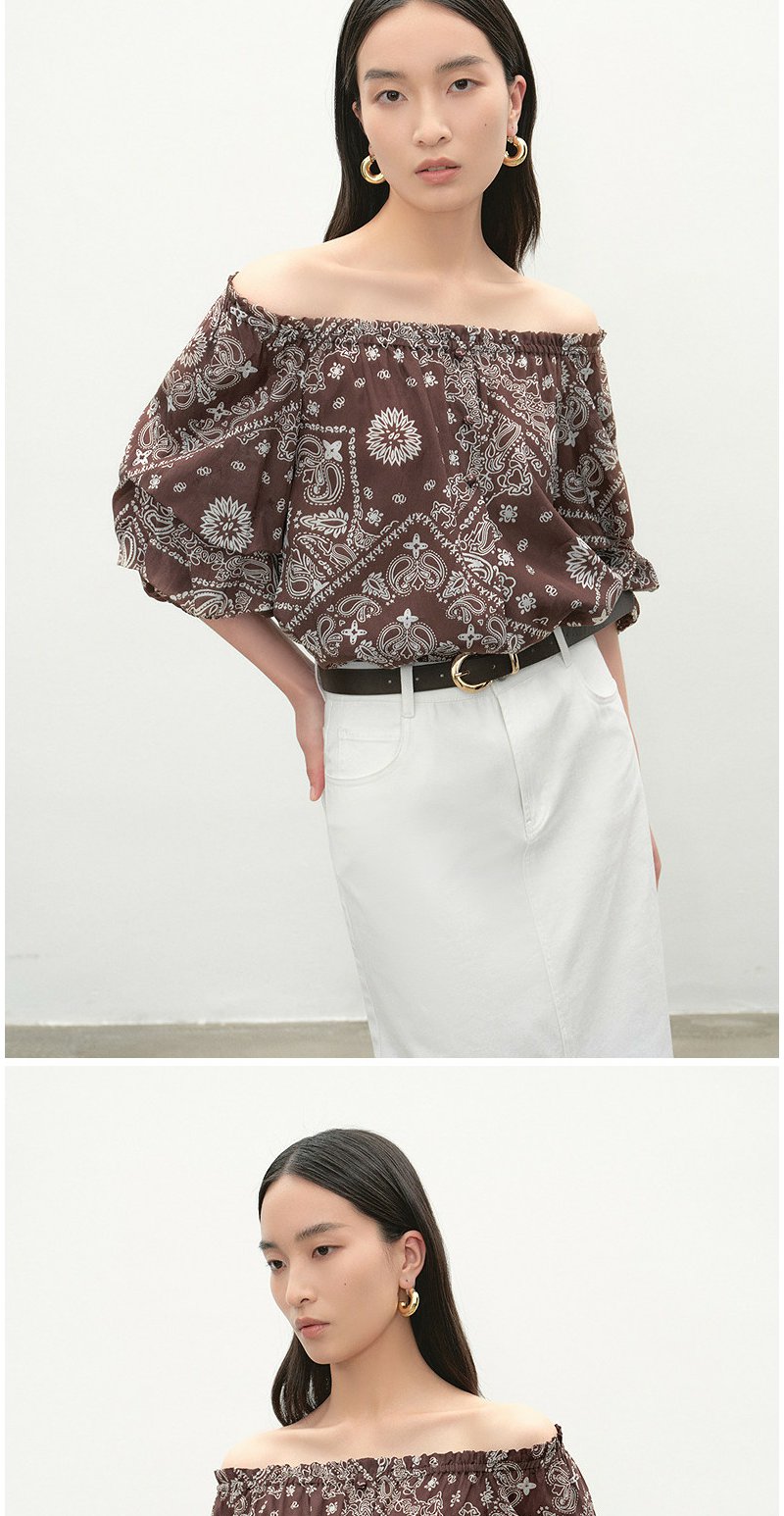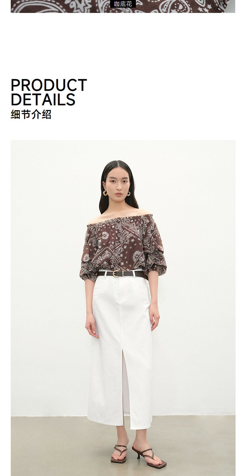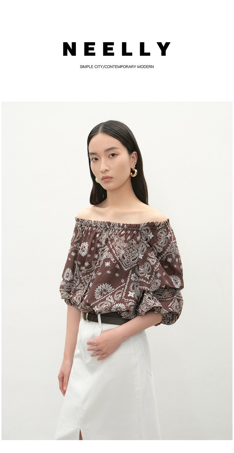 NEELLY纳俪商场同款夏新款复古优雅一字肩上衣女显瘦百搭宽松T恤N26054R04635