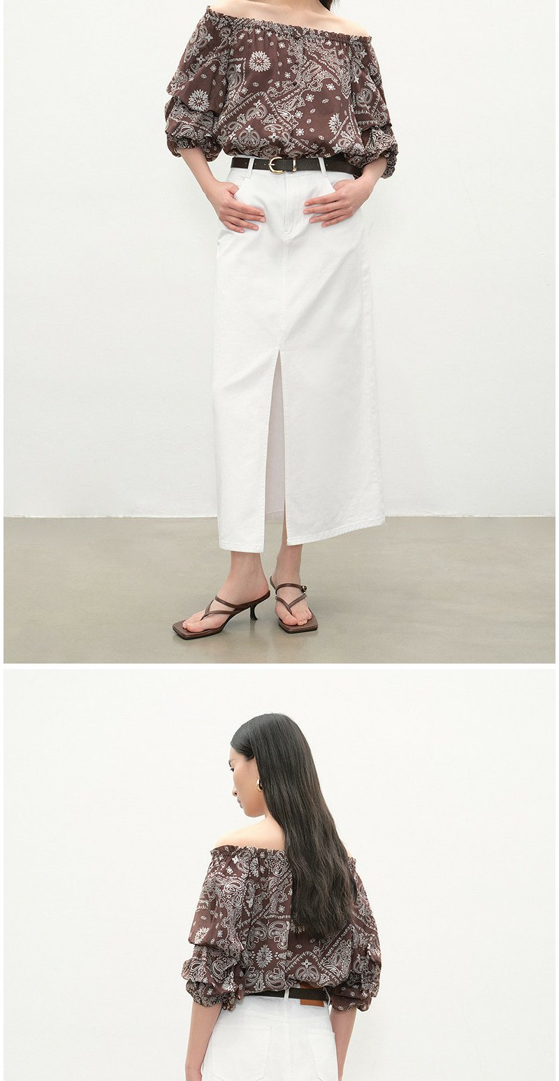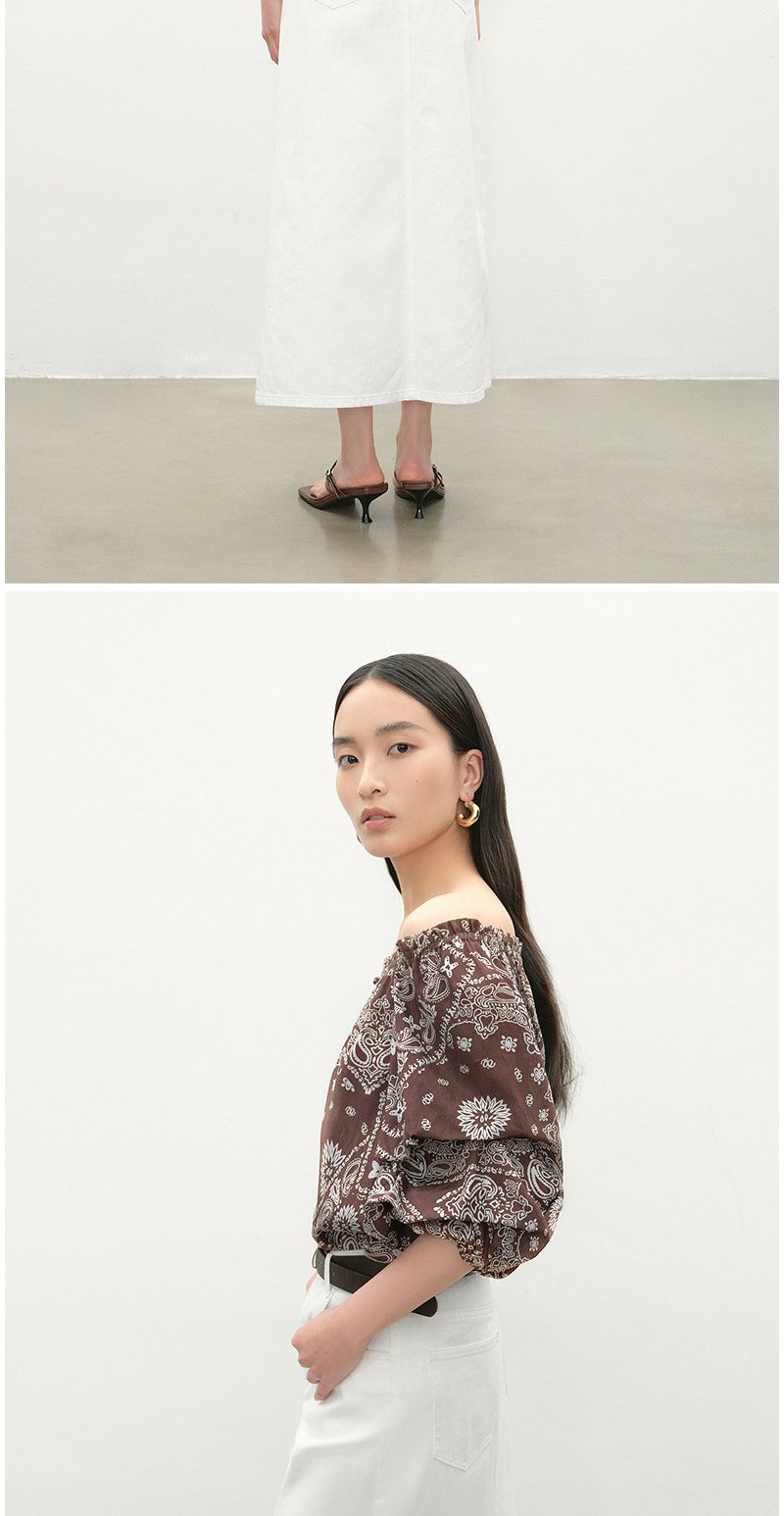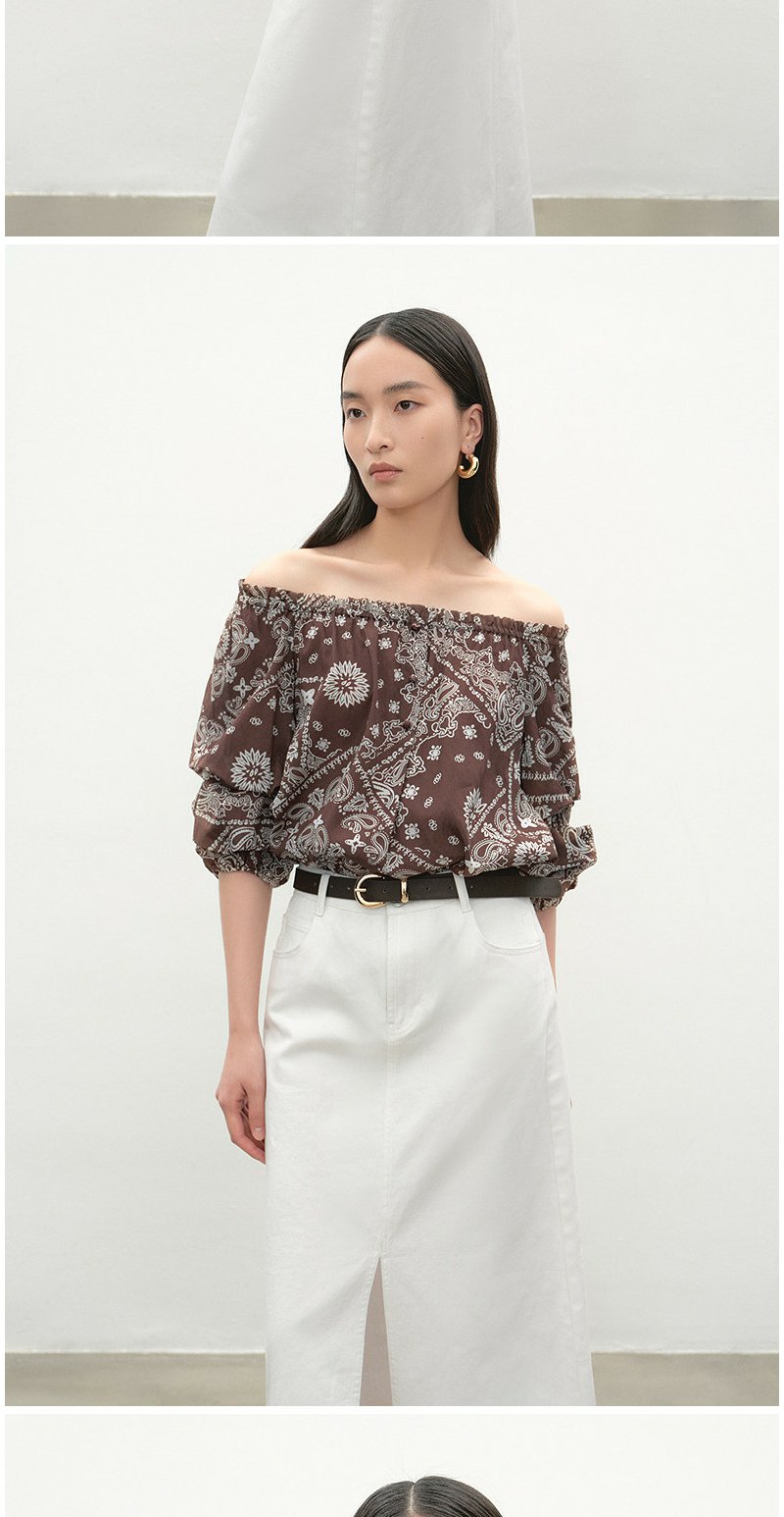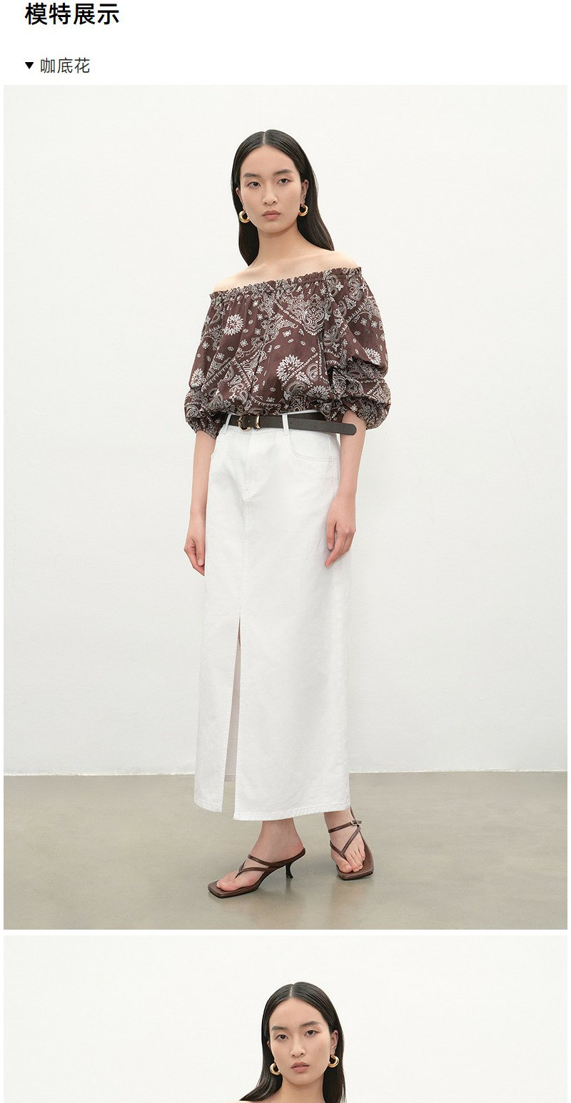 NEELLY纳俪商场同款夏新款复古优雅一字肩上衣女显瘦百搭宽松T恤N26054R04635