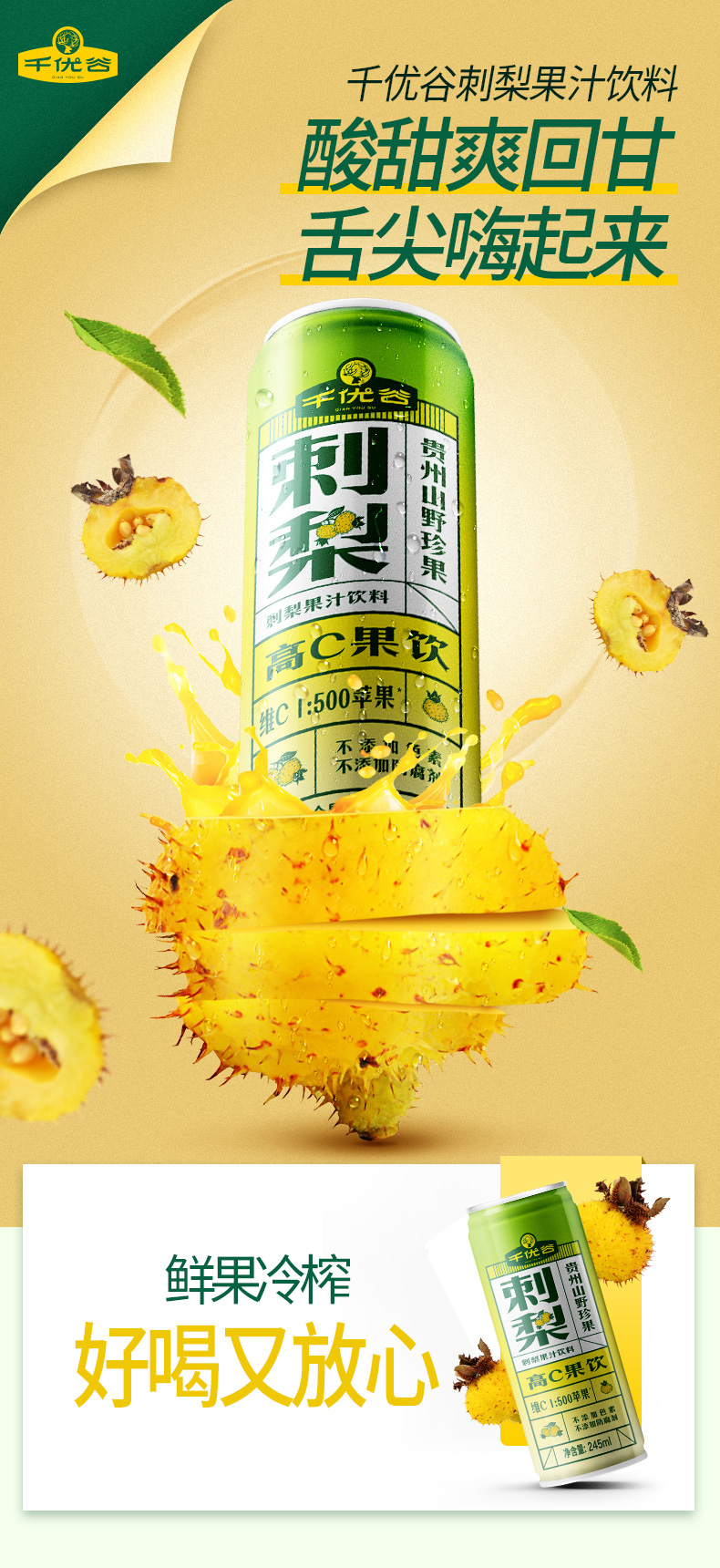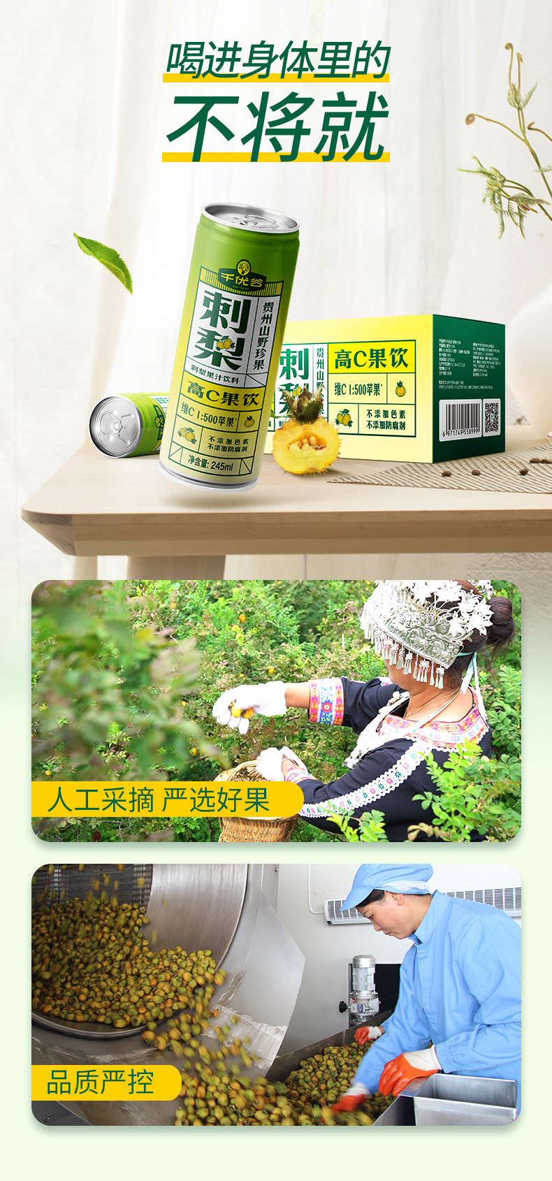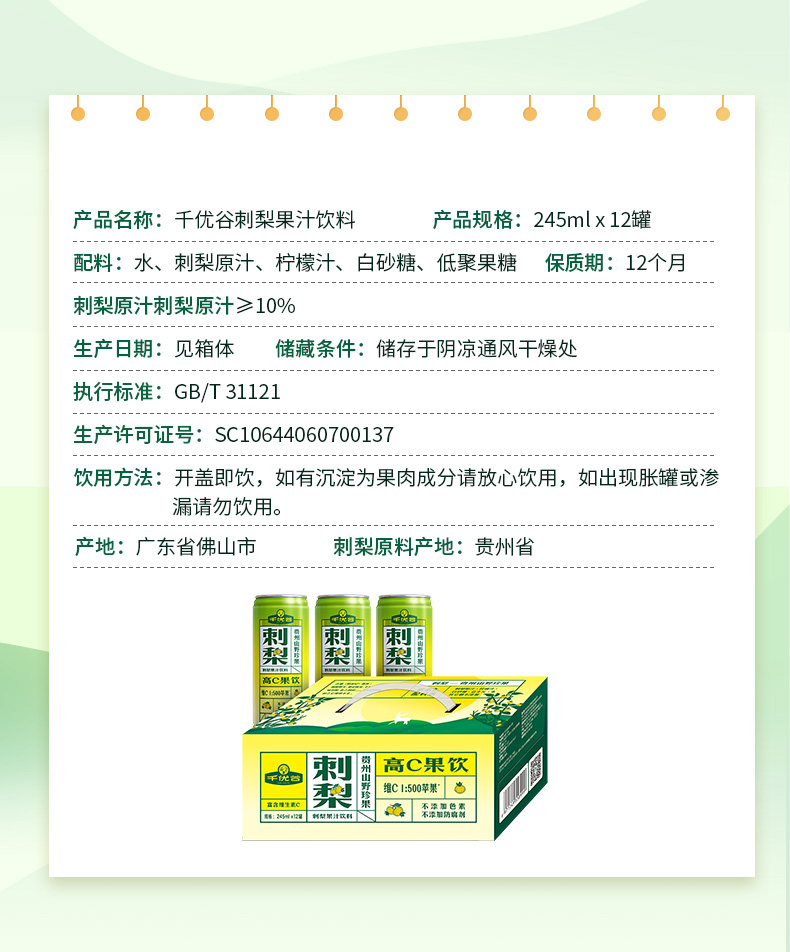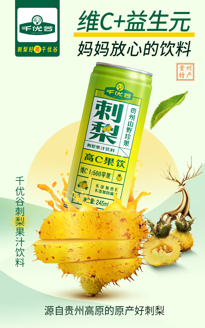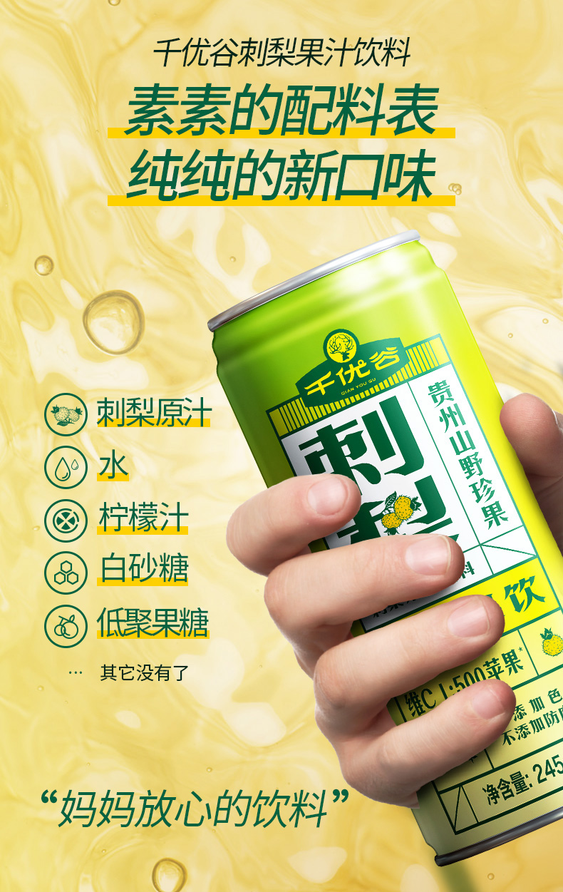 千优谷刺梨果汁饮料高C无色素富含 VC/VP/SOD 维C果饮 12瓶/箱