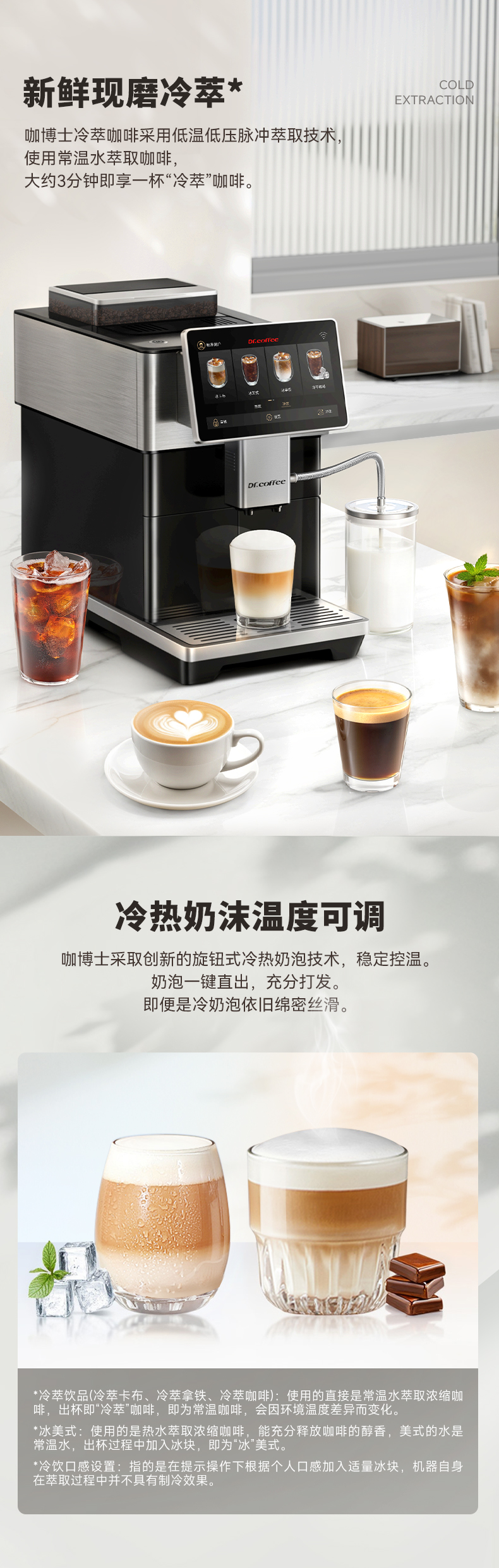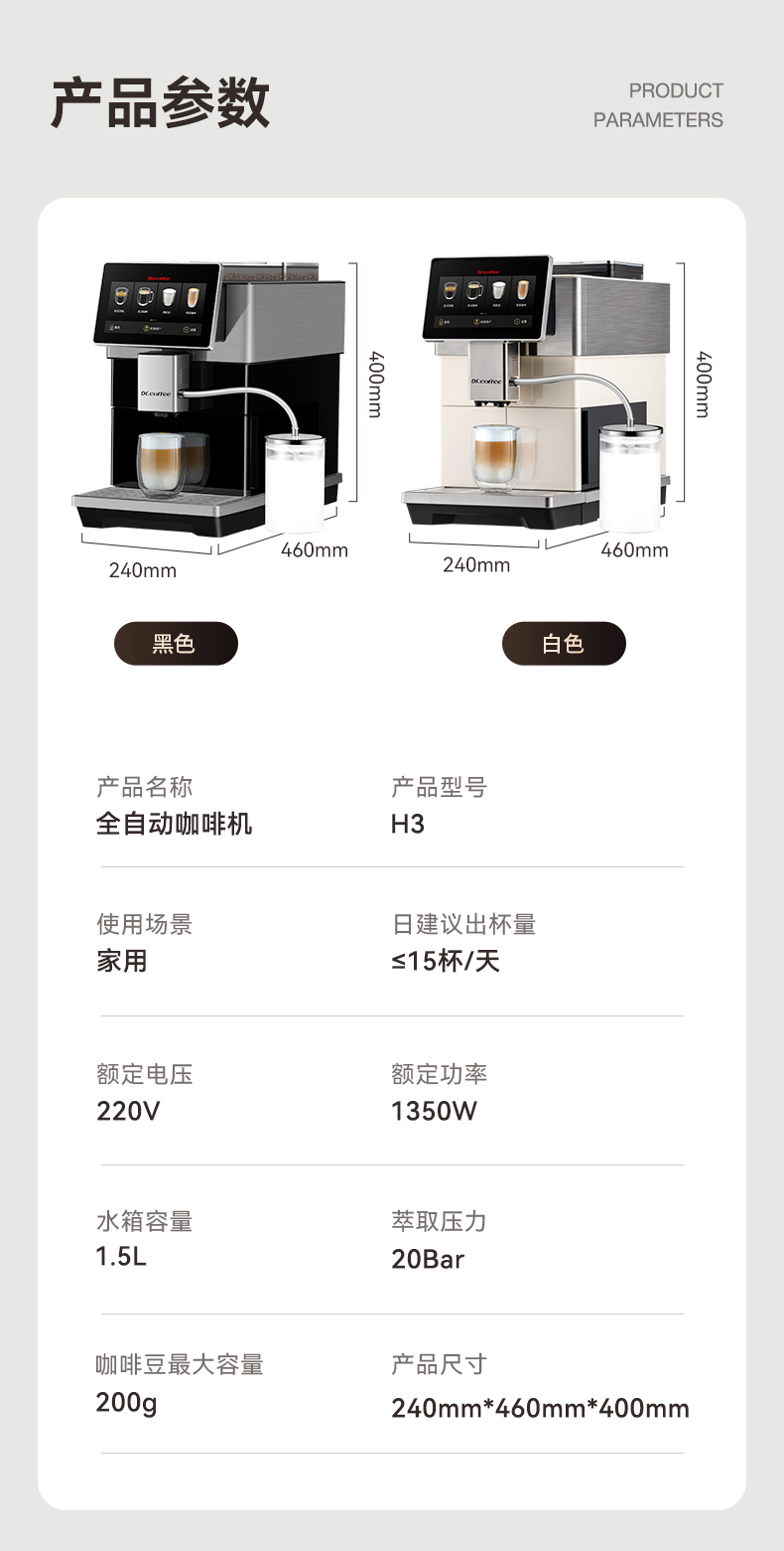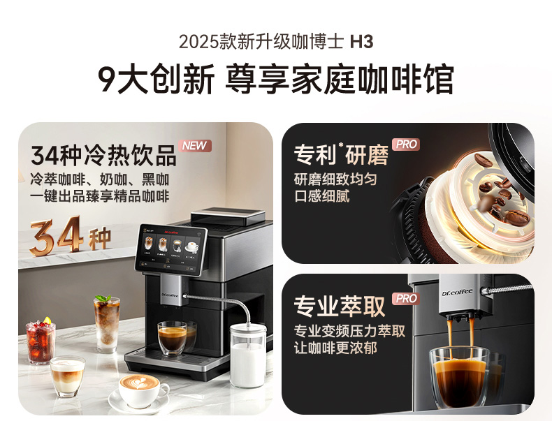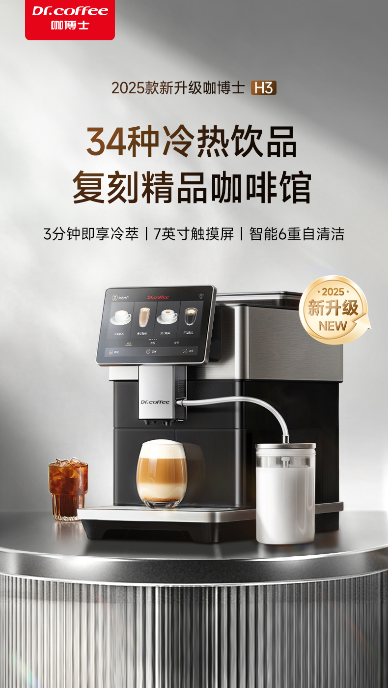 咖博士(Dr.coffee)【】全自动咖啡机意式家用小型研磨一体冷热双萃一键现磨新鲜冷萃_H3黑色【新】