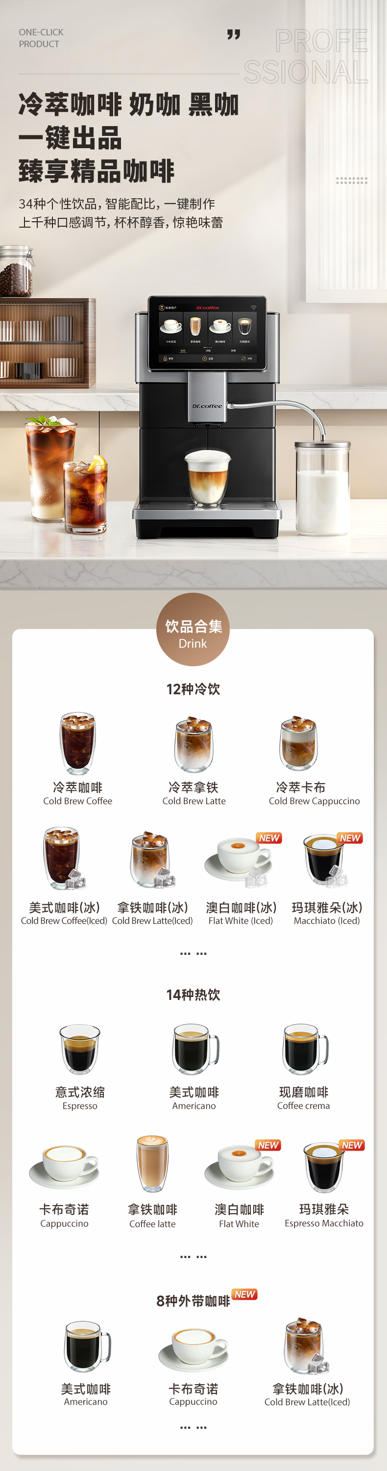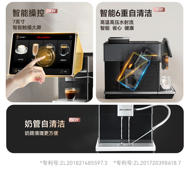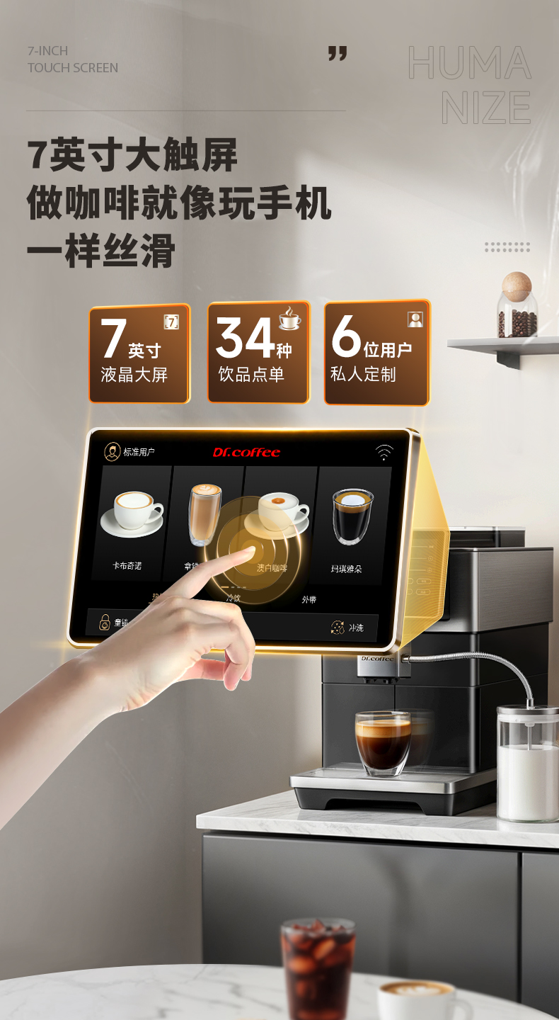 咖博士(Dr.coffee)【】全自动咖啡机意式家用小型研磨一体冷热双萃一键现磨新鲜冷萃_H3黑色【新】