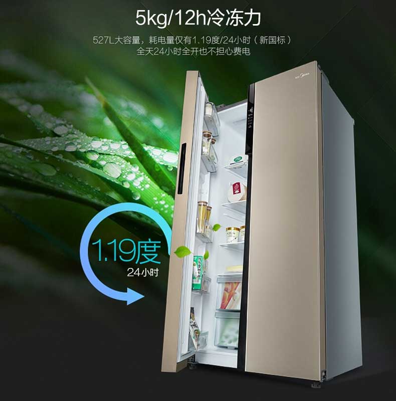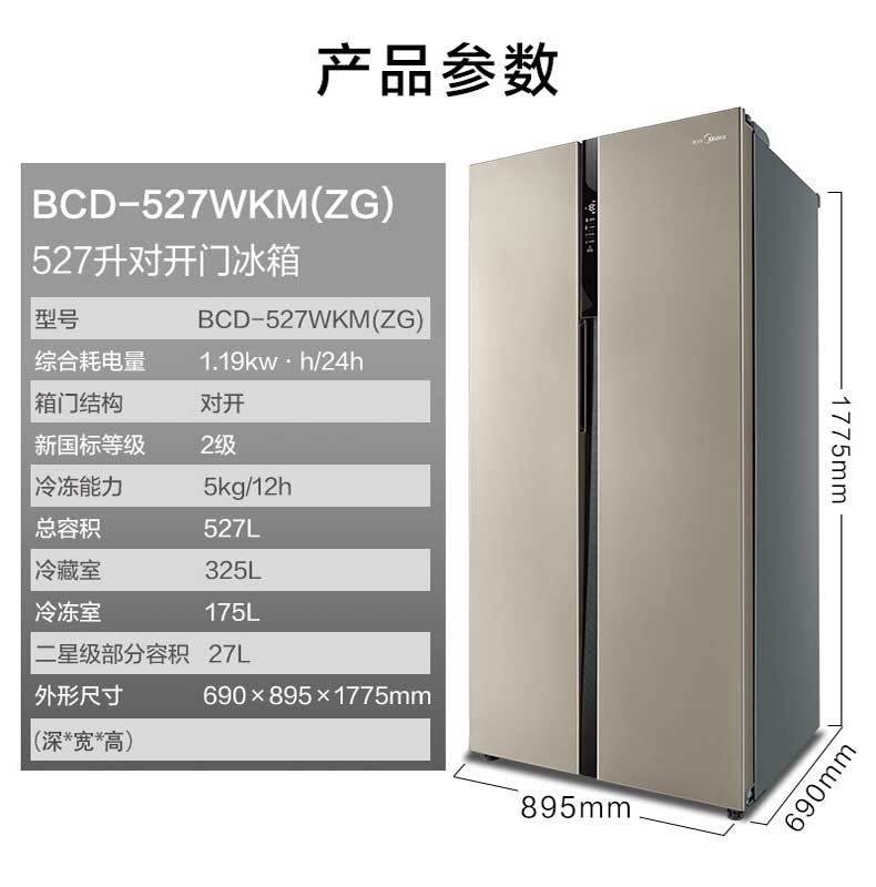 美的(Midea) 对开门双开门风冷527升家用电冰箱BCD-527WKM(ZG)芙蓉金