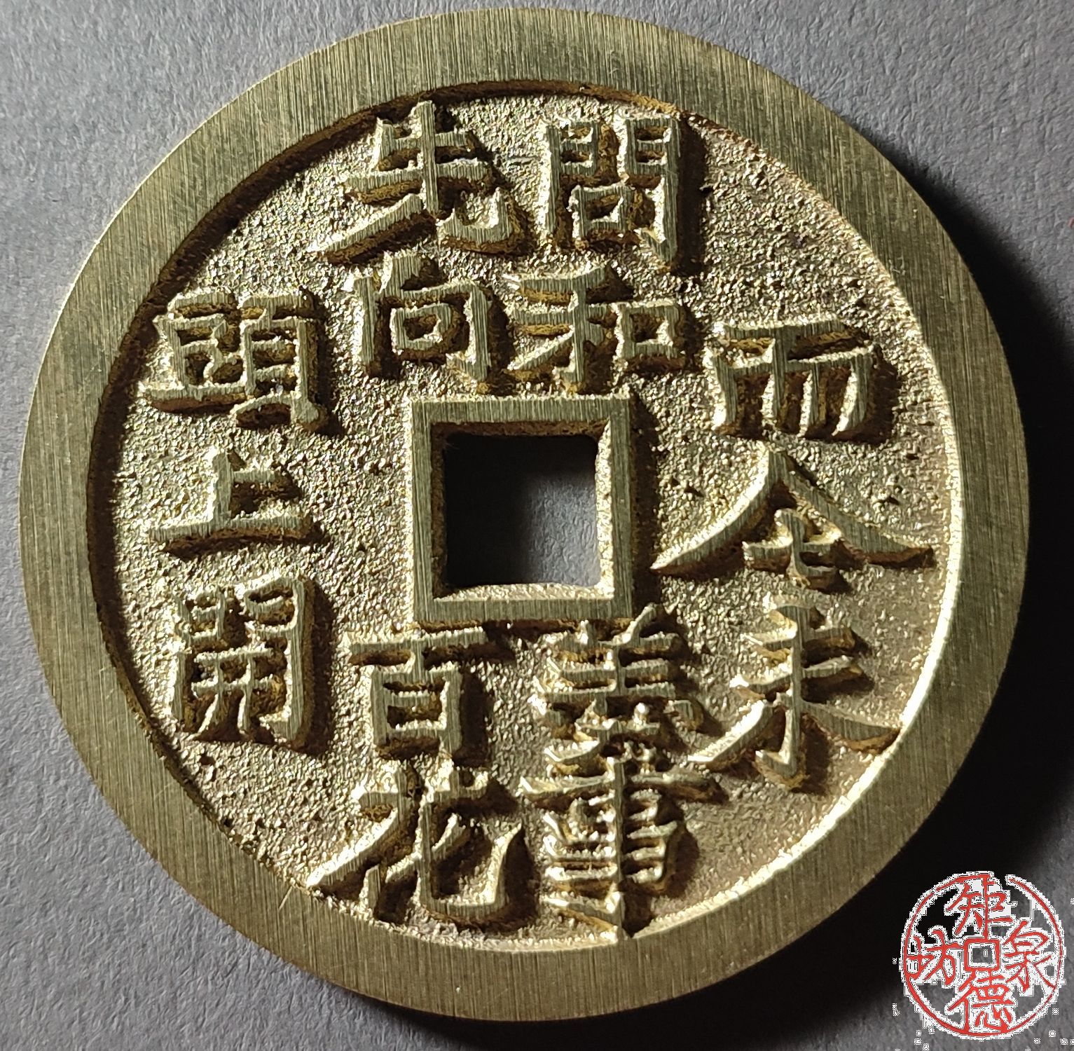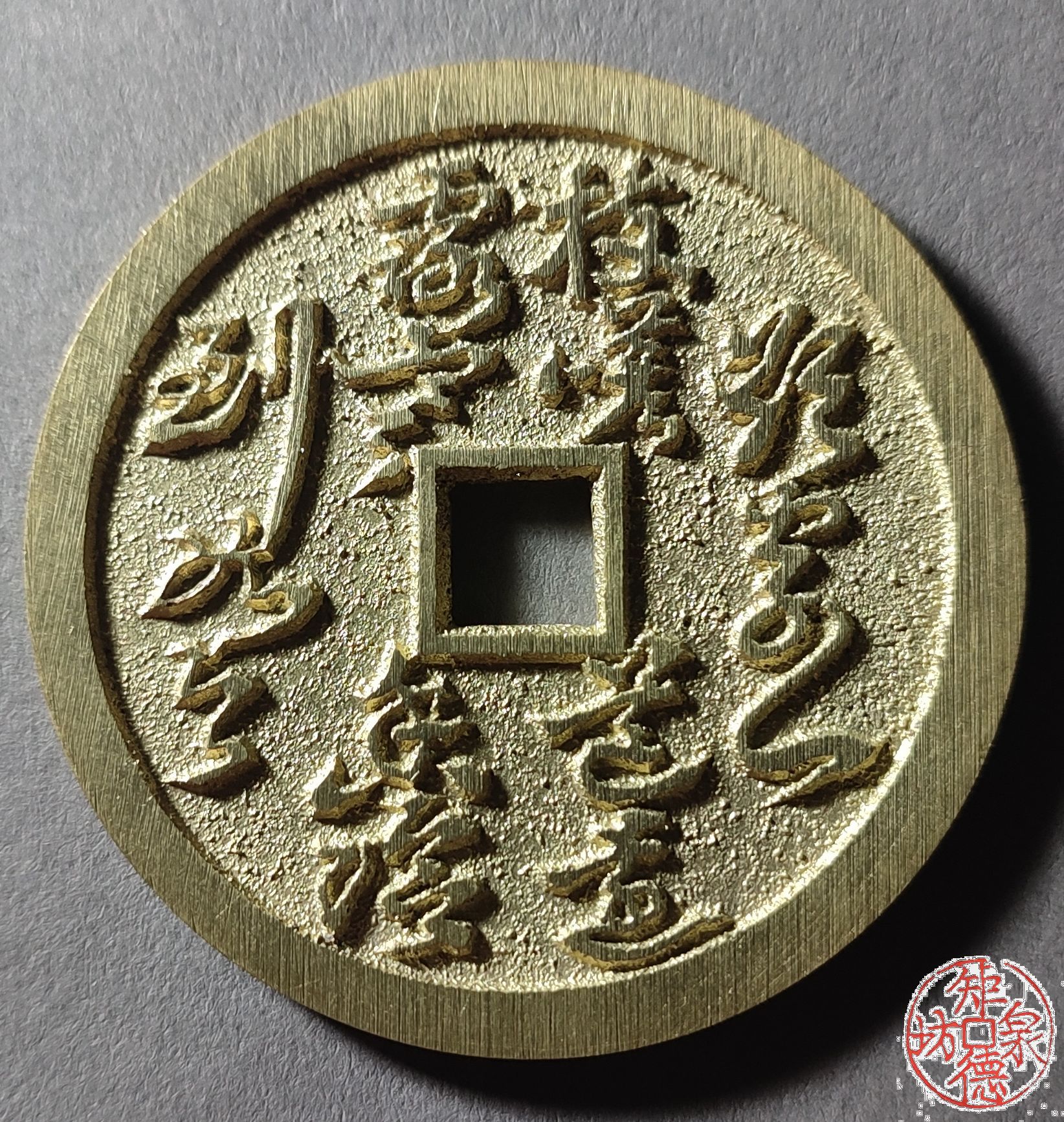 为了尽量还原古代钱币的文字神韵与时代铸造特征,每一枚都进行手工修刀、打磨。会有打磨痕迹、刻刀痕迹,铸造气孔或者微小沙眼,这正是手工与机器制作的区别,并非瑕疵。