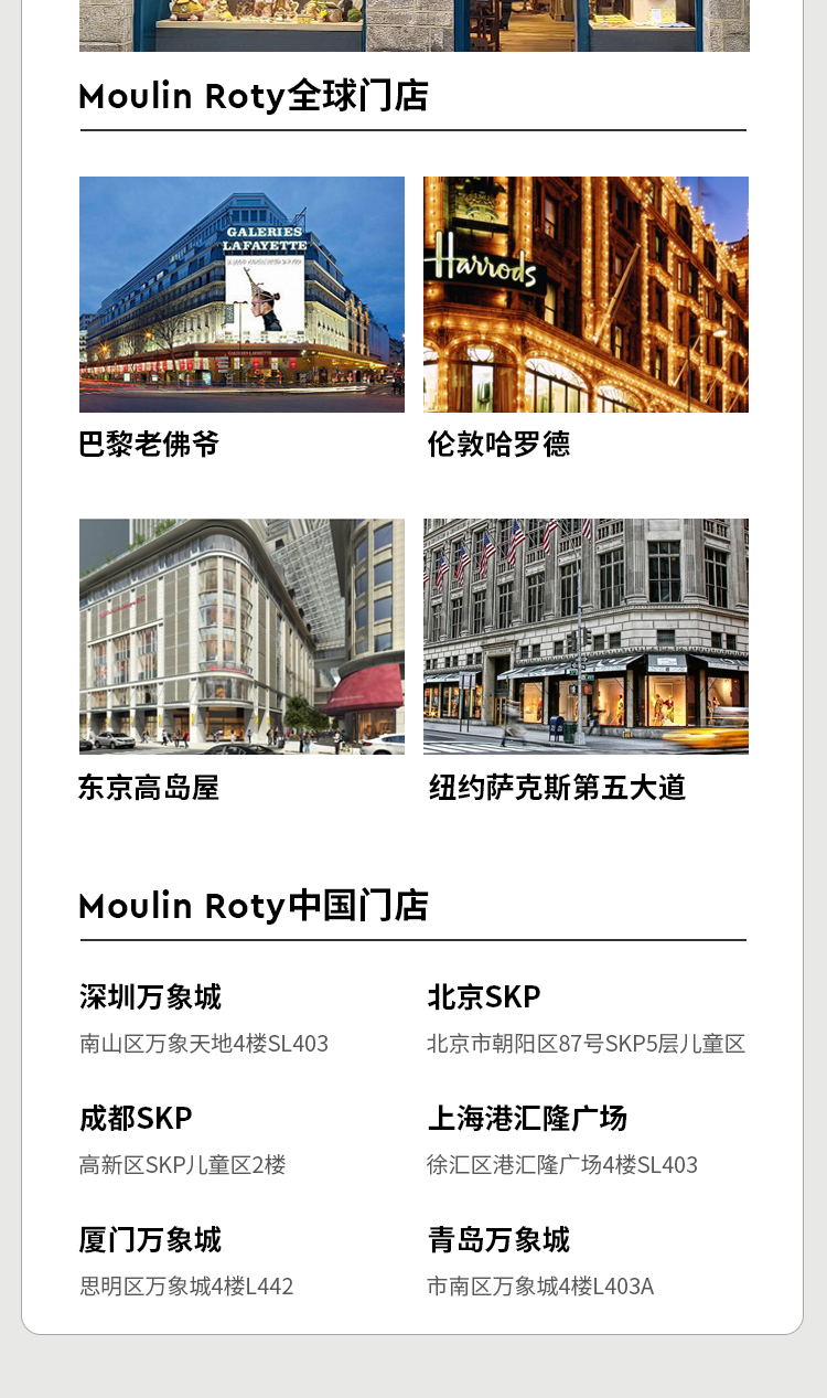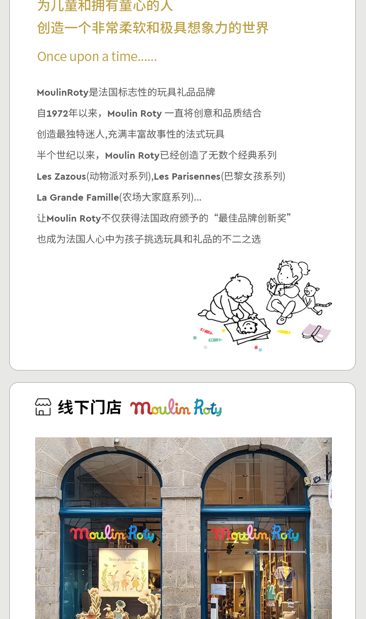 - 我们是欧洲一线母婴用品和儿童玩具零售商,我们坚持「玩即生活」的理念,与国际知名品牌深入合作,打造Bonplay、Moulin Roty、zaza baby、HABA等多品牌零售体验店!