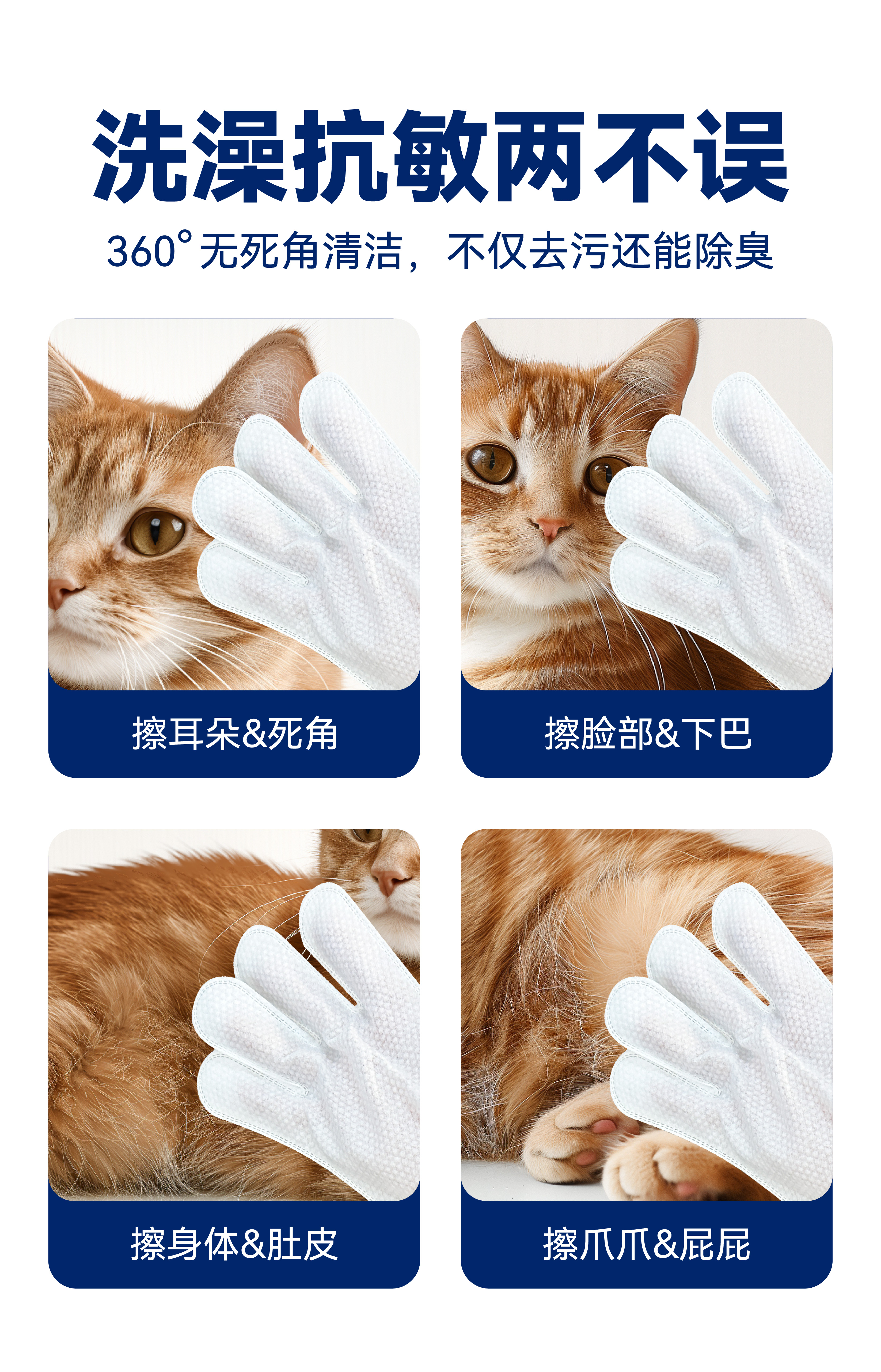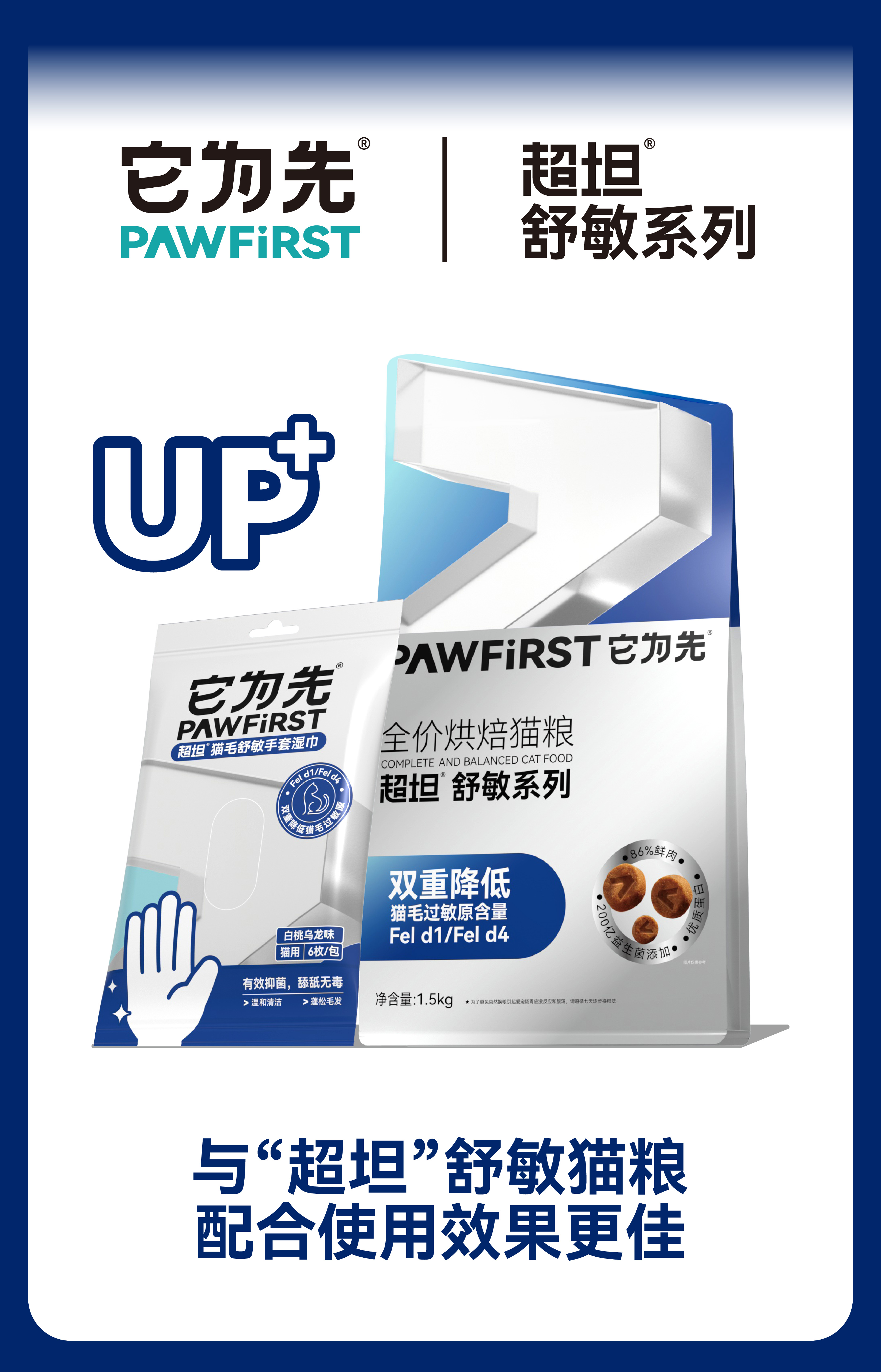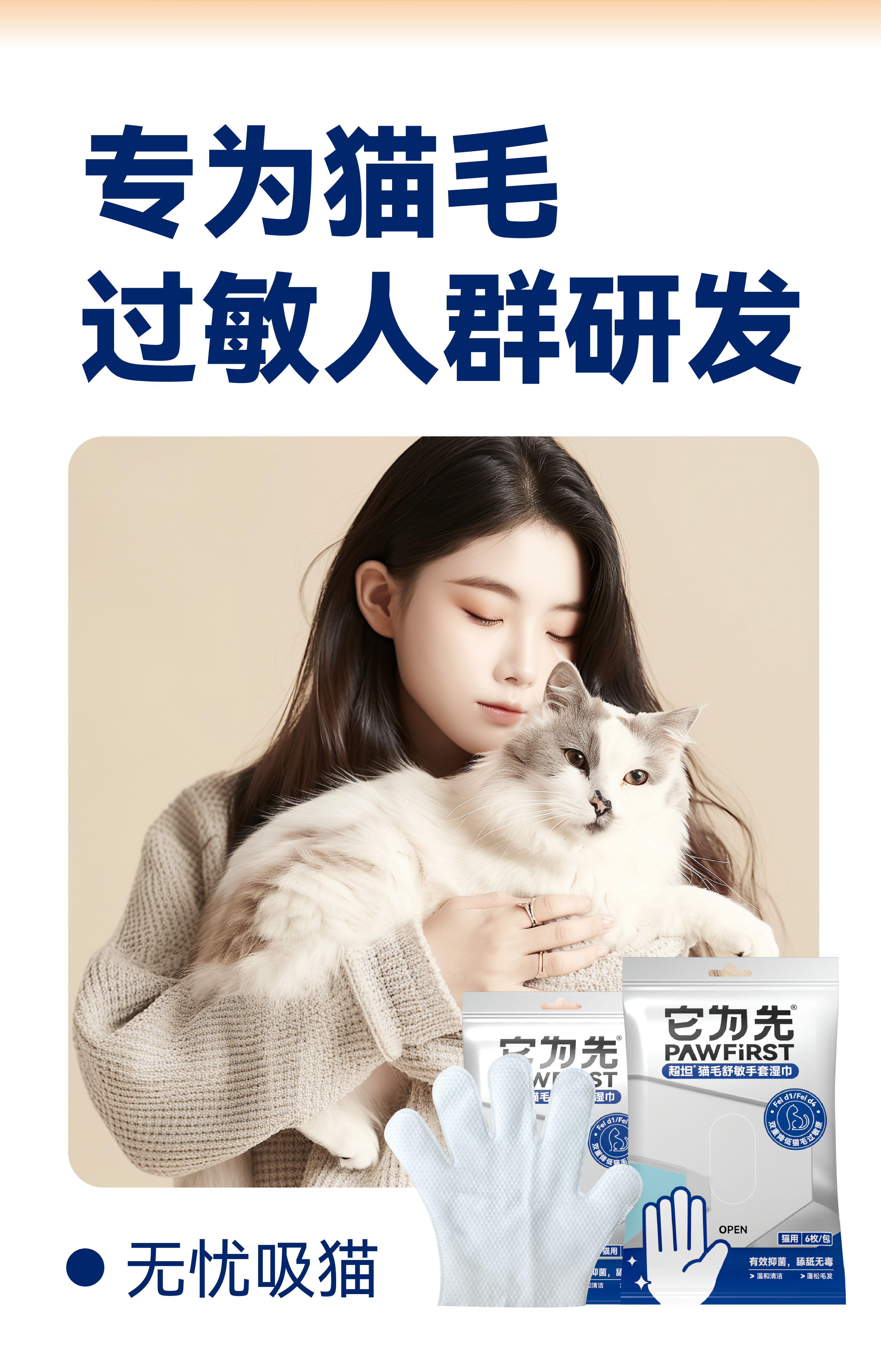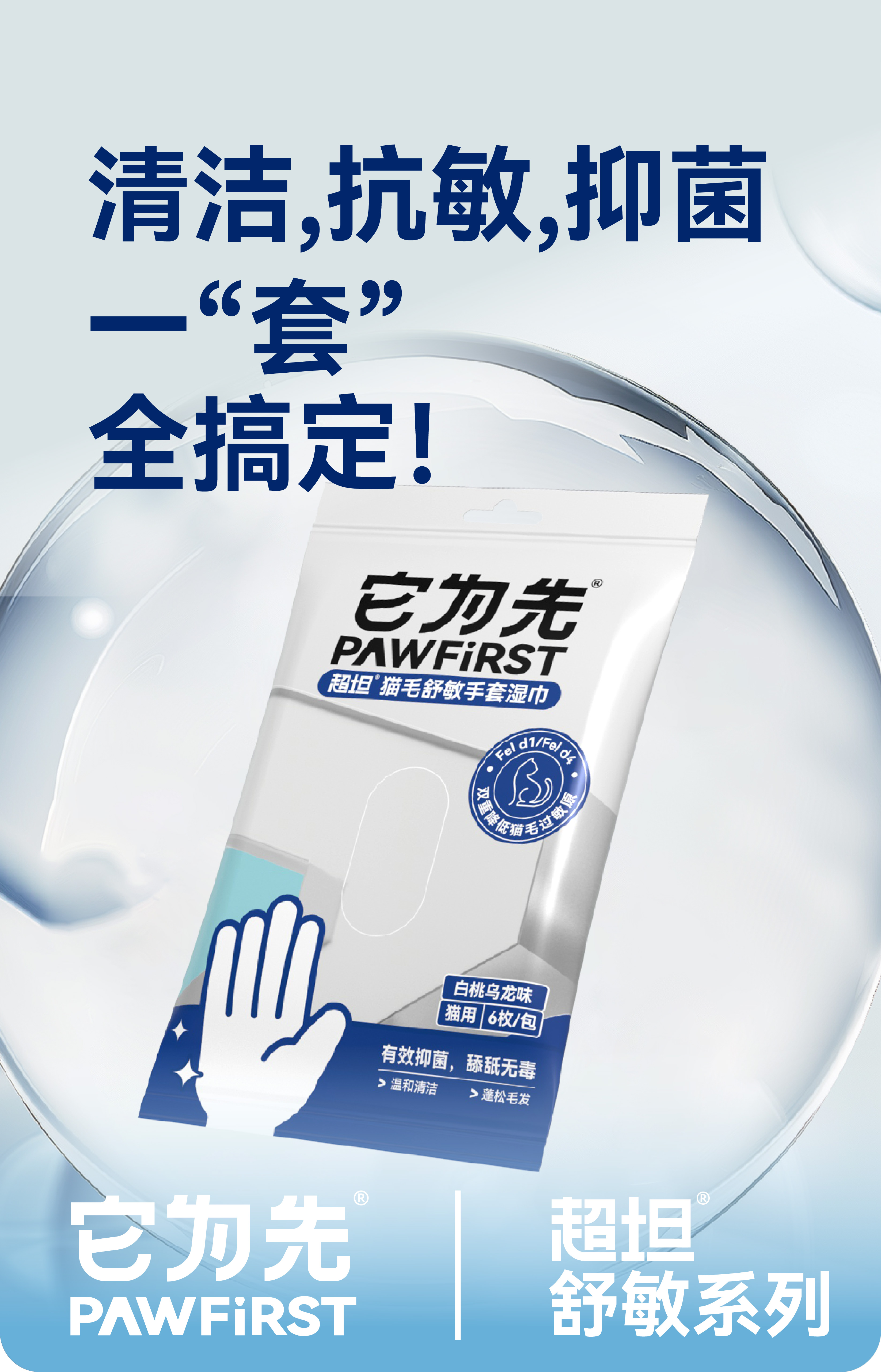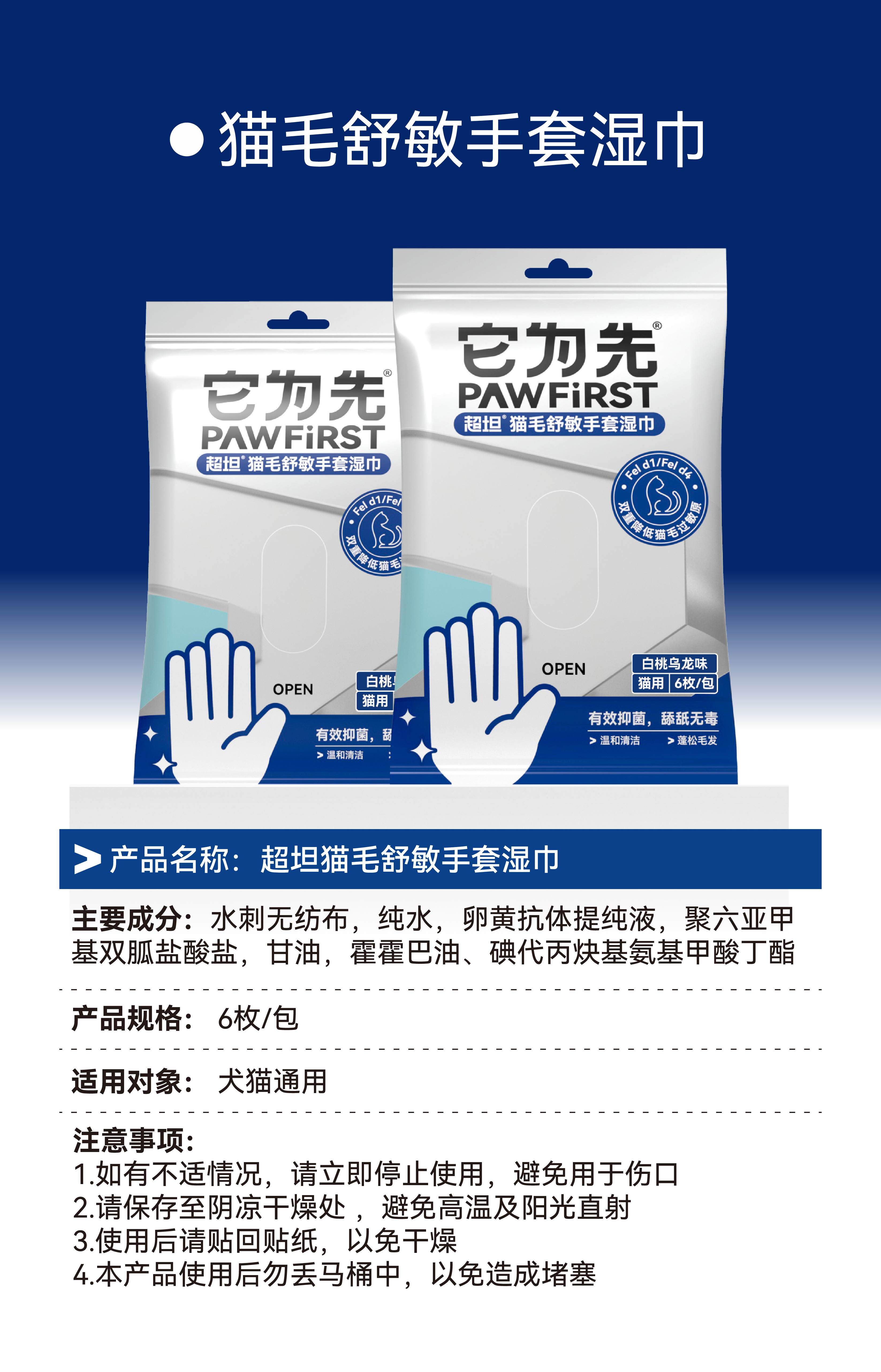 它为先超坦猫毛舒敏手套湿巾 猫用6片装 白桃乌龙味 有效缓解人对猫毛过敏 有效抑菌 温和安全