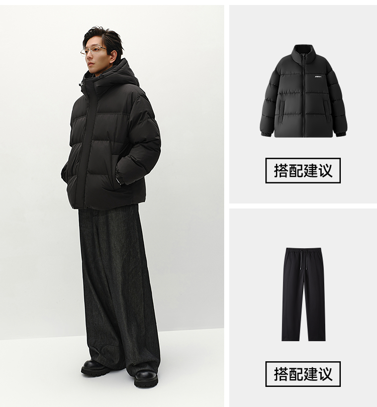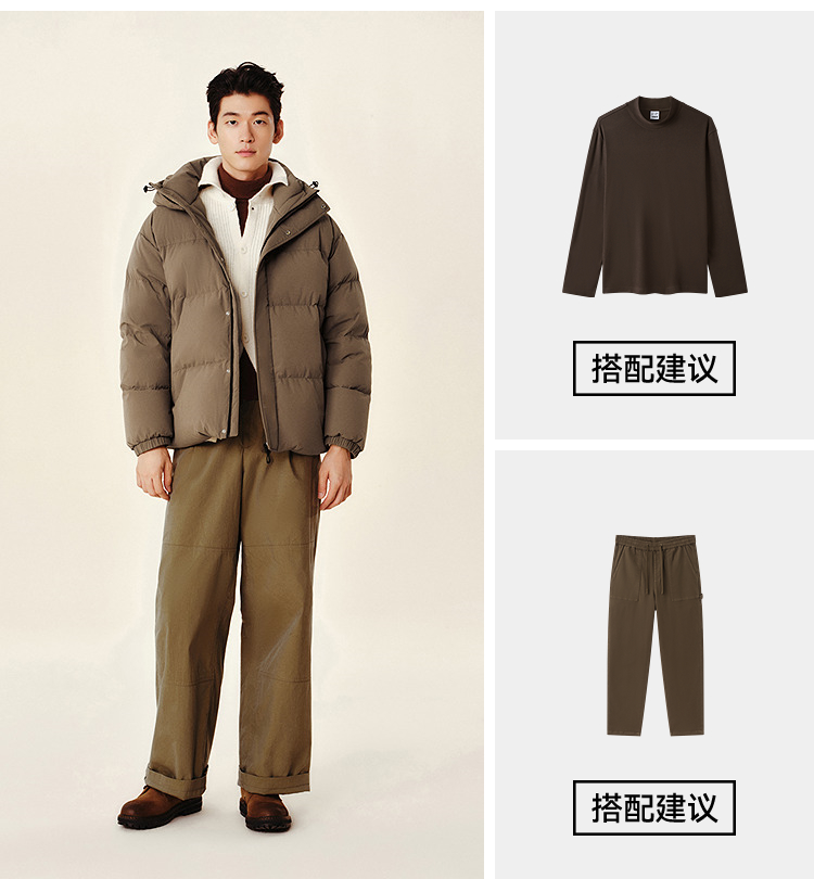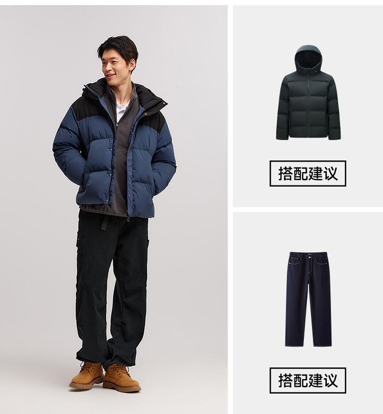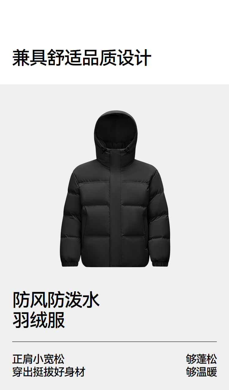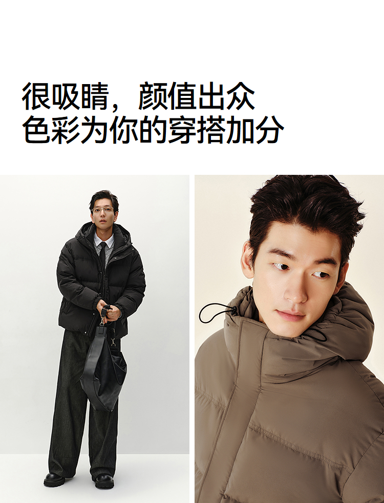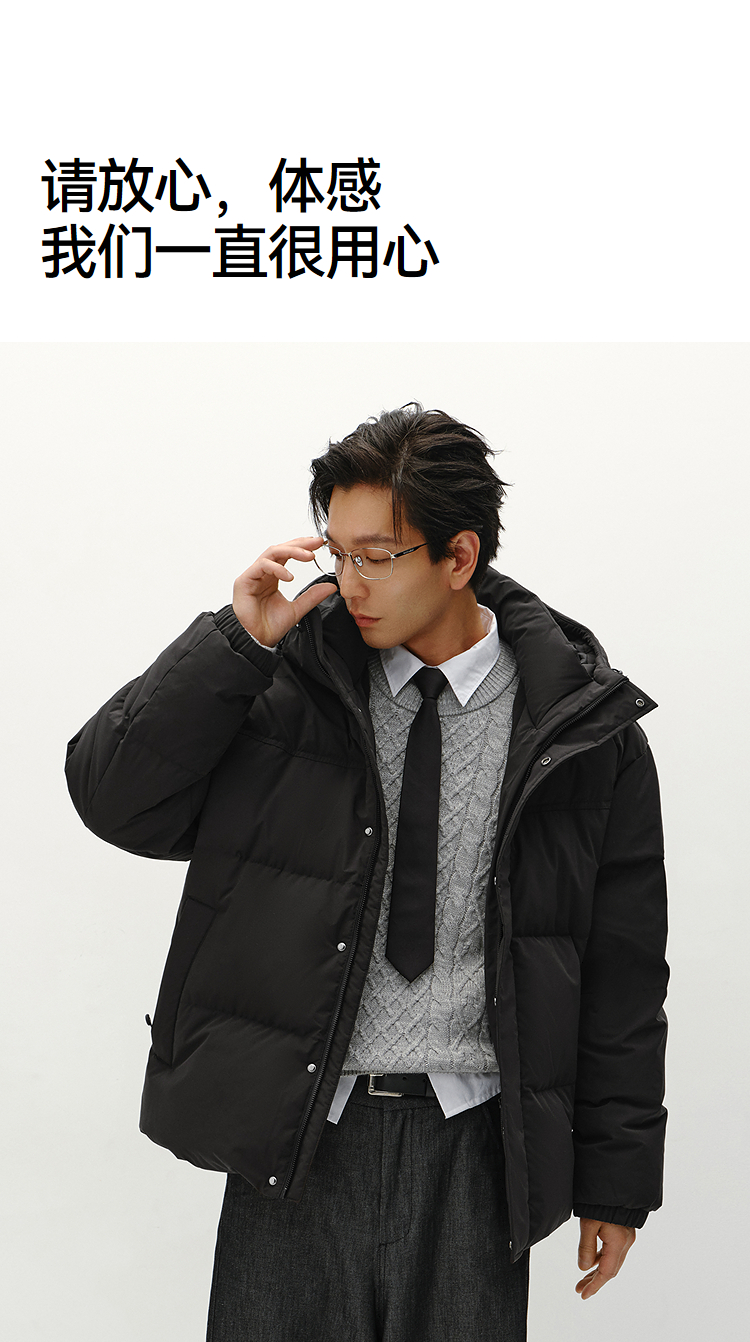 轻松羽绒|森马羽绒服男防泼水防风正肩外套情侣冬装连帽上衣青年