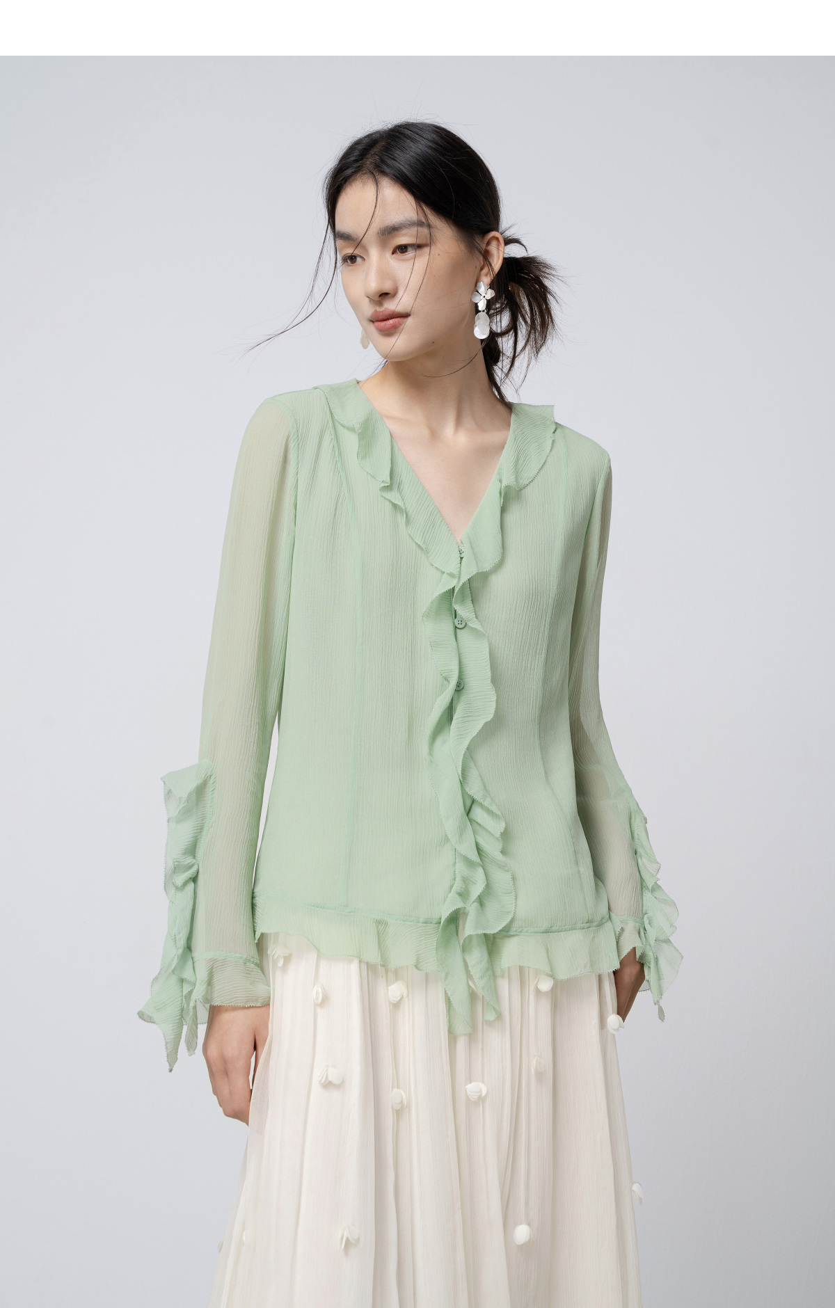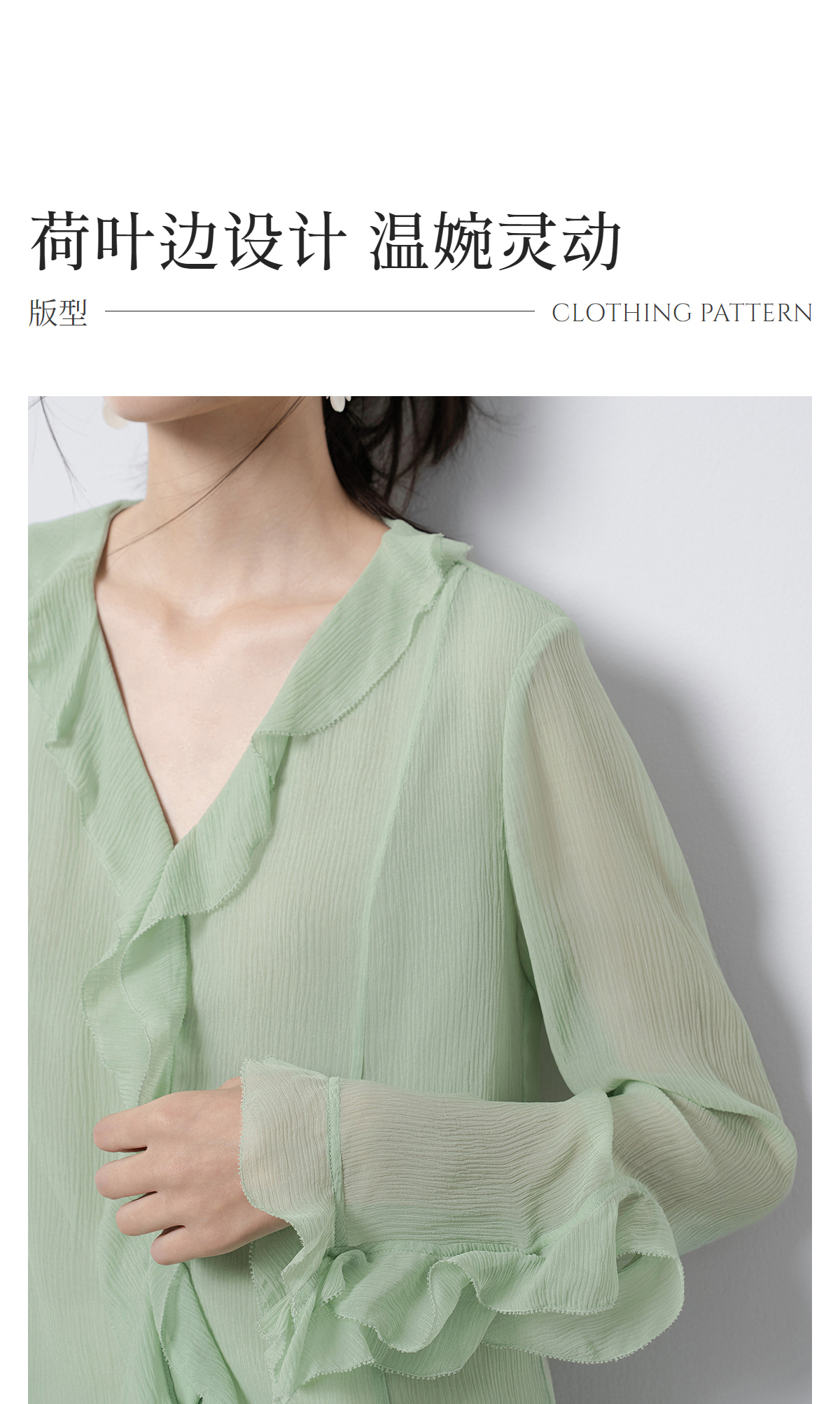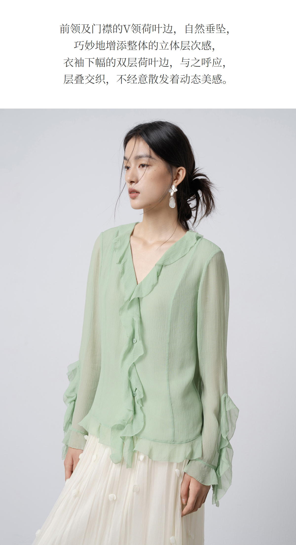 【林栖设计小店】风荷曳影|桑蚕丝衬衣荷叶边温柔仙气2026早春新款上衣女T1961310