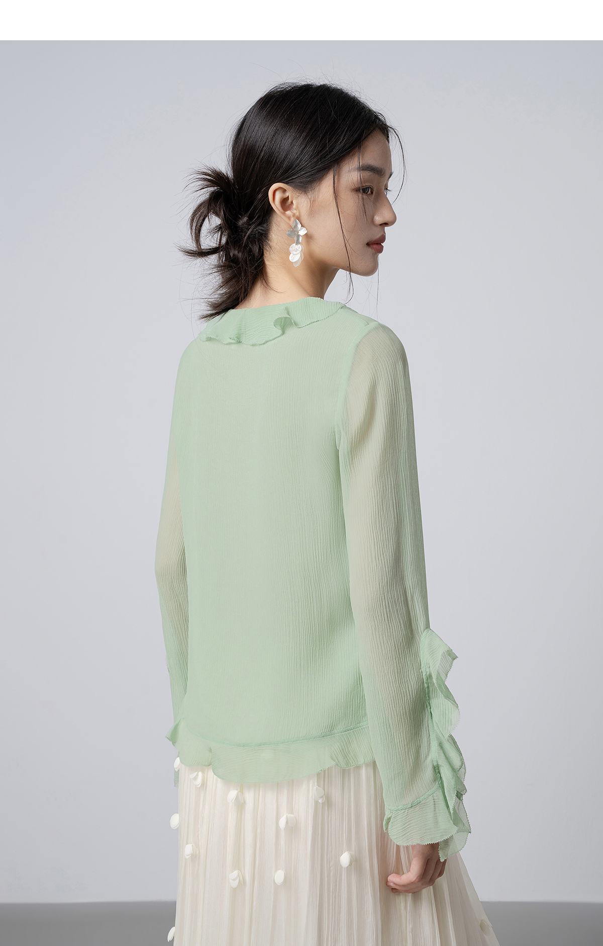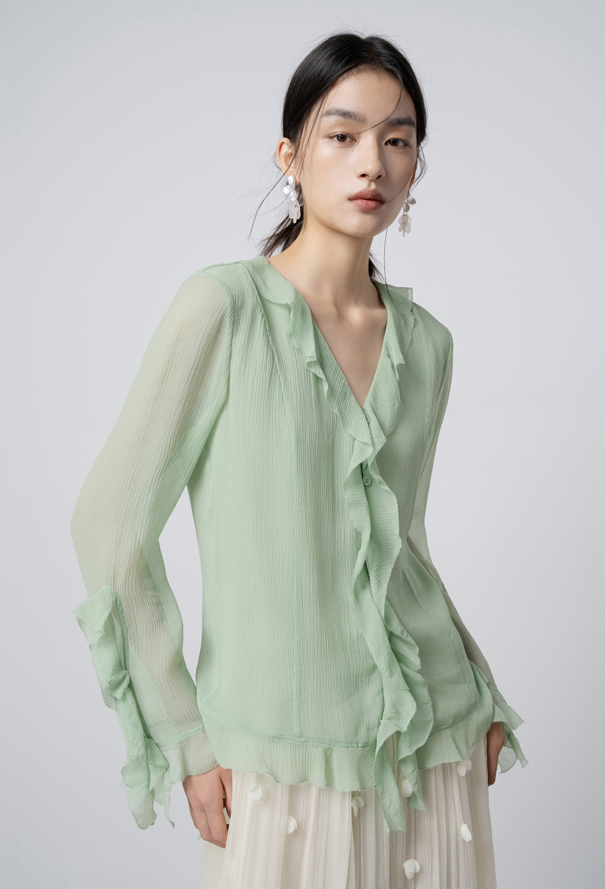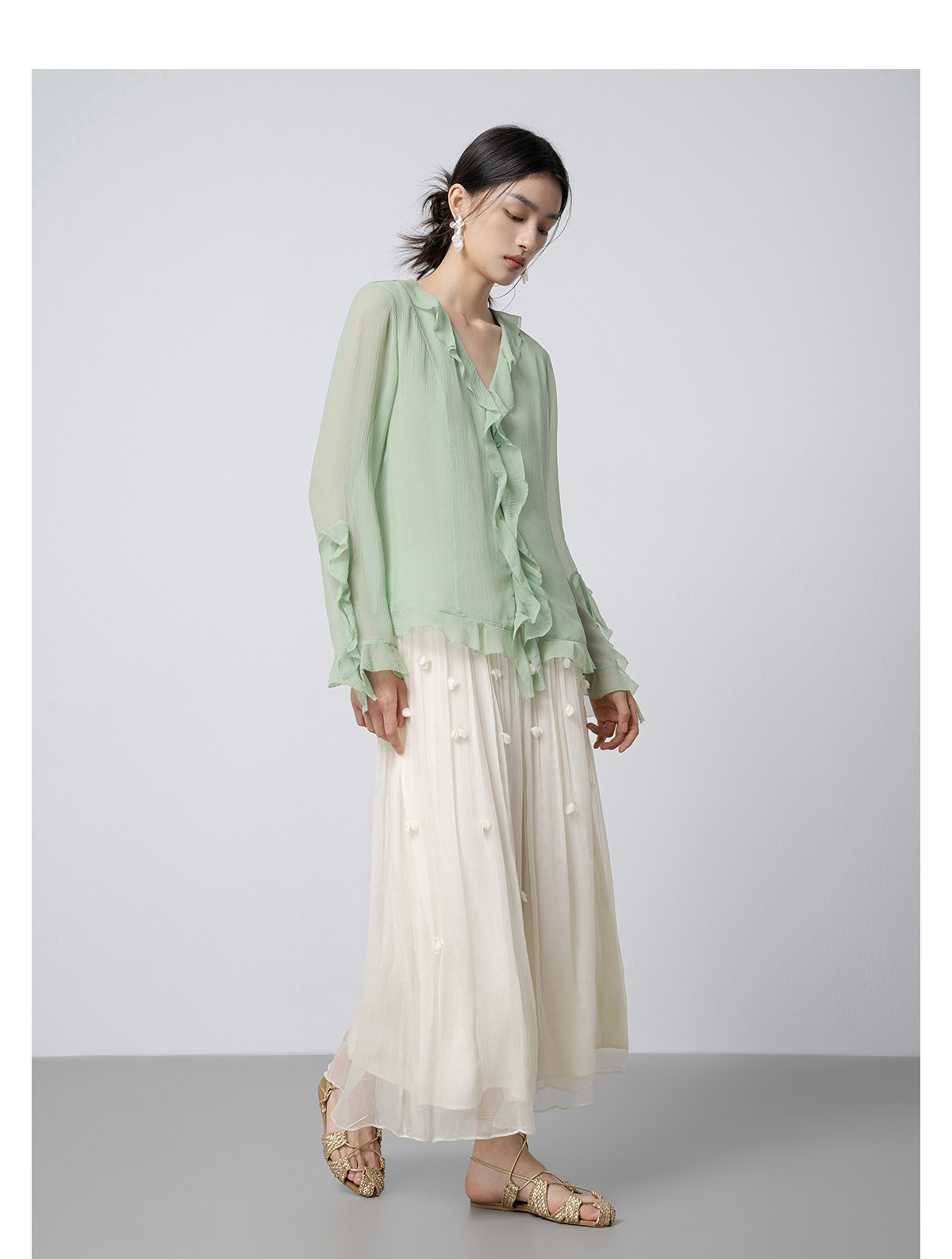【林栖设计小店】风荷曳影|桑蚕丝衬衣荷叶边温柔仙气2026早春新款上衣女T1961310
